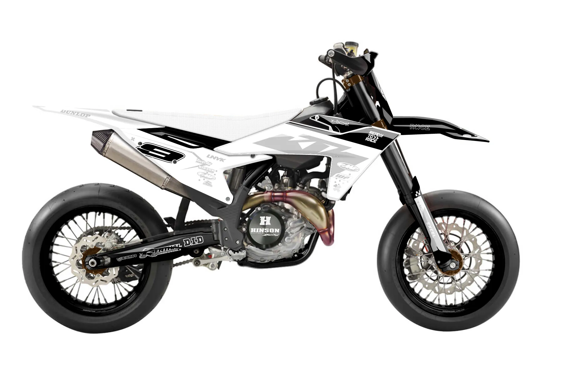 «Charge» — готовый комплект графики серии Staple для KTM Supermoto KTM SMR 450 2025. В комплекте: графика на бак и боковые облицовки, крылья (переднее и заднее), передний щиток, номерные таблички, защита вилки. Материал: ПВХ-винил 80 мкр с холодной ламинацией 300 мкр, общая толщина 380 мкр; покрытие глянцевое или матовое на выбор. Устойчив к UV-излучению, воде, бензину и мойке высокого давления. Клей акриловый на сольвентной основе — постоянный, для гибких пластиков. На простых поверхностях монтируется без нагрева; для сложных изгибов рекомендуем фен. Этот пресет можно заказать как есть или взять за основу в конструкторе: поменять цвета, добавить стартовый номер и свой бренд. Производство — 3–5 рабочих дней, доставка по России СДЭКом или Почтой, по СНГ — курьерскими службами.