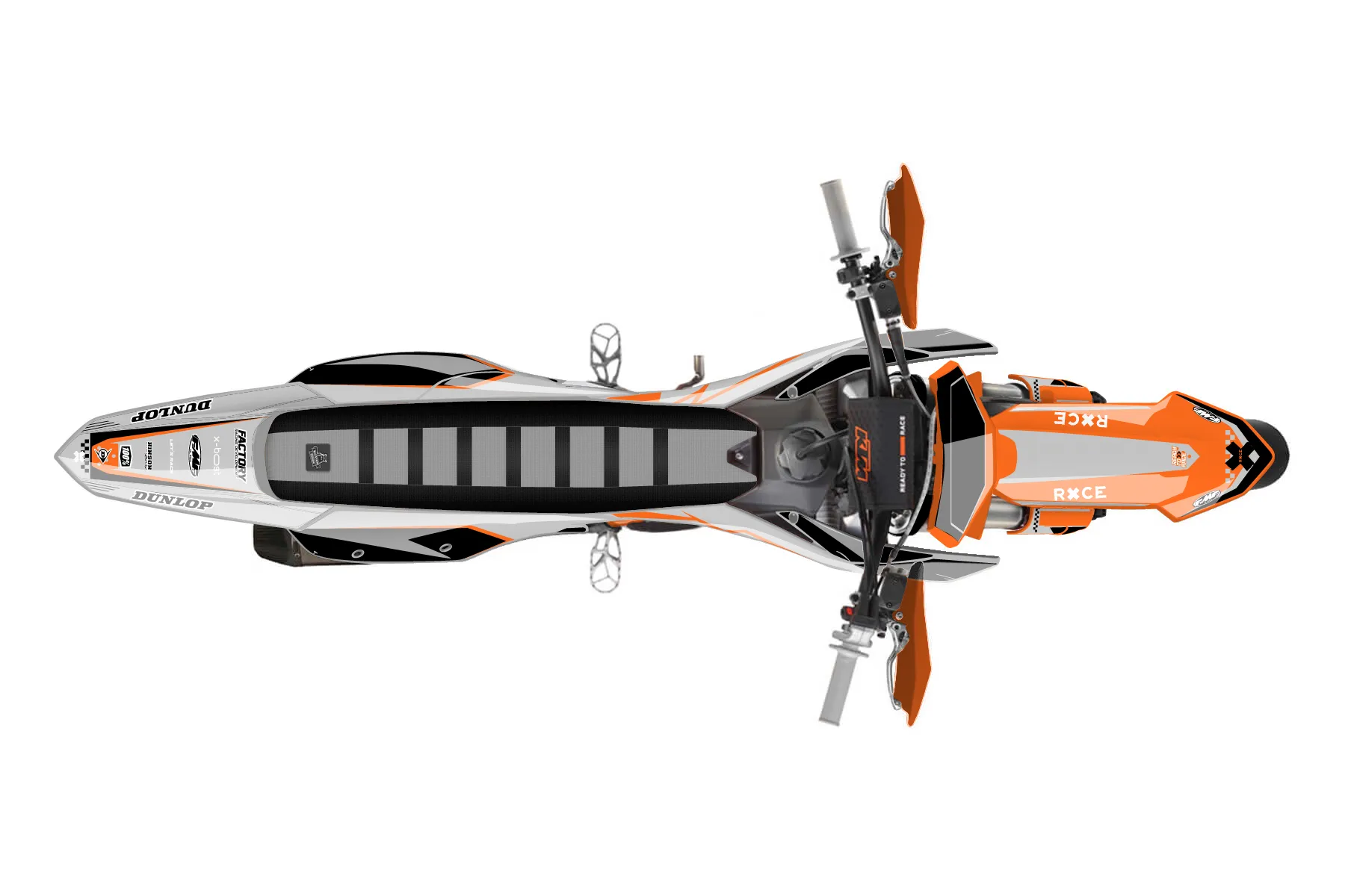 «Class» — готовый комплект графики серии Staple для KTM Supermoto KTM SMR 450 2025. В комплекте: графика на бак и боковые облицовки, крылья (переднее и заднее), передний щиток, номерные таблички, защита вилки. Материал: ПВХ-винил 80 мкр с холодной ламинацией 300 мкр, общая толщина 380 мкр; покрытие глянцевое или матовое на выбор. Устойчив к UV-излучению, воде, бензину и мойке высокого давления. Клей акриловый на сольвентной основе — постоянный, для гибких пластиков. На простых поверхностях монтируется без нагрева; для сложных изгибов рекомендуем фен. Этот пресет можно заказать как есть или взять за основу в конструкторе: поменять цвета, добавить стартовый номер и свой бренд. Производство — 3–5 рабочих дней, доставка по России СДЭКом или Почтой, по СНГ — курьерскими службами.