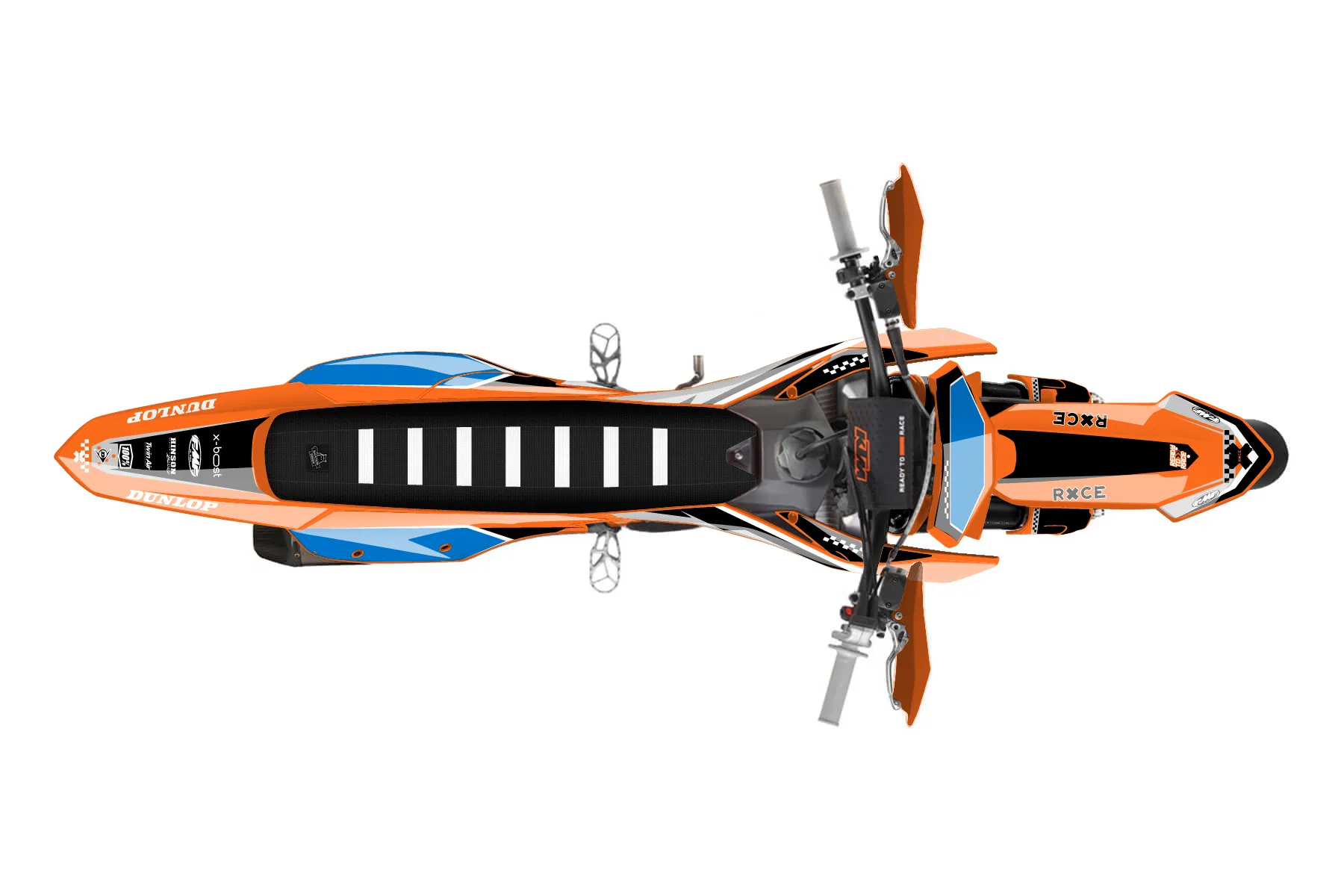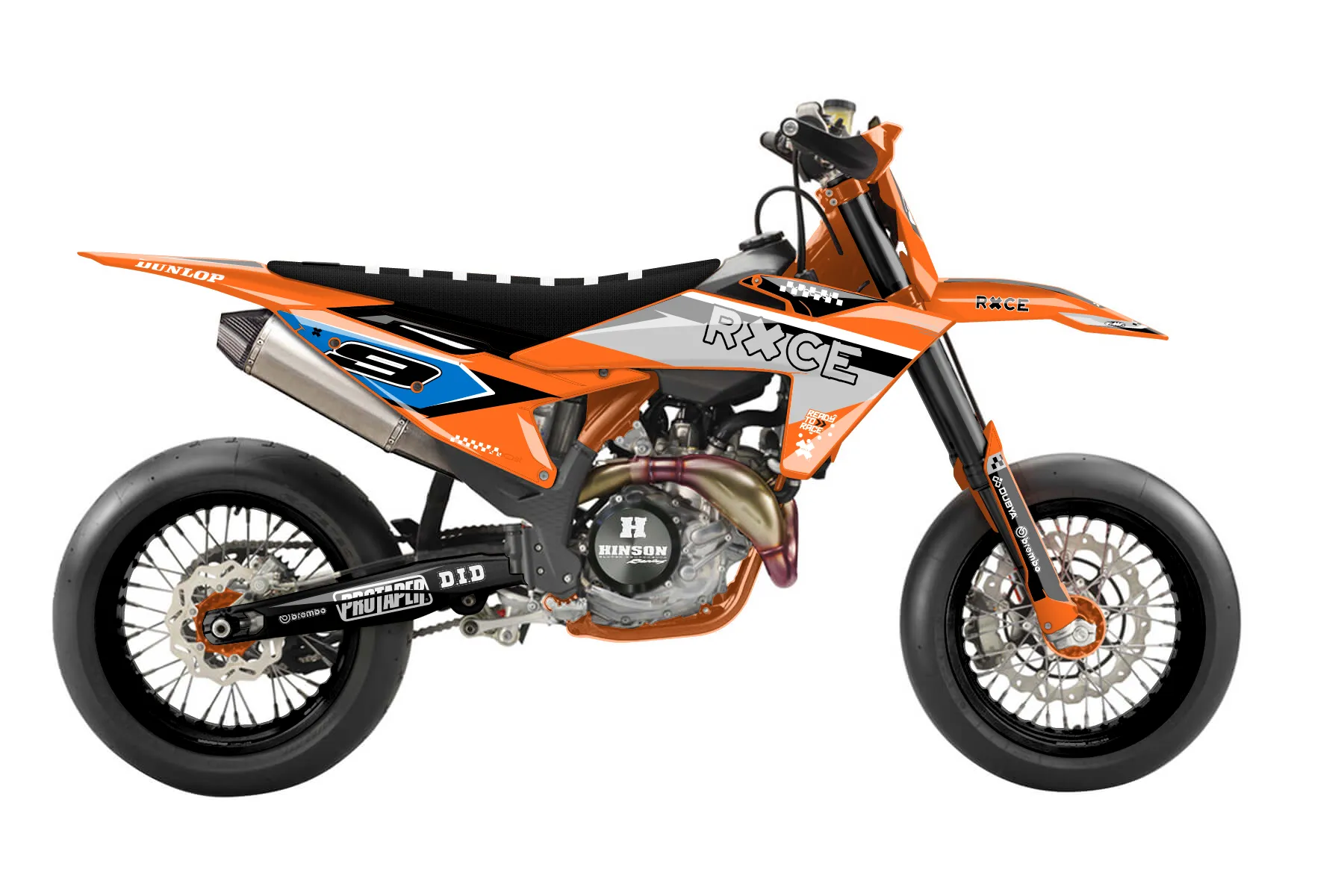 «Clean» — готовый комплект графики серии Staple для KTM Supermoto KTM SMR 450 2025. В комплекте: графика на бак и боковые облицовки, крылья (переднее и заднее), передний щиток, номерные таблички, защита вилки. Материал: ПВХ-винил 80 мкр с холодной ламинацией 300 мкр, общая толщина 380 мкр; покрытие глянцевое или матовое на выбор. Устойчив к UV-излучению, воде, бензину и мойке высокого давления. Клей акриловый на сольвентной основе — постоянный, для гибких пластиков. На простых поверхностях монтируется без нагрева; для сложных изгибов рекомендуем фен. Этот пресет можно заказать как есть или взять за основу в конструкторе: поменять цвета, добавить стартовый номер и свой бренд. Производство — 3–5 рабочих дней, доставка по России СДЭКом или Почтой, по СНГ — курьерскими службами.