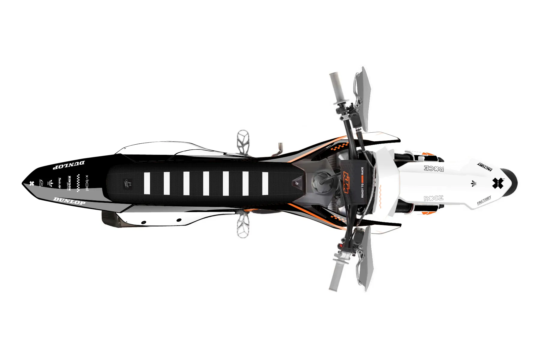 «Covering» — готовый комплект графики серии Staple для KTM Supermoto KTM SMR 450 2025. В комплекте: графика на бак и боковые облицовки, крылья (переднее и заднее), передний щиток, номерные таблички, защита вилки. Материал: ПВХ-винил 80 мкр с холодной ламинацией 300 мкр, общая толщина 380 мкр; покрытие глянцевое или матовое на выбор. Устойчив к UV-излучению, воде, бензину и мойке высокого давления. Клей акриловый на сольвентной основе — постоянный, для гибких пластиков. На простых поверхностях монтируется без нагрева; для сложных изгибов рекомендуем фен. Этот пресет можно заказать как есть или взять за основу в конструкторе: поменять цвета, добавить стартовый номер и свой бренд. Производство — 3–5 рабочих дней, доставка по России СДЭКом или Почтой, по СНГ — курьерскими службами.