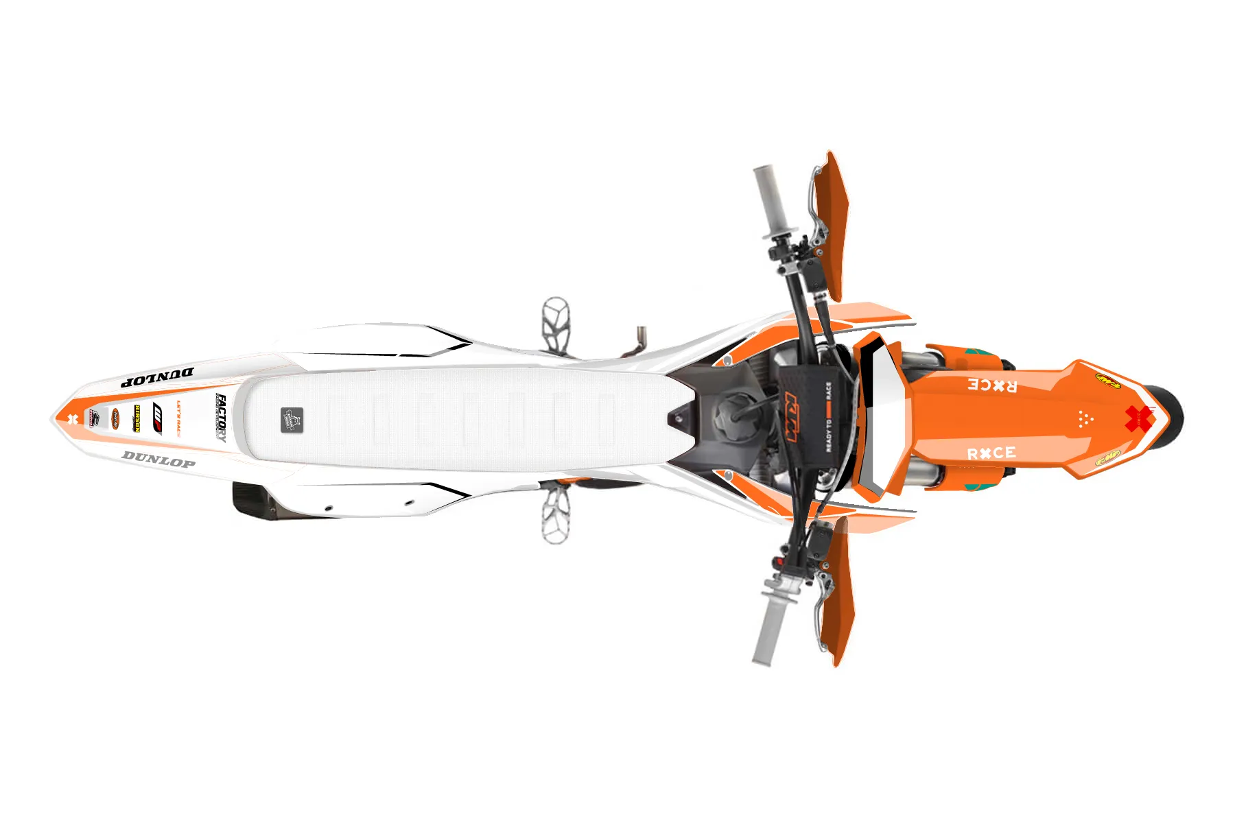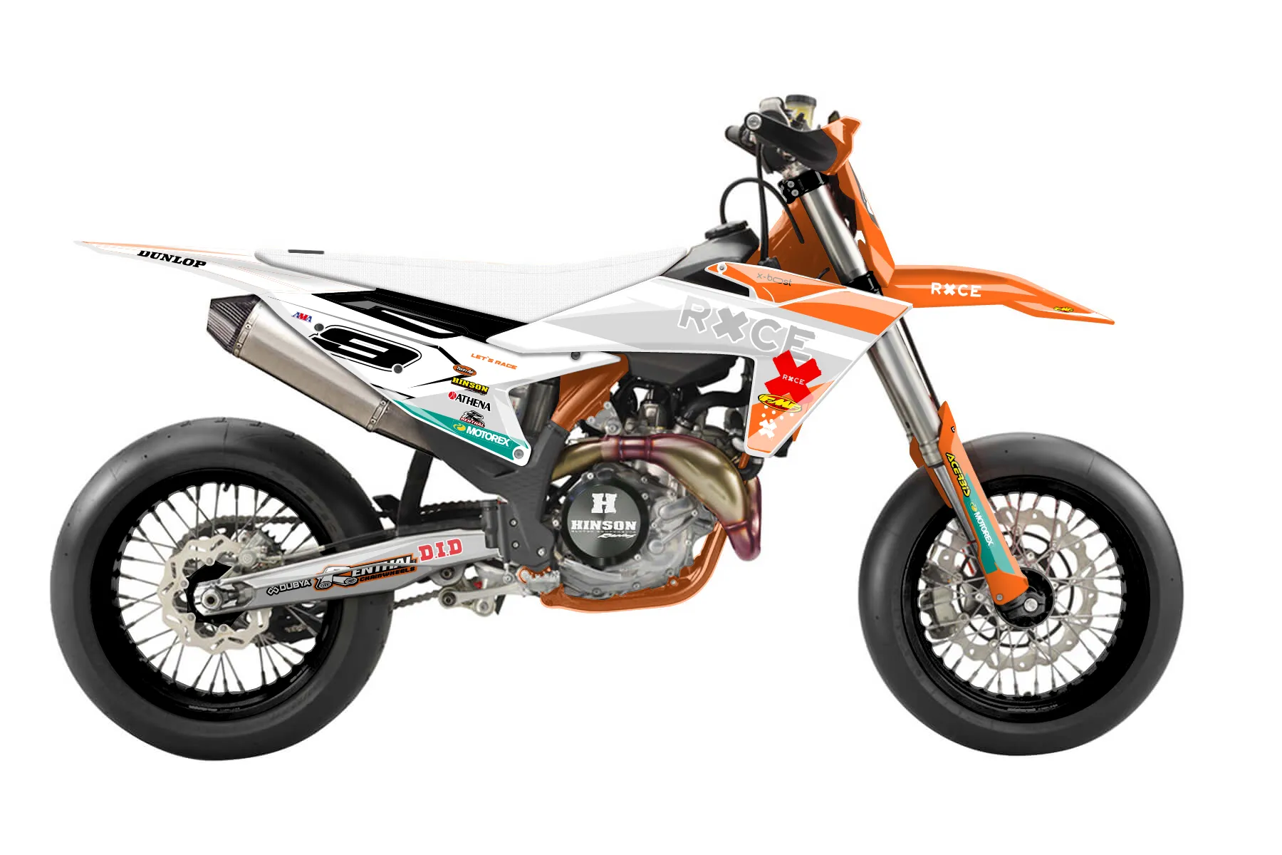 «Fist» — готовый комплект графики серии Staple для KTM Supermoto KTM SMR 450 2025. В комплекте: графика на бак и боковые облицовки, крылья (переднее и заднее), передний щиток, номерные таблички, защита вилки. Материал: ПВХ-винил 80 мкр с холодной ламинацией 300 мкр, общая толщина 380 мкр; покрытие глянцевое или матовое на выбор. Устойчив к UV-излучению, воде, бензину и мойке высокого давления. Клей акриловый на сольвентной основе — постоянный, для гибких пластиков. На простых поверхностях монтируется без нагрева; для сложных изгибов рекомендуем фен. Этот пресет можно заказать как есть или взять за основу в конструкторе: поменять цвета, добавить стартовый номер и свой бренд. Производство — 3–5 рабочих дней, доставка по России СДЭКом или Почтой, по СНГ — курьерскими службами.
