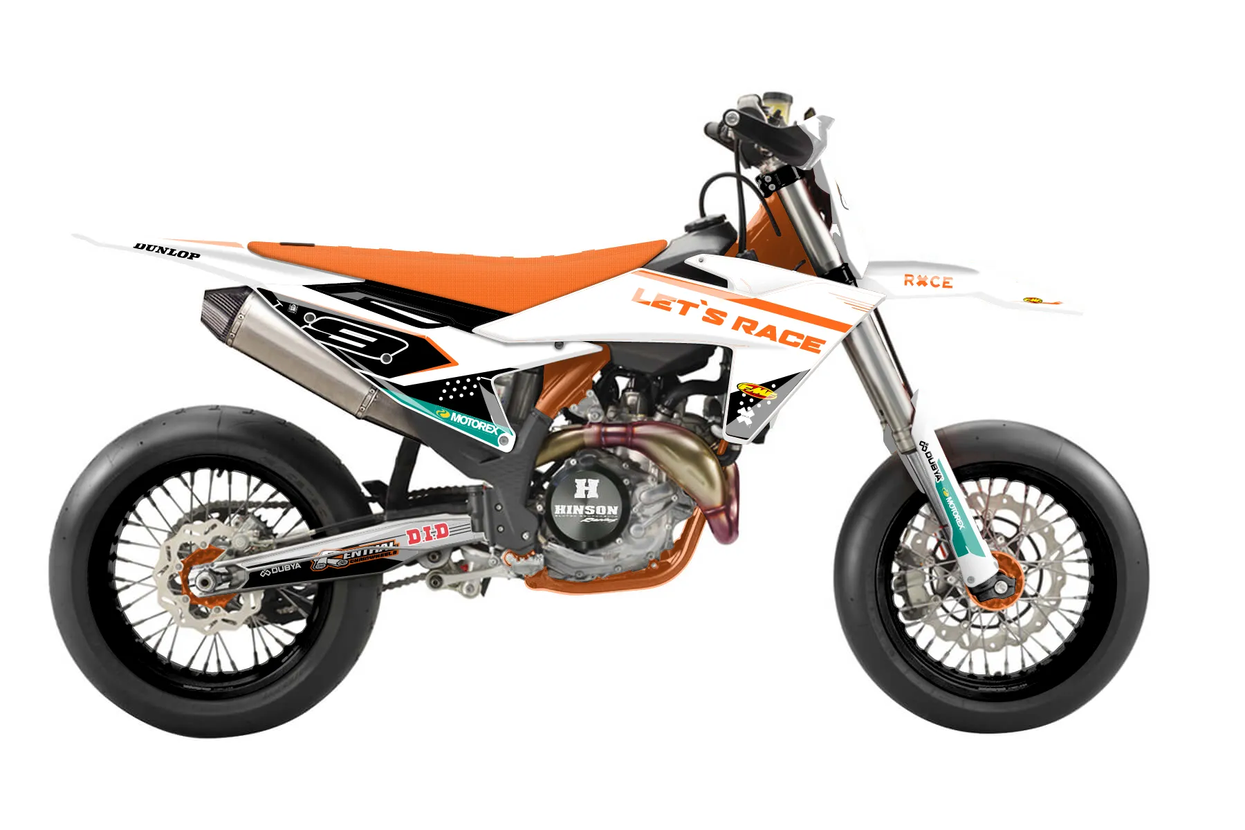 «Image» — готовый комплект графики серии Staple для KTM Supermoto KTM SMR 450 2025. В комплекте: графика на бак и боковые облицовки, крылья (переднее и заднее), передний щиток, номерные таблички, защита вилки. Материал: ПВХ-винил 80 мкр с холодной ламинацией 300 мкр, общая толщина 380 мкр; покрытие глянцевое или матовое на выбор. Устойчив к UV-излучению, воде, бензину и мойке высокого давления. Клей акриловый на сольвентной основе — постоянный, для гибких пластиков. На простых поверхностях монтируется без нагрева; для сложных изгибов рекомендуем фен. Этот пресет можно заказать как есть или взять за основу в конструкторе: поменять цвета, добавить стартовый номер и свой бренд. Производство — 3–5 рабочих дней, доставка по России СДЭКом или Почтой, по СНГ — курьерскими службами.