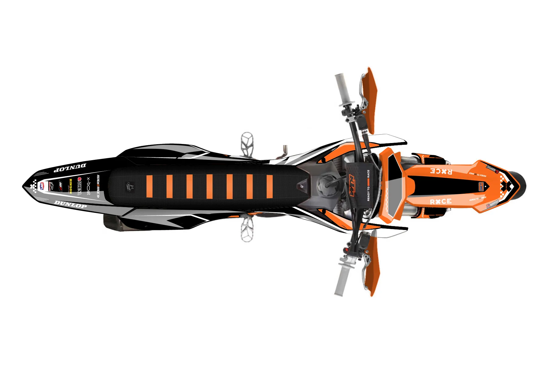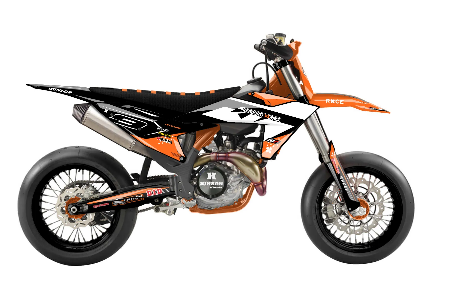 «Leak» — готовый комплект графики серии Staple для KTM Supermoto KTM SMR 450 2025. В комплекте: графика на бак и боковые облицовки, крылья (переднее и заднее), передний щиток, номерные таблички, защита вилки. Материал: ПВХ-винил 80 мкр с холодной ламинацией 300 мкр, общая толщина 380 мкр; покрытие глянцевое или матовое на выбор. Устойчив к UV-излучению, воде, бензину и мойке высокого давления. Клей акриловый на сольвентной основе — постоянный, для гибких пластиков. На простых поверхностях монтируется без нагрева; для сложных изгибов рекомендуем фен. Этот пресет можно заказать как есть или взять за основу в конструкторе: поменять цвета, добавить стартовый номер и свой бренд. Производство — 3–5 рабочих дней, доставка по России СДЭКом или Почтой, по СНГ — курьерскими службами.