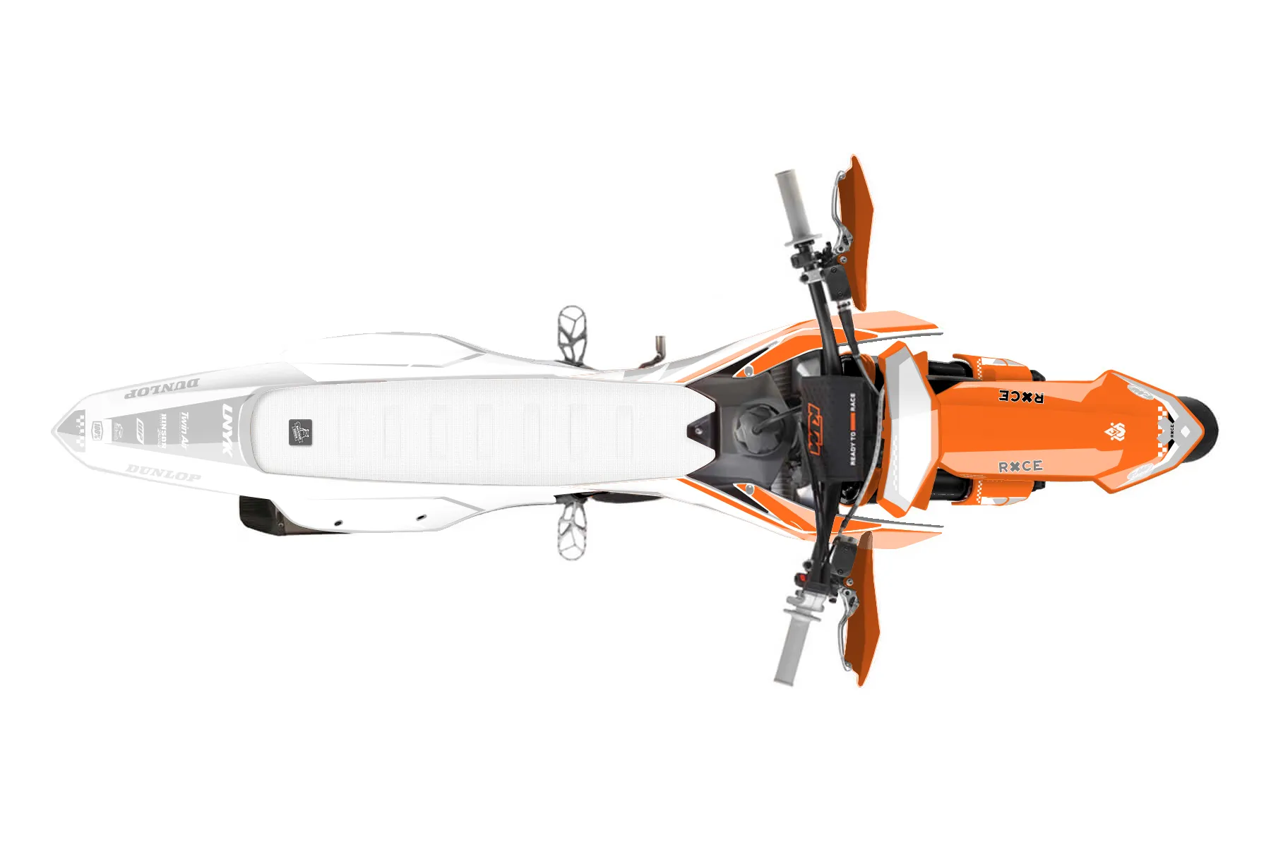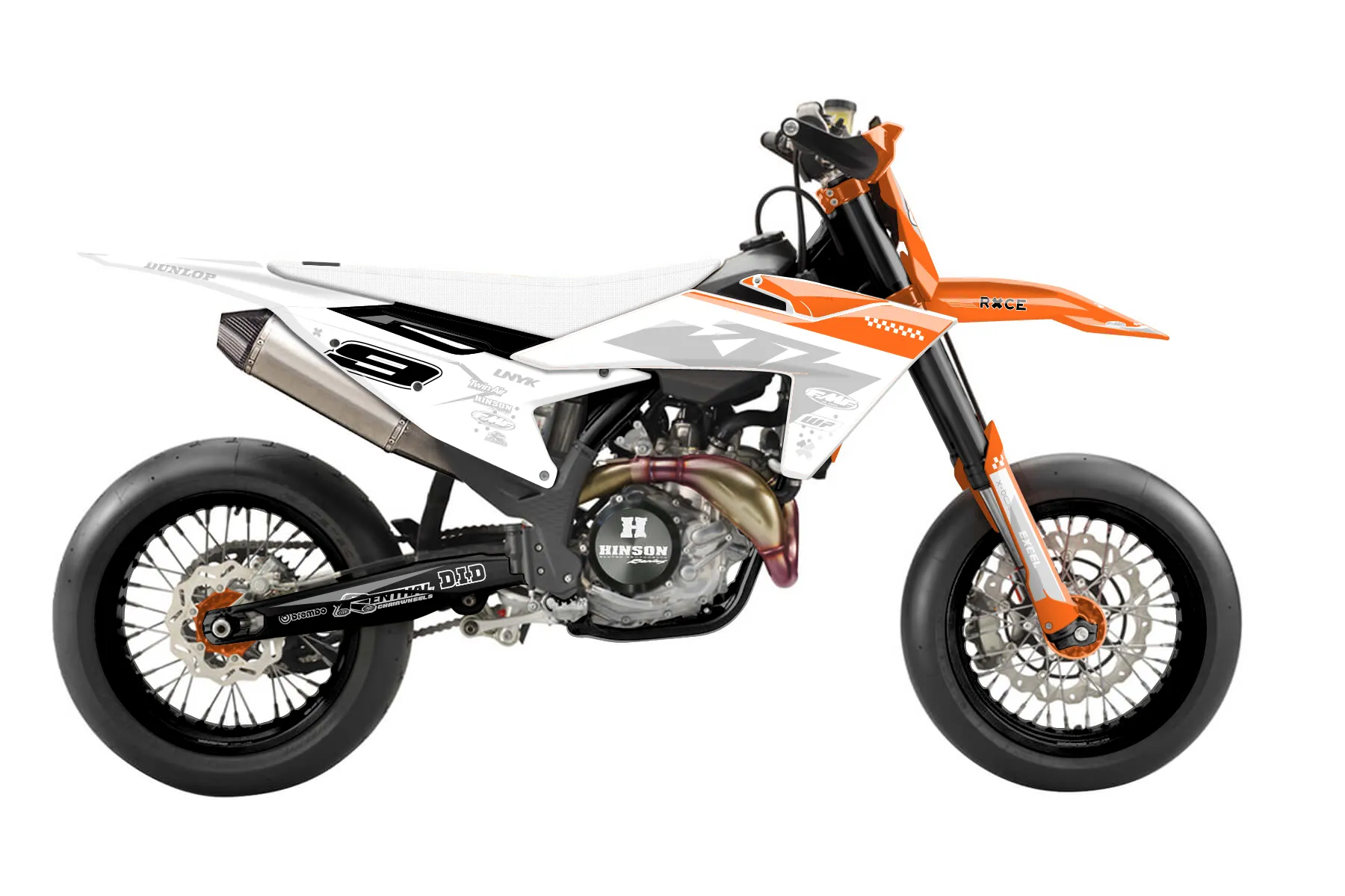 «Myth» — готовый комплект графики серии Staple для KTM Supermoto KTM SMR 450 2025. В комплекте: графика на бак и боковые облицовки, крылья (переднее и заднее), передний щиток, номерные таблички, защита вилки. Материал: ПВХ-винил 80 мкр с холодной ламинацией 300 мкр, общая толщина 380 мкр; покрытие глянцевое или матовое на выбор. Устойчив к UV-излучению, воде, бензину и мойке высокого давления. Клей акриловый на сольвентной основе — постоянный, для гибких пластиков. На простых поверхностях монтируется без нагрева; для сложных изгибов рекомендуем фен. Этот пресет можно заказать как есть или взять за основу в конструкторе: поменять цвета, добавить стартовый номер и свой бренд. Производство — 3–5 рабочих дней, доставка по России СДЭКом или Почтой, по СНГ — курьерскими службами.