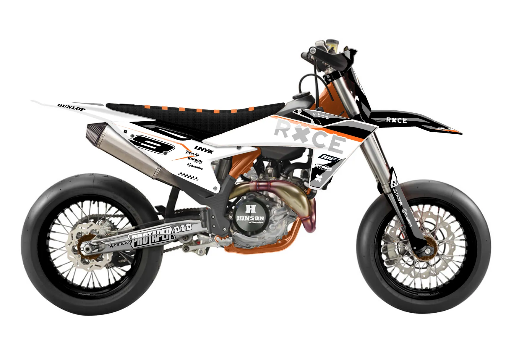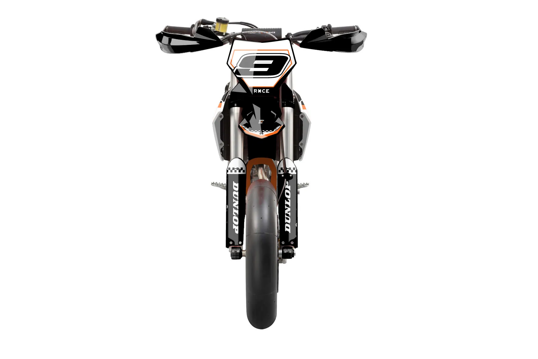 «Optical» — готовый комплект графики серии Staple для KTM Supermoto KTM SMR 450 2025. В комплекте: графика на бак и боковые облицовки, крылья (переднее и заднее), передний щиток, номерные таблички, защита вилки. Материал: ПВХ-винил 80 мкр с холодной ламинацией 300 мкр, общая толщина 380 мкр; покрытие глянцевое или матовое на выбор. Устойчив к UV-излучению, воде, бензину и мойке высокого давления. Клей акриловый на сольвентной основе — постоянный, для гибких пластиков. На простых поверхностях монтируется без нагрева; для сложных изгибов рекомендуем фен. Этот пресет можно заказать как есть или взять за основу в конструкторе: поменять цвета, добавить стартовый номер и свой бренд. Производство — 3–5 рабочих дней, доставка по России СДЭКом или Почтой, по СНГ — курьерскими службами.