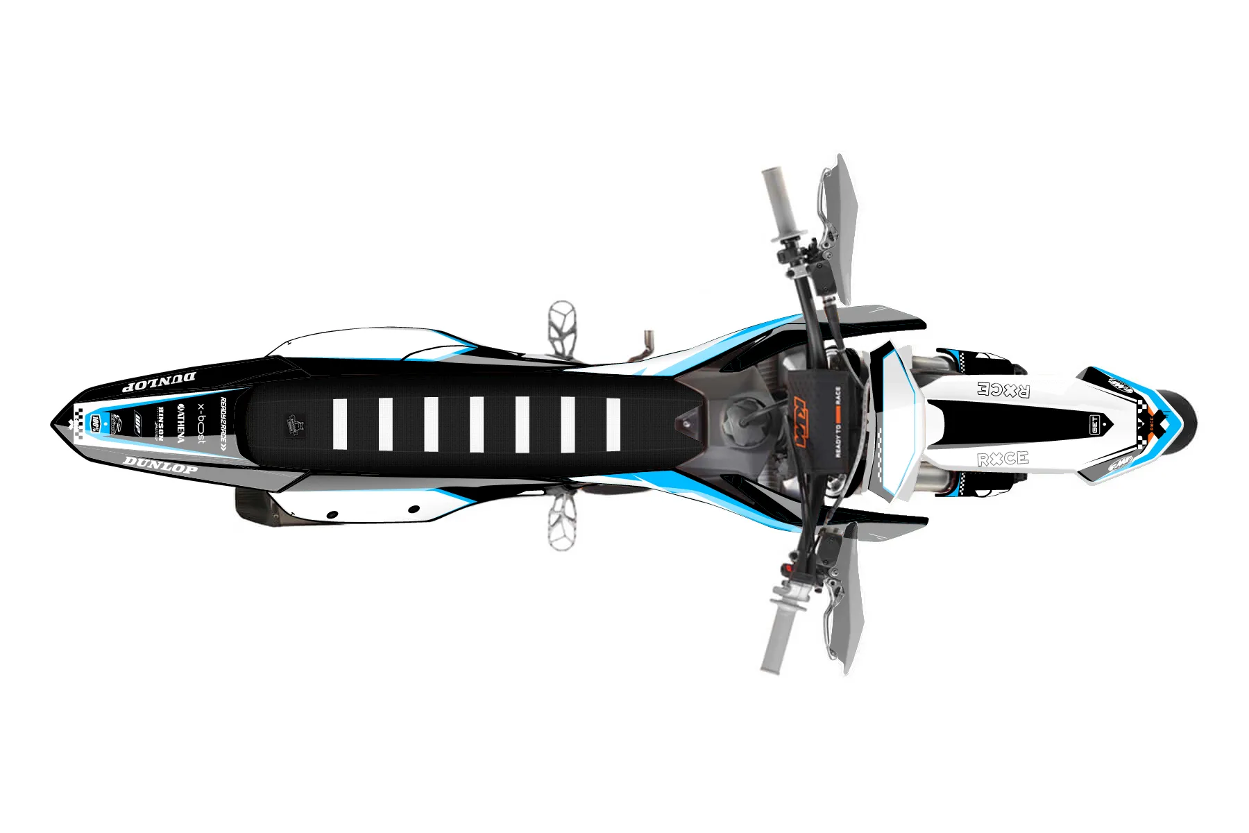«Rule» — готовый комплект графики серии Staple для KTM Supermoto KTM SMR 450 2025. В комплекте: графика на бак и боковые облицовки, крылья (переднее и заднее), передний щиток, номерные таблички, защита вилки. Материал: ПВХ-винил 80 мкр с холодной ламинацией 300 мкр, общая толщина 380 мкр; покрытие глянцевое или матовое на выбор. Устойчив к UV-излучению, воде, бензину и мойке высокого давления. Клей акриловый на сольвентной основе — постоянный, для гибких пластиков. На простых поверхностях монтируется без нагрева; для сложных изгибов рекомендуем фен. Этот пресет можно заказать как есть или взять за основу в конструкторе: поменять цвета, добавить стартовый номер и свой бренд. Производство — 3–5 рабочих дней, доставка по России СДЭКом или Почтой, по СНГ — курьерскими службами.
