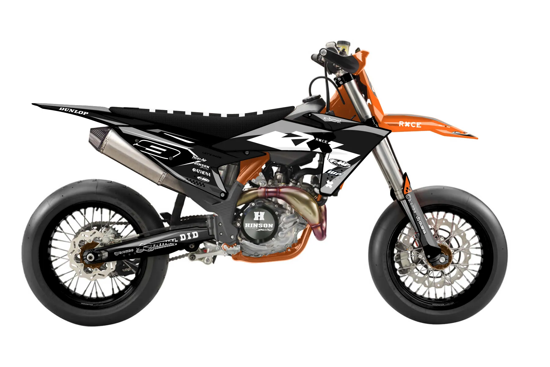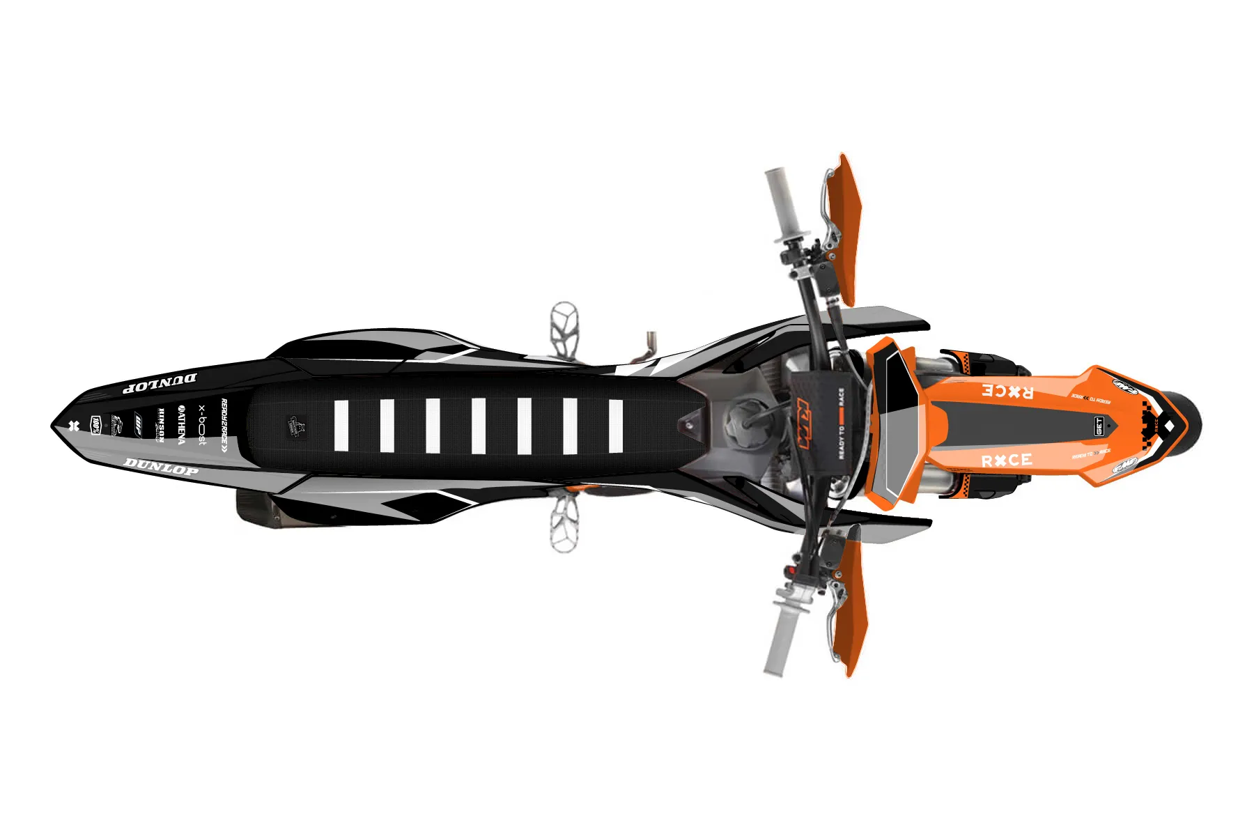 «Thrill» — готовый комплект графики серии Staple для KTM Supermoto KTM SMR 450 2025. В комплекте: графика на бак и боковые облицовки, крылья (переднее и заднее), передний щиток, номерные таблички, защита вилки. Материал: ПВХ-винил 80 мкр с холодной ламинацией 300 мкр, общая толщина 380 мкр; покрытие глянцевое или матовое на выбор. Устойчив к UV-излучению, воде, бензину и мойке высокого давления. Клей акриловый на сольвентной основе — постоянный, для гибких пластиков. На простых поверхностях монтируется без нагрева; для сложных изгибов рекомендуем фен. Этот пресет можно заказать как есть или взять за основу в конструкторе: поменять цвета, добавить стартовый номер и свой бренд. Производство — 3–5 рабочих дней, доставка по России СДЭКом или Почтой, по СНГ — курьерскими службами.