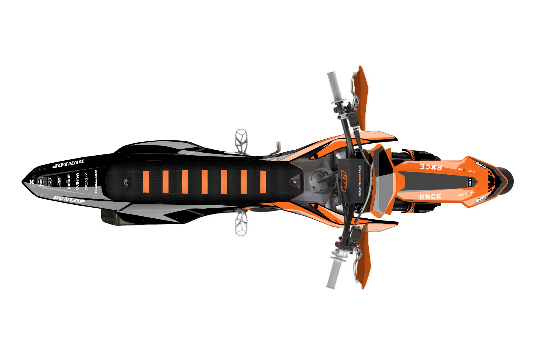 «Tide» — готовый комплект графики серии Staple для KTM Supermoto KTM SMR 450 2025. В комплекте: графика на бак и боковые облицовки, крылья (переднее и заднее), передний щиток, номерные таблички, защита вилки. Материал: ПВХ-винил 80 мкр с холодной ламинацией 300 мкр, общая толщина 380 мкр; покрытие глянцевое или матовое на выбор. Устойчив к UV-излучению, воде, бензину и мойке высокого давления. Клей акриловый на сольвентной основе — постоянный, для гибких пластиков. На простых поверхностях монтируется без нагрева; для сложных изгибов рекомендуем фен. Этот пресет можно заказать как есть или взять за основу в конструкторе: поменять цвета, добавить стартовый номер и свой бренд. Производство — 3–5 рабочих дней, доставка по России СДЭКом или Почтой, по СНГ — курьерскими службами.