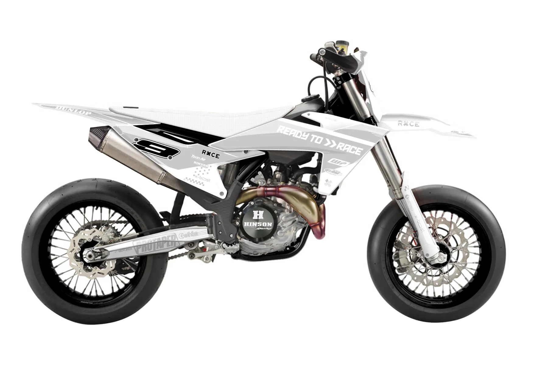 «Uphill» — готовый комплект графики серии Staple для KTM Supermoto KTM SMR 450 2025. В комплекте: графика на бак и боковые облицовки, крылья (переднее и заднее), передний щиток, номерные таблички, защита вилки. Материал: ПВХ-винил 80 мкр с холодной ламинацией 300 мкр, общая толщина 380 мкр; покрытие глянцевое или матовое на выбор. Устойчив к UV-излучению, воде, бензину и мойке высокого давления. Клей акриловый на сольвентной основе — постоянный, для гибких пластиков. На простых поверхностях монтируется без нагрева; для сложных изгибов рекомендуем фен. Этот пресет можно заказать как есть или взять за основу в конструкторе: поменять цвета, добавить стартовый номер и свой бренд. Производство — 3–5 рабочих дней, доставка по России СДЭКом или Почтой, по СНГ — курьерскими службами.