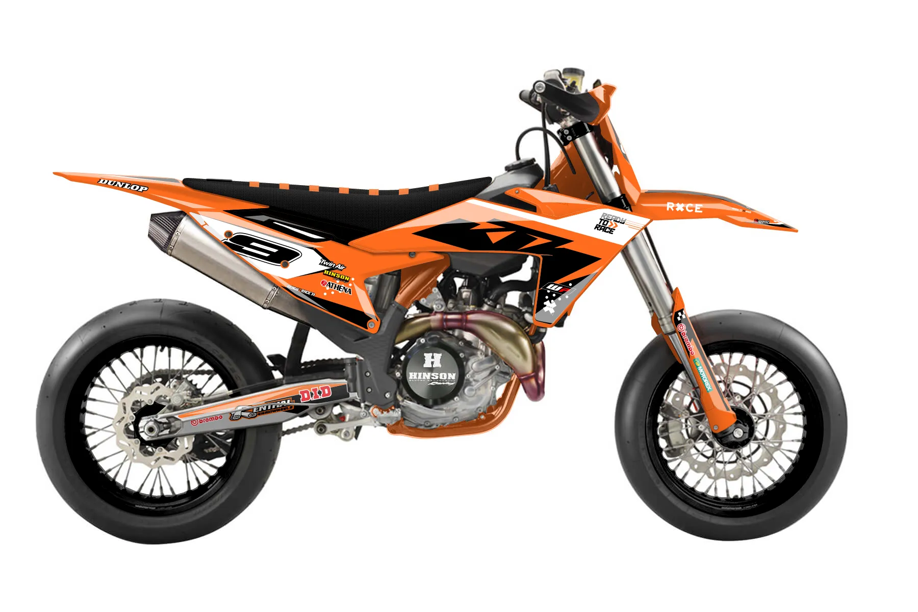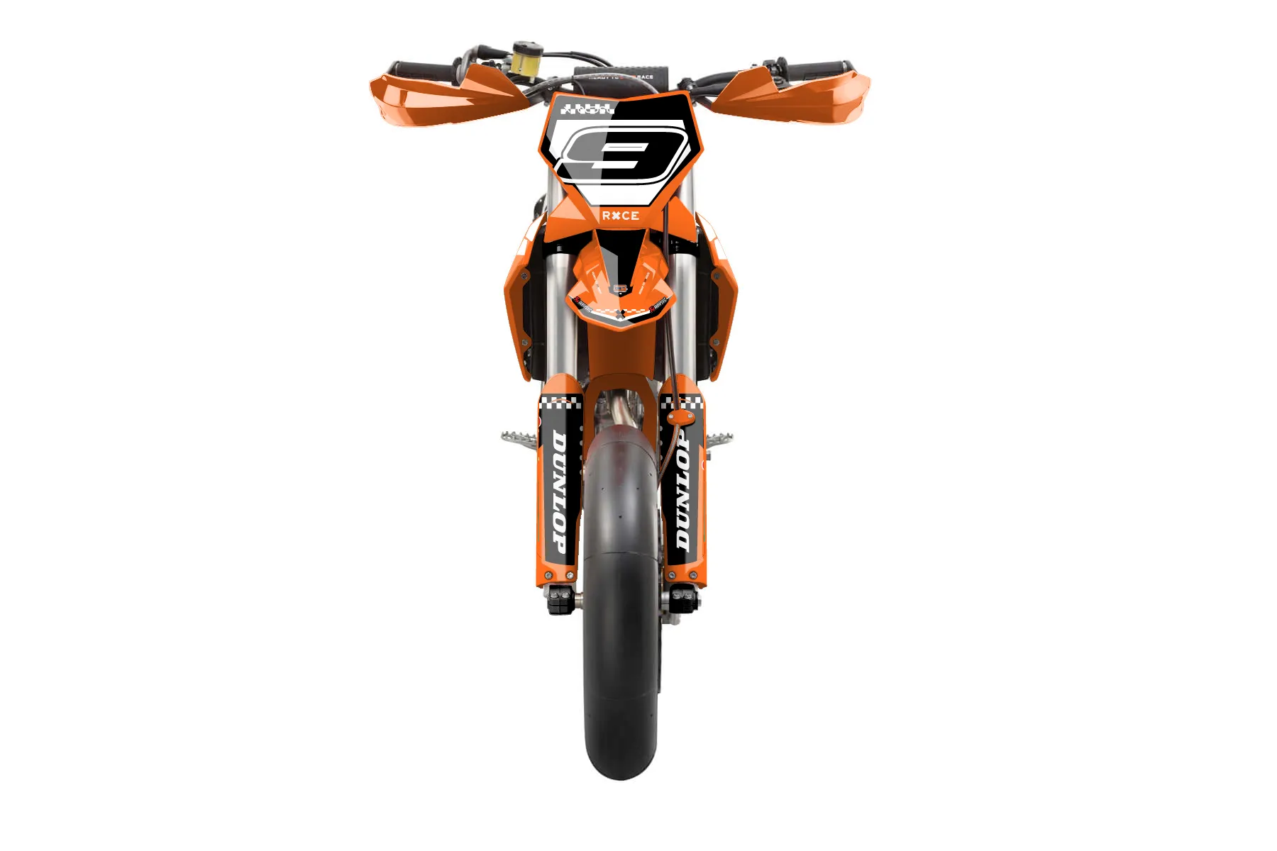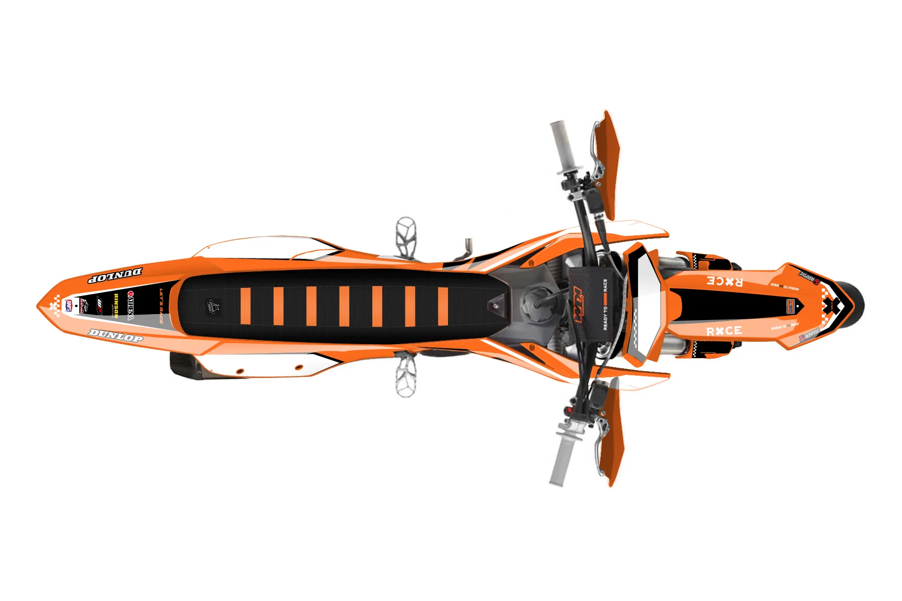 «Volt» — готовый комплект графики серии Staple для KTM Supermoto KTM SMR 450 2025. В комплекте: графика на бак и боковые облицовки, крылья (переднее и заднее), передний щиток, номерные таблички, защита вилки. Материал: ПВХ-винил 80 мкр с холодной ламинацией 300 мкр, общая толщина 380 мкр; покрытие глянцевое или матовое на выбор. Устойчив к UV-излучению, воде, бензину и мойке высокого давления. Клей акриловый на сольвентной основе — постоянный, для гибких пластиков. На простых поверхностях монтируется без нагрева; для сложных изгибов рекомендуем фен. Этот пресет можно заказать как есть или взять за основу в конструкторе: поменять цвета, добавить стартовый номер и свой бренд. Производство — 3–5 рабочих дней, доставка по России СДЭКом или Почтой, по СНГ — курьерскими службами.