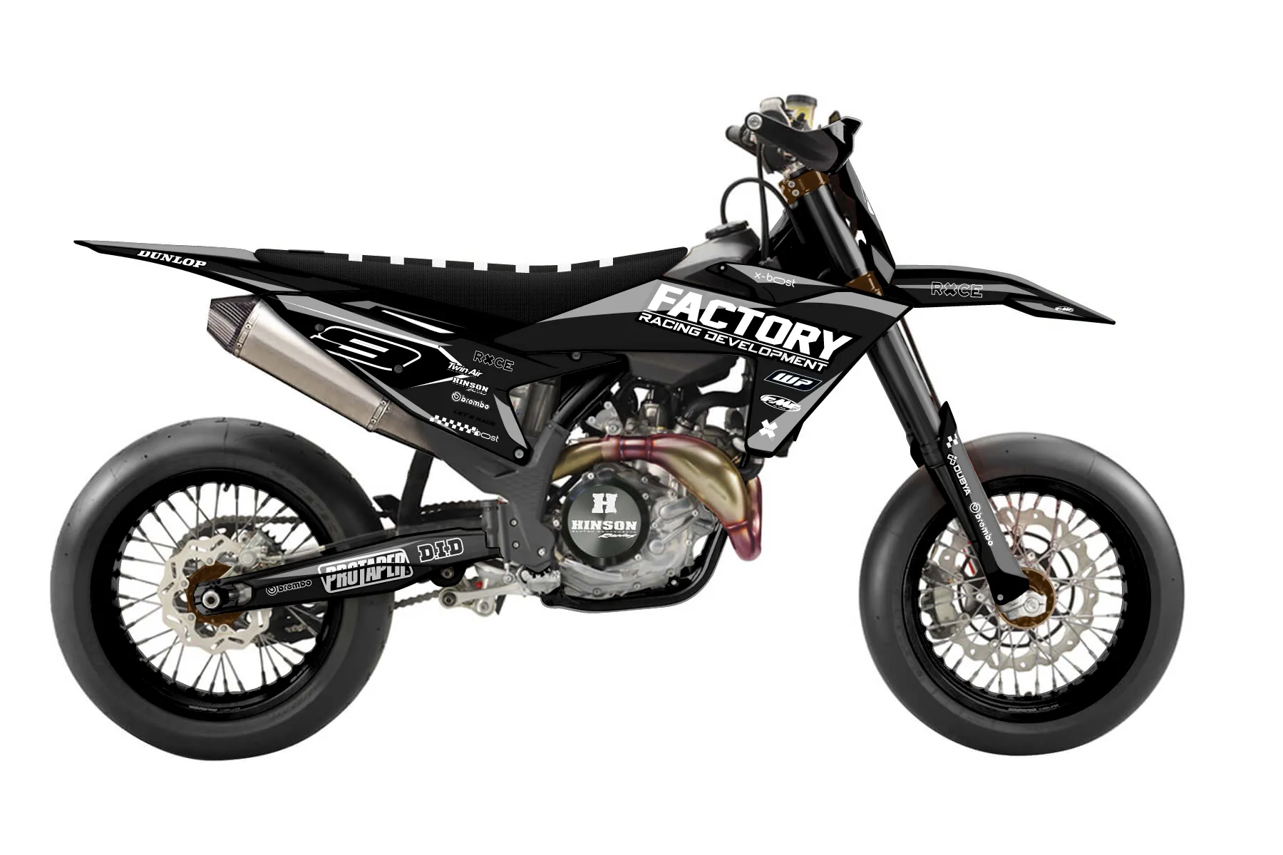 «Word» — готовый комплект графики серии Staple для KTM Supermoto KTM SMR 450 2025. В комплекте: графика на бак и боковые облицовки, крылья (переднее и заднее), передний щиток, номерные таблички, защита вилки. Материал: ПВХ-винил 80 мкр с холодной ламинацией 300 мкр, общая толщина 380 мкр; покрытие глянцевое или матовое на выбор. Устойчив к UV-излучению, воде, бензину и мойке высокого давления. Клей акриловый на сольвентной основе — постоянный, для гибких пластиков. На простых поверхностях монтируется без нагрева; для сложных изгибов рекомендуем фен. Этот пресет можно заказать как есть или взять за основу в конструкторе: поменять цвета, добавить стартовый номер и свой бренд. Производство — 3–5 рабочих дней, доставка по России СДЭКом или Почтой, по СНГ — курьерскими службами.