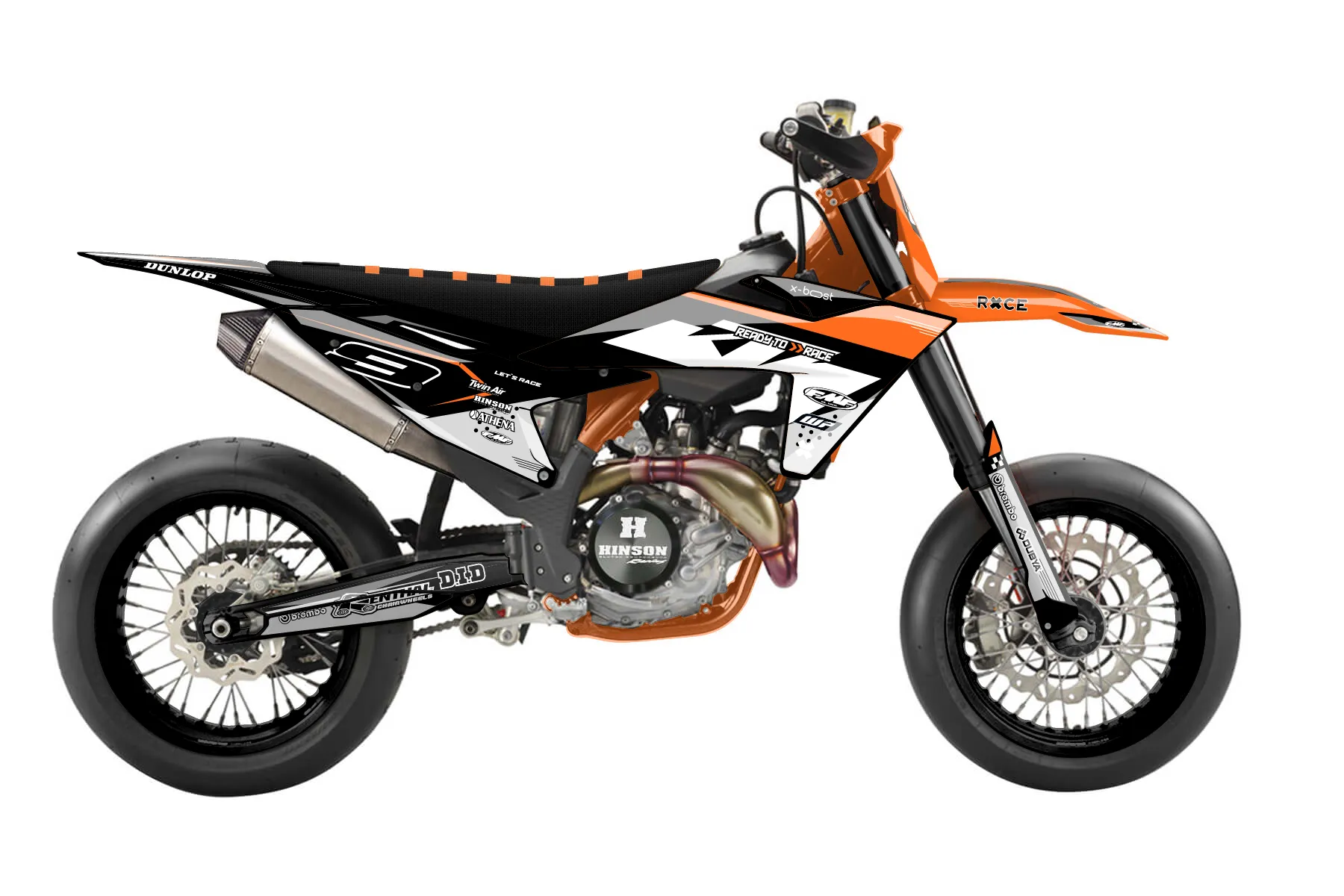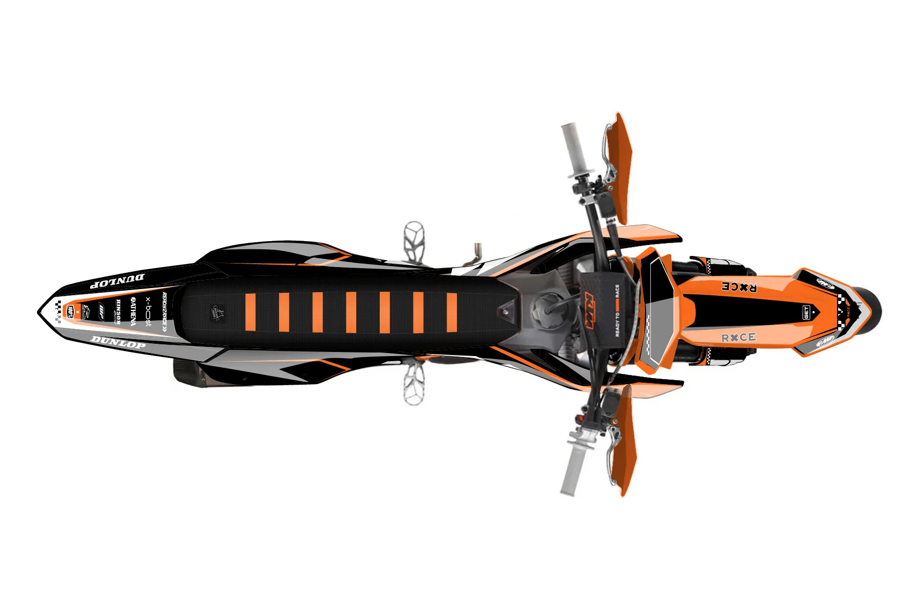 «Zebra» — готовый комплект графики серии Staple для KTM Supermoto KTM SMR 450 2025. В комплекте: графика на бак и боковые облицовки, крылья (переднее и заднее), передний щиток, номерные таблички, защита вилки. Материал: ПВХ-винил 80 мкр с холодной ламинацией 300 мкр, общая толщина 380 мкр; покрытие глянцевое или матовое на выбор. Устойчив к UV-излучению, воде, бензину и мойке высокого давления. Клей акриловый на сольвентной основе — постоянный, для гибких пластиков. На простых поверхностях монтируется без нагрева; для сложных изгибов рекомендуем фен. Этот пресет можно заказать как есть или взять за основу в конструкторе: поменять цвета, добавить стартовый номер и свой бренд. Производство — 3–5 рабочих дней, доставка по России СДЭКом или Почтой, по СНГ — курьерскими службами.