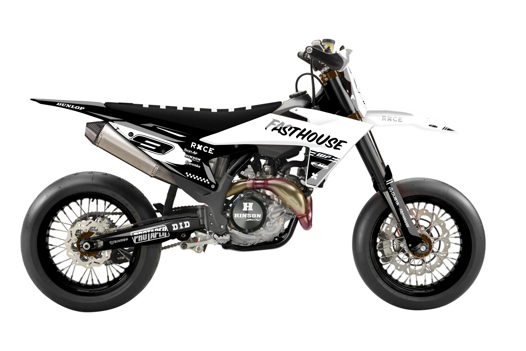 «Clear» — готовый комплект графики серии Untucked для KTM Supermoto KTM SMR 450 2025. В комплекте: графика на бак и боковые облицовки, крылья (переднее и заднее), передний щиток, номерные таблички, защита вилки. Материал: ПВХ-винил 80 мкр с холодной ламинацией 300 мкр, общая толщина 380 мкр; покрытие глянцевое или матовое на выбор. Устойчив к UV-излучению, воде, бензину и мойке высокого давления. Клей акриловый на сольвентной основе — постоянный, для гибких пластиков. На простых поверхностях монтируется без нагрева; для сложных изгибов рекомендуем фен. Этот пресет можно заказать как есть или взять за основу в конструкторе: поменять цвета, добавить стартовый номер и свой бренд. Производство — 3–5 рабочих дней, доставка по России СДЭКом или Почтой, по СНГ — курьерскими службами.