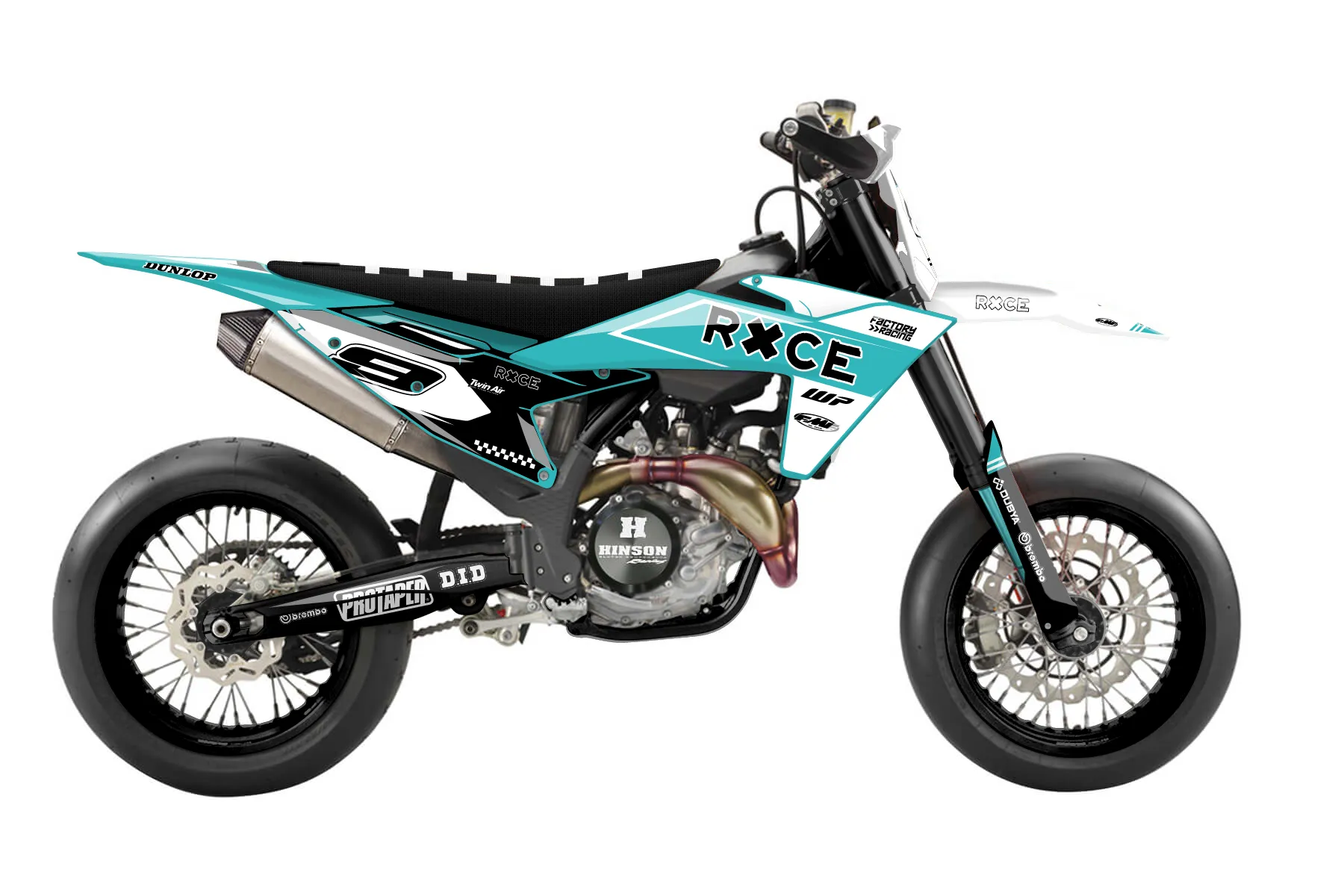 «Dynamic» — готовый комплект графики серии Untucked для KTM Supermoto KTM SMR 450 2025. В комплекте: графика на бак и боковые облицовки, крылья (переднее и заднее), передний щиток, номерные таблички, защита вилки. Материал: ПВХ-винил 80 мкр с холодной ламинацией 300 мкр, общая толщина 380 мкр; покрытие глянцевое или матовое на выбор. Устойчив к UV-излучению, воде, бензину и мойке высокого давления. Клей акриловый на сольвентной основе — постоянный, для гибких пластиков. На простых поверхностях монтируется без нагрева; для сложных изгибов рекомендуем фен. Этот пресет можно заказать как есть или взять за основу в конструкторе: поменять цвета, добавить стартовый номер и свой бренд. Производство — 3–5 рабочих дней, доставка по России СДЭКом или Почтой, по СНГ — курьерскими службами.