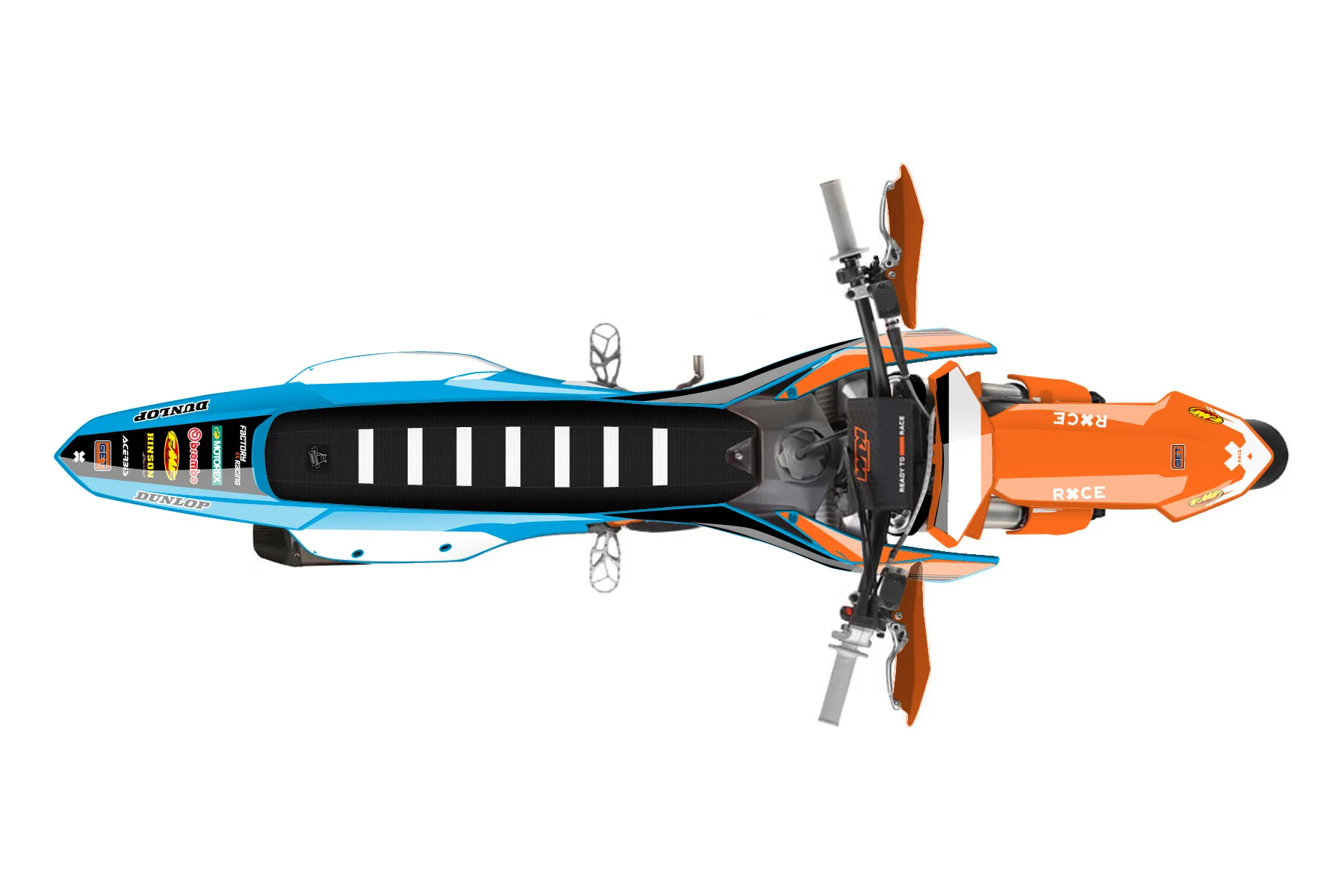 «Electrical» — готовый комплект графики серии Untucked для KTM Supermoto KTM SMR 450 2025. В комплекте: графика на бак и боковые облицовки, крылья (переднее и заднее), передний щиток, номерные таблички, защита вилки. Материал: ПВХ-винил 80 мкр с холодной ламинацией 300 мкр, общая толщина 380 мкр; покрытие глянцевое или матовое на выбор. Устойчив к UV-излучению, воде, бензину и мойке высокого давления. Клей акриловый на сольвентной основе — постоянный, для гибких пластиков. На простых поверхностях монтируется без нагрева; для сложных изгибов рекомендуем фен. Этот пресет можно заказать как есть или взять за основу в конструкторе: поменять цвета, добавить стартовый номер и свой бренд. Производство — 3–5 рабочих дней, доставка по России СДЭКом или Почтой, по СНГ — курьерскими службами.