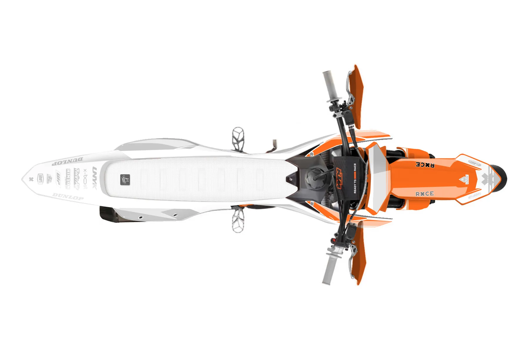 «Flying» — готовый комплект графики серии Untucked для KTM Supermoto KTM SMR 450 2025. В комплекте: графика на бак и боковые облицовки, крылья (переднее и заднее), передний щиток, номерные таблички, защита вилки. Материал: ПВХ-винил 80 мкр с холодной ламинацией 300 мкр, общая толщина 380 мкр; покрытие глянцевое или матовое на выбор. Устойчив к UV-излучению, воде, бензину и мойке высокого давления. Клей акриловый на сольвентной основе — постоянный, для гибких пластиков. На простых поверхностях монтируется без нагрева; для сложных изгибов рекомендуем фен. Этот пресет можно заказать как есть или взять за основу в конструкторе: поменять цвета, добавить стартовый номер и свой бренд. Производство — 3–5 рабочих дней, доставка по России СДЭКом или Почтой, по СНГ — курьерскими службами.