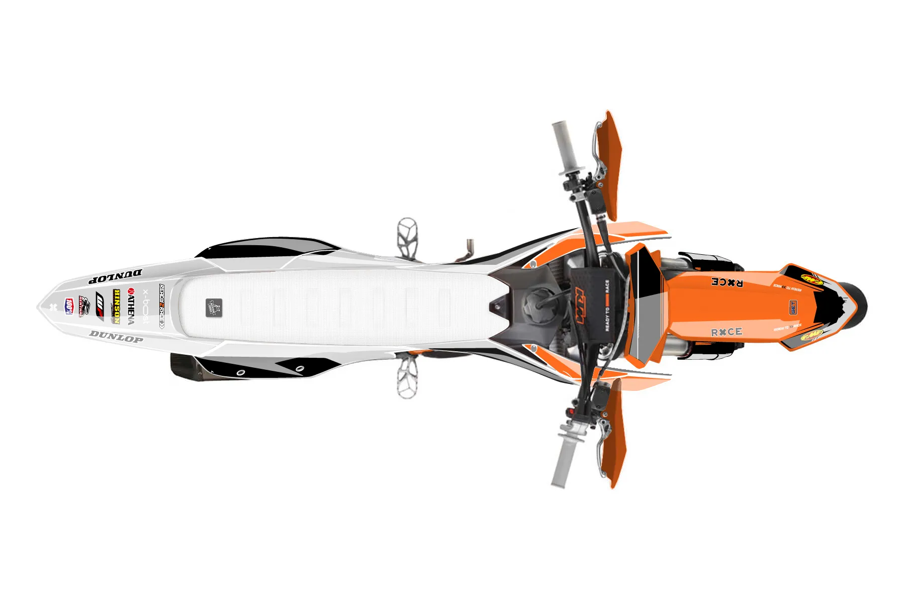 «Illusison» — готовый комплект графики серии Untucked для KTM Supermoto KTM SMR 450 2025. В комплекте: графика на бак и боковые облицовки, крылья (переднее и заднее), передний щиток, номерные таблички, защита вилки. Материал: ПВХ-винил 80 мкр с холодной ламинацией 300 мкр, общая толщина 380 мкр; покрытие глянцевое или матовое на выбор. Устойчив к UV-излучению, воде, бензину и мойке высокого давления. Клей акриловый на сольвентной основе — постоянный, для гибких пластиков. На простых поверхностях монтируется без нагрева; для сложных изгибов рекомендуем фен. Этот пресет можно заказать как есть или взять за основу в конструкторе: поменять цвета, добавить стартовый номер и свой бренд. Производство — 3–5 рабочих дней, доставка по России СДЭКом или Почтой, по СНГ — курьерскими службами.