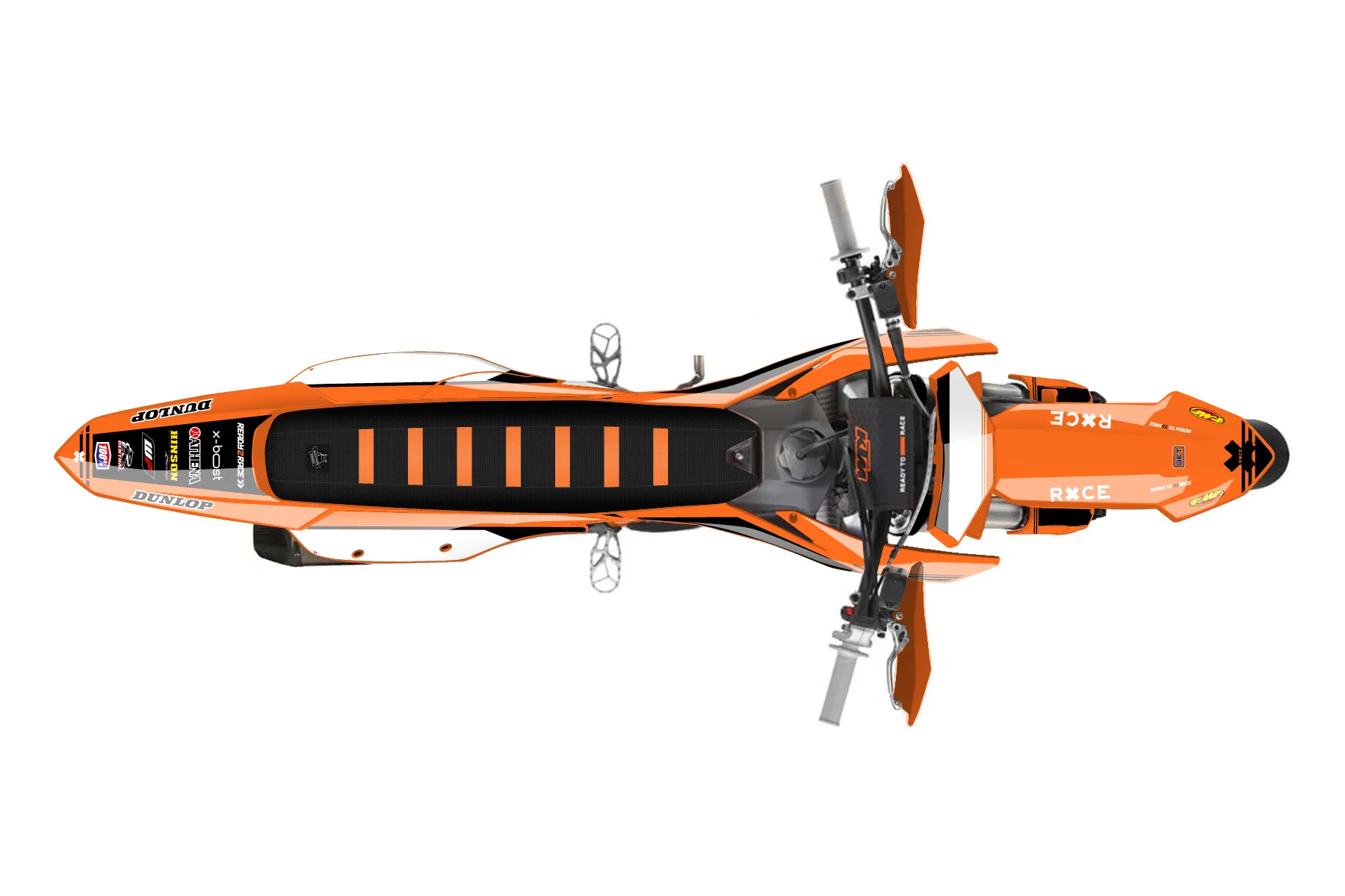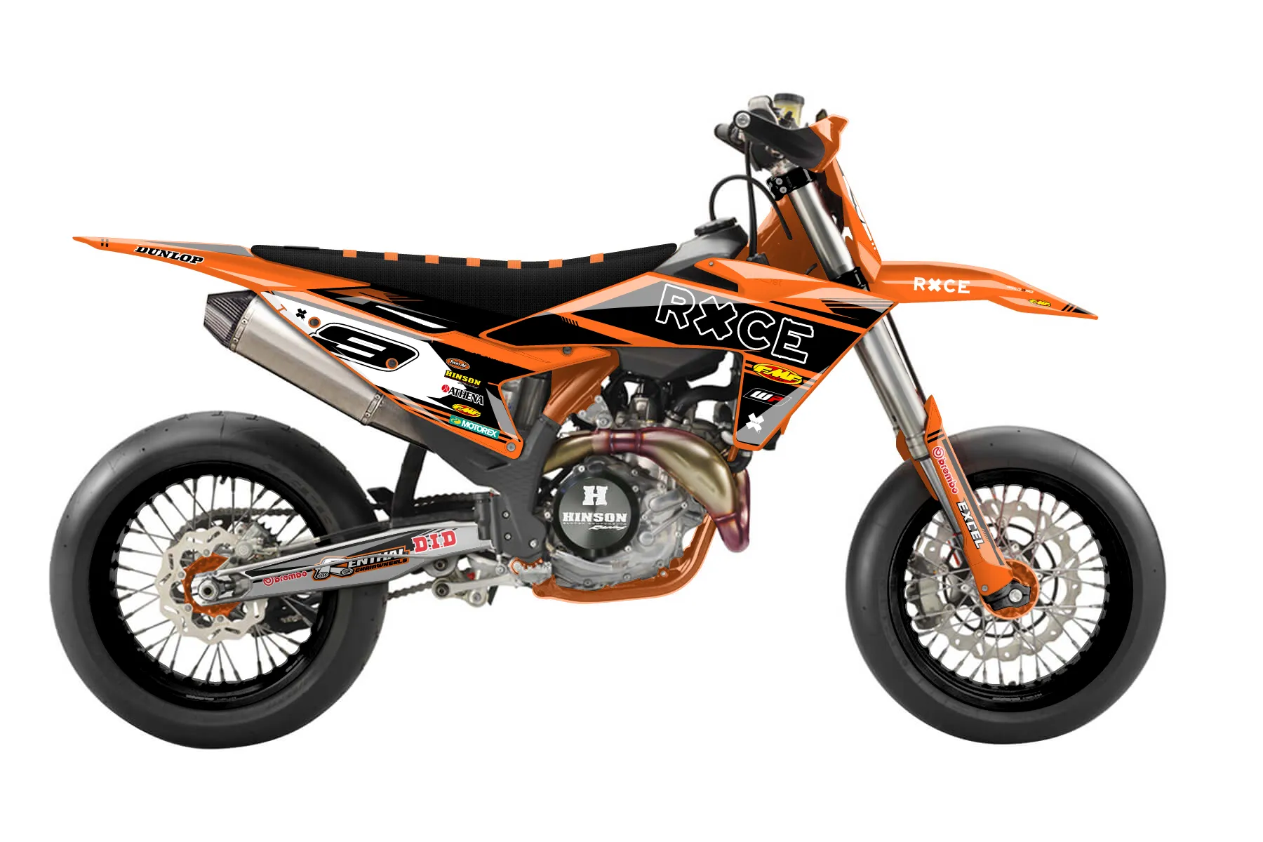 «Intact» — готовый комплект графики серии Untucked для KTM Supermoto KTM SMR 450 2025. В комплекте: графика на бак и боковые облицовки, крылья (переднее и заднее), передний щиток, номерные таблички, защита вилки. Материал: ПВХ-винил 80 мкр с холодной ламинацией 300 мкр, общая толщина 380 мкр; покрытие глянцевое или матовое на выбор. Устойчив к UV-излучению, воде, бензину и мойке высокого давления. Клей акриловый на сольвентной основе — постоянный, для гибких пластиков. На простых поверхностях монтируется без нагрева; для сложных изгибов рекомендуем фен. Этот пресет можно заказать как есть или взять за основу в конструкторе: поменять цвета, добавить стартовый номер и свой бренд. Производство — 3–5 рабочих дней, доставка по России СДЭКом или Почтой, по СНГ — курьерскими службами.