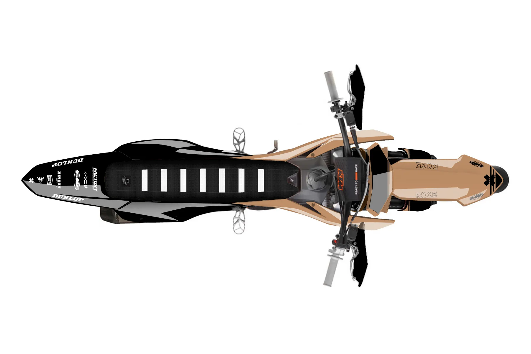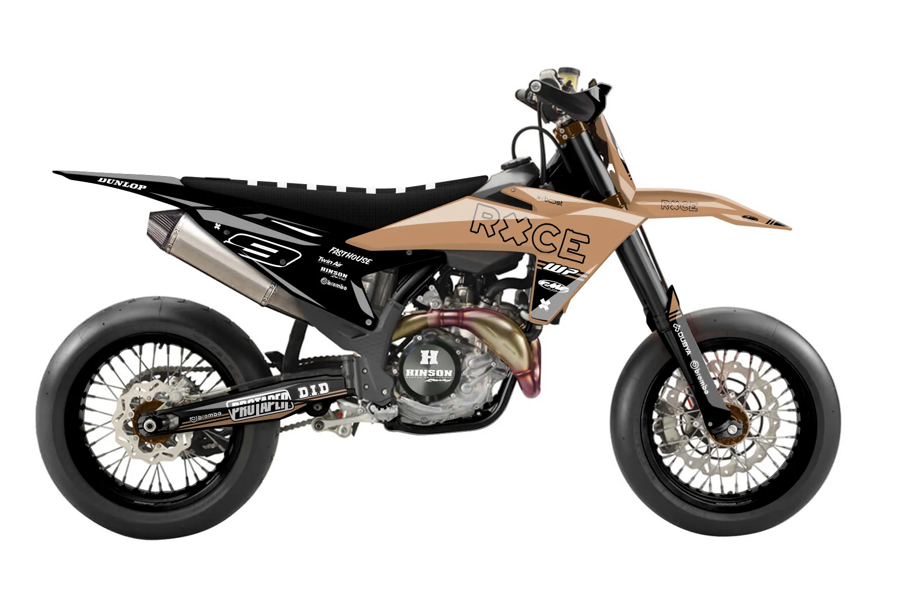 «Magnetic» — готовый комплект графики серии Untucked для KTM Supermoto KTM SMR 450 2025. В комплекте: графика на бак и боковые облицовки, крылья (переднее и заднее), передний щиток, номерные таблички, защита вилки. Материал: ПВХ-винил 80 мкр с холодной ламинацией 300 мкр, общая толщина 380 мкр; покрытие глянцевое или матовое на выбор. Устойчив к UV-излучению, воде, бензину и мойке высокого давления. Клей акриловый на сольвентной основе — постоянный, для гибких пластиков. На простых поверхностях монтируется без нагрева; для сложных изгибов рекомендуем фен. Этот пресет можно заказать как есть или взять за основу в конструкторе: поменять цвета, добавить стартовый номер и свой бренд. Производство — 3–5 рабочих дней, доставка по России СДЭКом или Почтой, по СНГ — курьерскими службами.