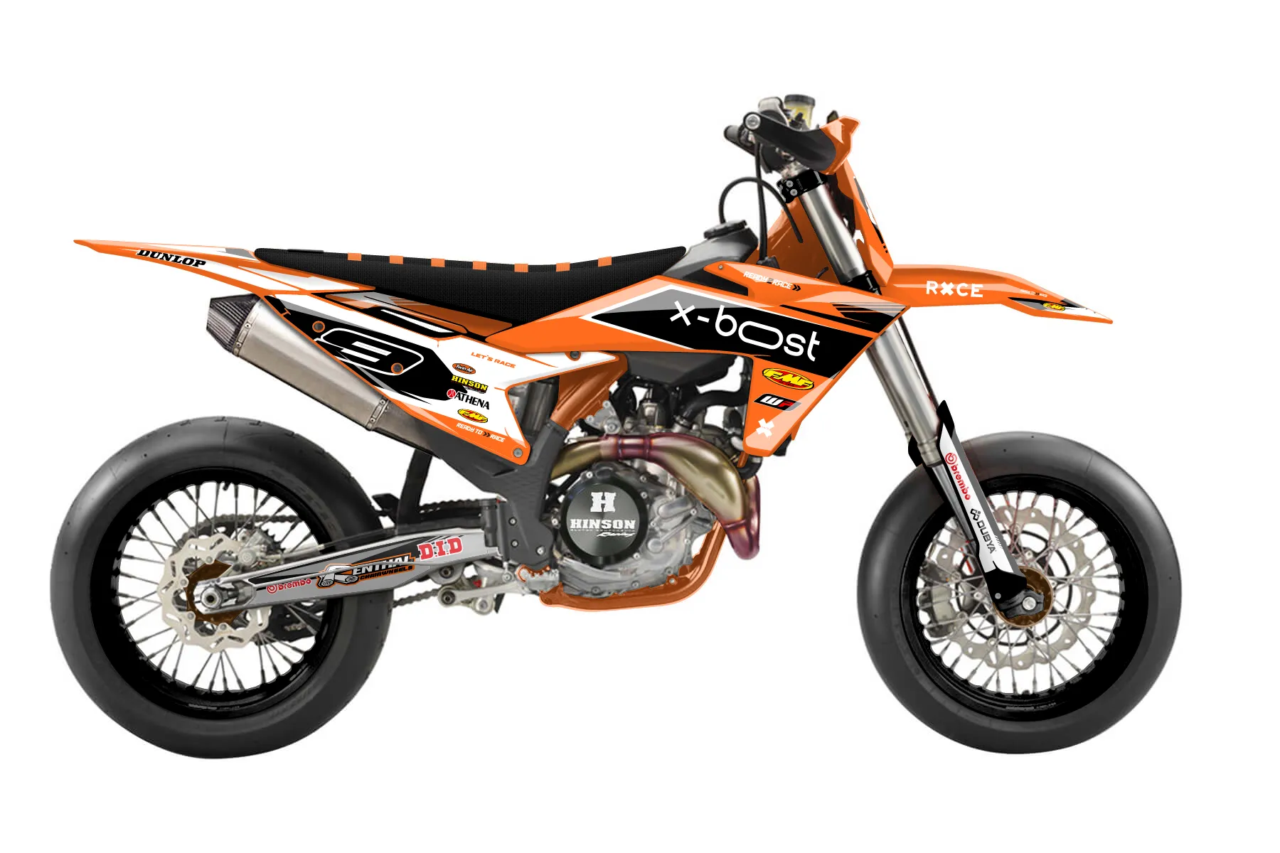 «Proven» — готовый комплект графики серии Untucked для KTM Supermoto KTM SMR 450 2025. В комплекте: графика на бак и боковые облицовки, крылья (переднее и заднее), передний щиток, номерные таблички, защита вилки. Материал: ПВХ-винил 80 мкр с холодной ламинацией 300 мкр, общая толщина 380 мкр; покрытие глянцевое или матовое на выбор. Устойчив к UV-излучению, воде, бензину и мойке высокого давления. Клей акриловый на сольвентной основе — постоянный, для гибких пластиков. На простых поверхностях монтируется без нагрева; для сложных изгибов рекомендуем фен. Этот пресет можно заказать как есть или взять за основу в конструкторе: поменять цвета, добавить стартовый номер и свой бренд. Производство — 3–5 рабочих дней, доставка по России СДЭКом или Почтой, по СНГ — курьерскими службами.