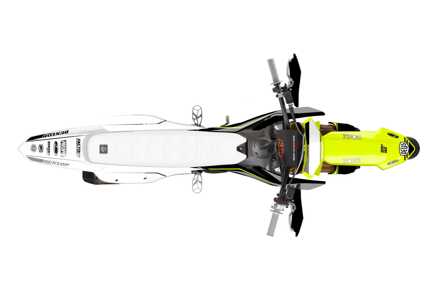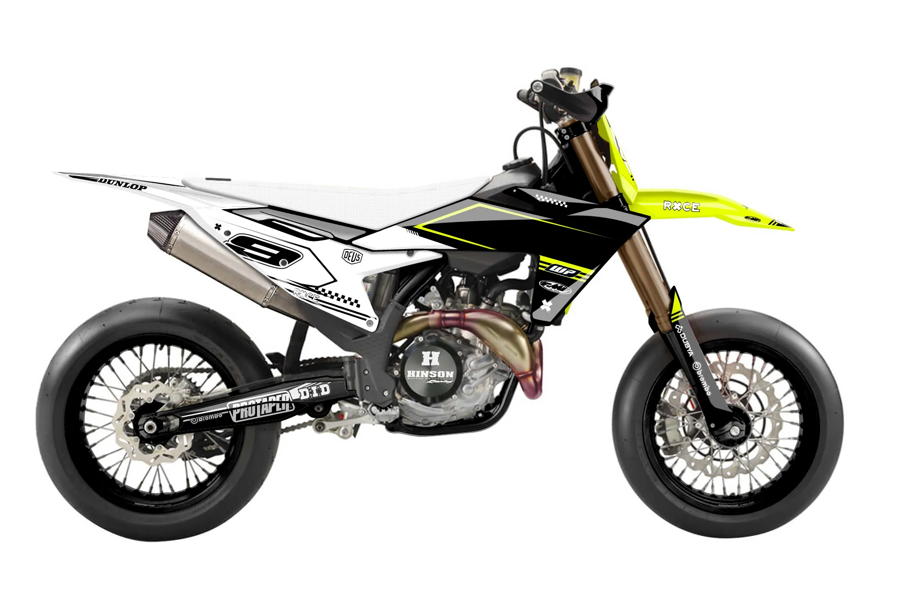 «Ride Neon» — готовый комплект графики серии Untucked для KTM Supermoto KTM SMR 450 2025. В комплекте: графика на бак и боковые облицовки, крылья (переднее и заднее), передний щиток, номерные таблички, защита вилки. Материал: ПВХ-винил 80 мкр с холодной ламинацией 300 мкр, общая толщина 380 мкр; покрытие глянцевое или матовое на выбор. Устойчив к UV-излучению, воде, бензину и мойке высокого давления. Клей акриловый на сольвентной основе — постоянный, для гибких пластиков. На простых поверхностях монтируется без нагрева; для сложных изгибов рекомендуем фен. Этот пресет можно заказать как есть или взять за основу в конструкторе: поменять цвета, добавить стартовый номер и свой бренд. Производство — 3–5 рабочих дней, доставка по России СДЭКом или Почтой, по СНГ — курьерскими службами.