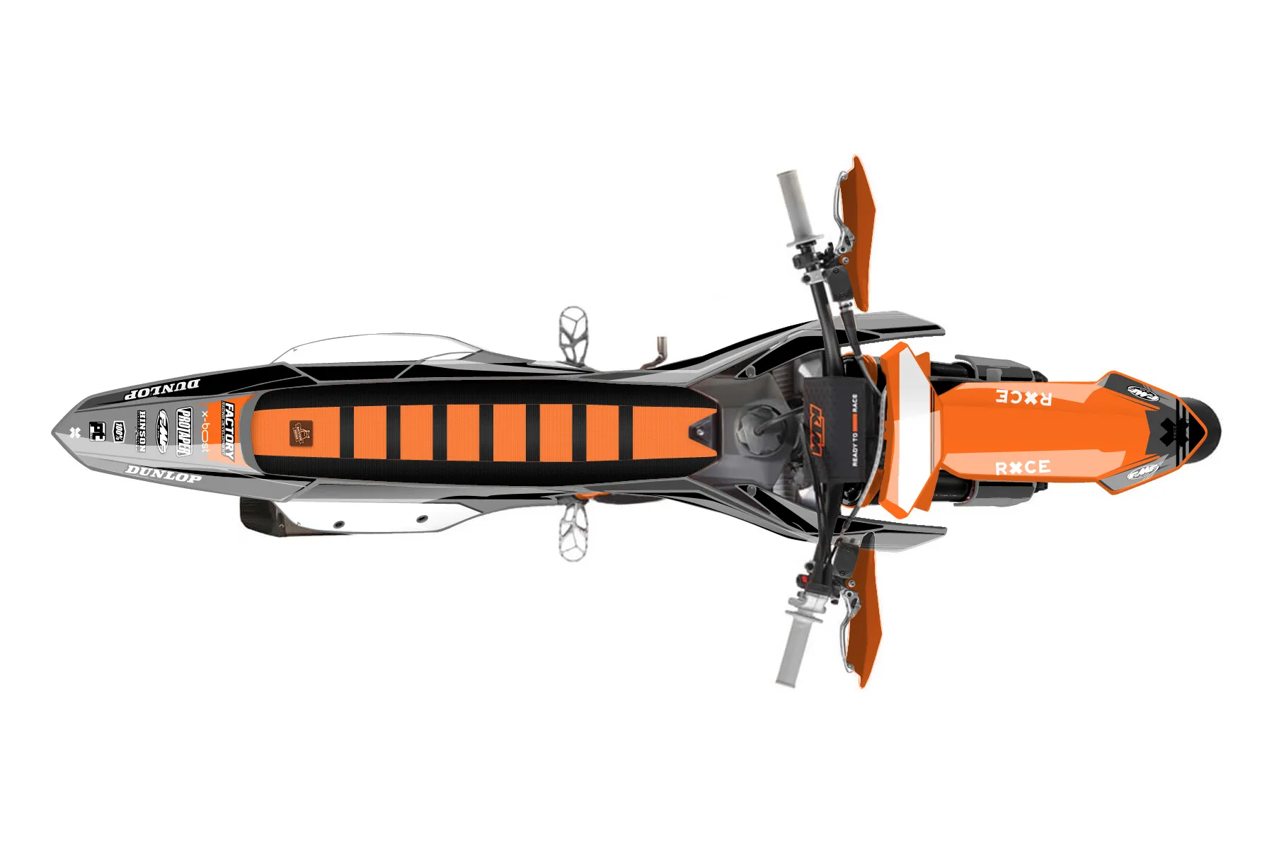 «Satisfied» — готовый комплект графики серии Untucked для KTM Supermoto KTM SMR 450 2025. В комплекте: графика на бак и боковые облицовки, крылья (переднее и заднее), передний щиток, номерные таблички, защита вилки. Материал: ПВХ-винил 80 мкр с холодной ламинацией 300 мкр, общая толщина 380 мкр; покрытие глянцевое или матовое на выбор. Устойчив к UV-излучению, воде, бензину и мойке высокого давления. Клей акриловый на сольвентной основе — постоянный, для гибких пластиков. На простых поверхностях монтируется без нагрева; для сложных изгибов рекомендуем фен. Этот пресет можно заказать как есть или взять за основу в конструкторе: поменять цвета, добавить стартовый номер и свой бренд. Производство — 3–5 рабочих дней, доставка по России СДЭКом или Почтой, по СНГ — курьерскими службами.