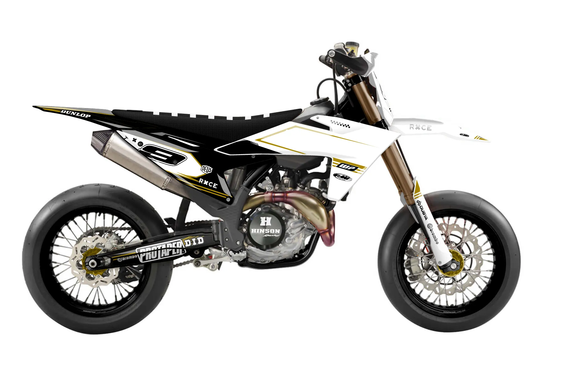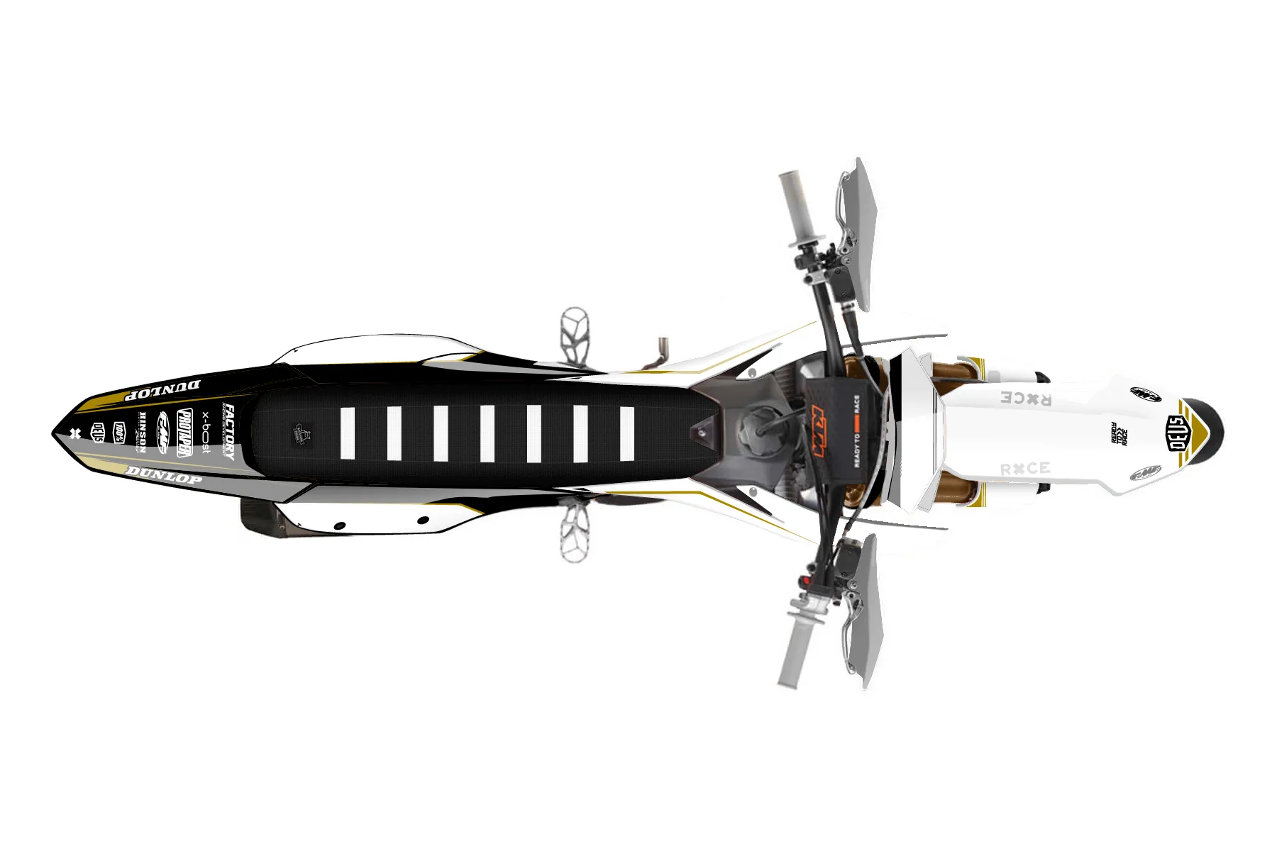 «Sharp» — готовый комплект графики серии Untucked для KTM Supermoto KTM SMR 450 2025. В комплекте: графика на бак и боковые облицовки, крылья (переднее и заднее), передний щиток, номерные таблички, защита вилки. Материал: ПВХ-винил 80 мкр с холодной ламинацией 300 мкр, общая толщина 380 мкр; покрытие глянцевое или матовое на выбор. Устойчив к UV-излучению, воде, бензину и мойке высокого давления. Клей акриловый на сольвентной основе — постоянный, для гибких пластиков. На простых поверхностях монтируется без нагрева; для сложных изгибов рекомендуем фен. Этот пресет можно заказать как есть или взять за основу в конструкторе: поменять цвета, добавить стартовый номер и свой бренд. Производство — 3–5 рабочих дней, доставка по России СДЭКом или Почтой, по СНГ — курьерскими службами.