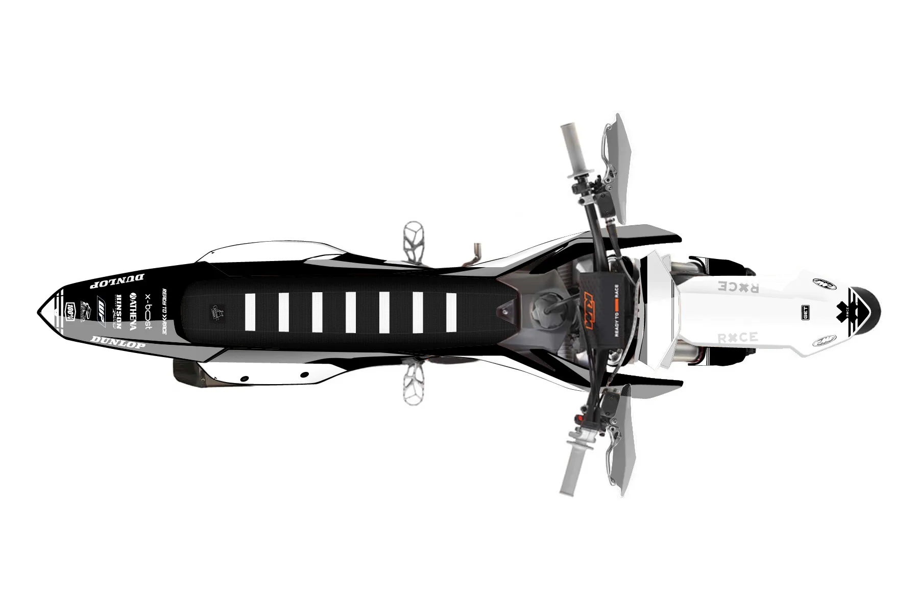 «Specific» — готовый комплект графики серии Untucked для KTM Supermoto KTM SMR 450 2025. В комплекте: графика на бак и боковые облицовки, крылья (переднее и заднее), передний щиток, номерные таблички, защита вилки. Материал: ПВХ-винил 80 мкр с холодной ламинацией 300 мкр, общая толщина 380 мкр; покрытие глянцевое или матовое на выбор. Устойчив к UV-излучению, воде, бензину и мойке высокого давления. Клей акриловый на сольвентной основе — постоянный, для гибких пластиков. На простых поверхностях монтируется без нагрева; для сложных изгибов рекомендуем фен. Этот пресет можно заказать как есть или взять за основу в конструкторе: поменять цвета, добавить стартовый номер и свой бренд. Производство — 3–5 рабочих дней, доставка по России СДЭКом или Почтой, по СНГ — курьерскими службами.