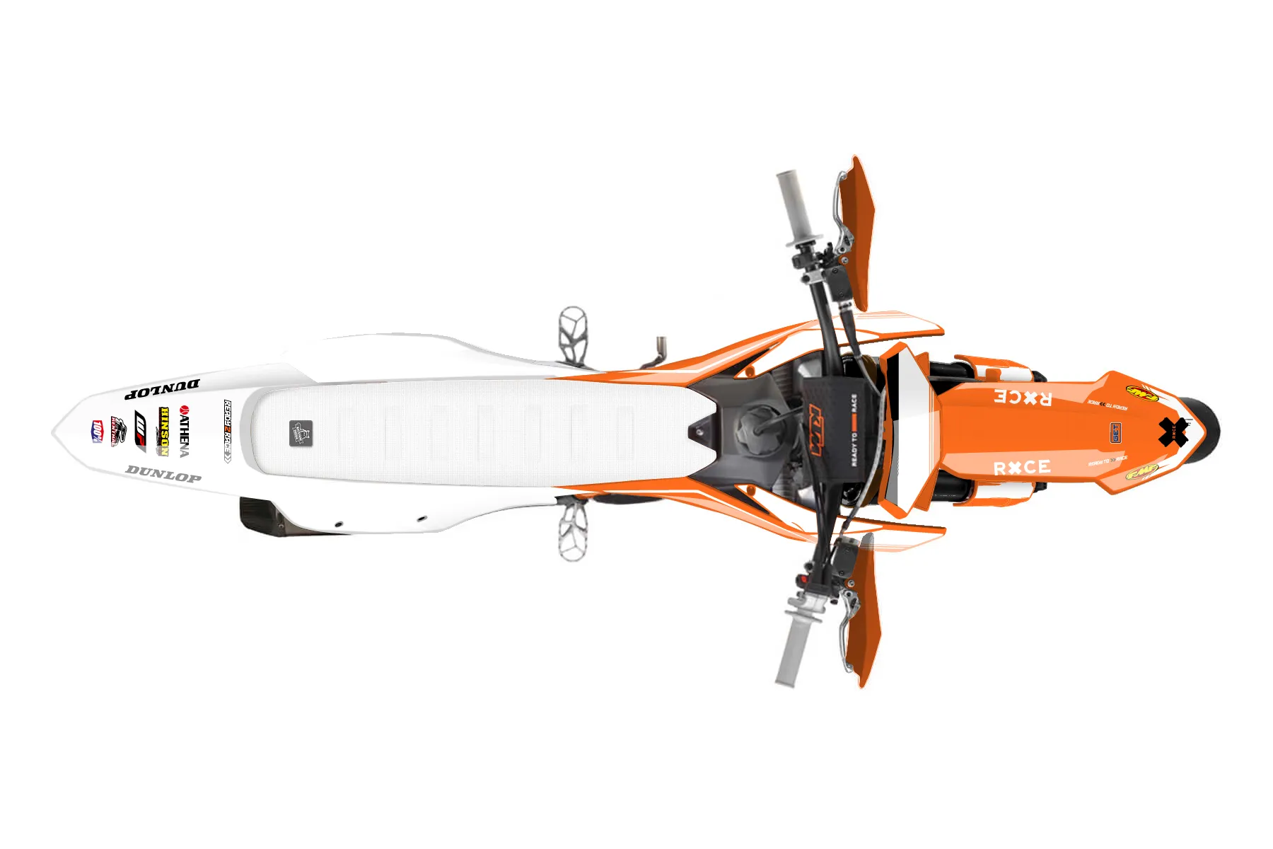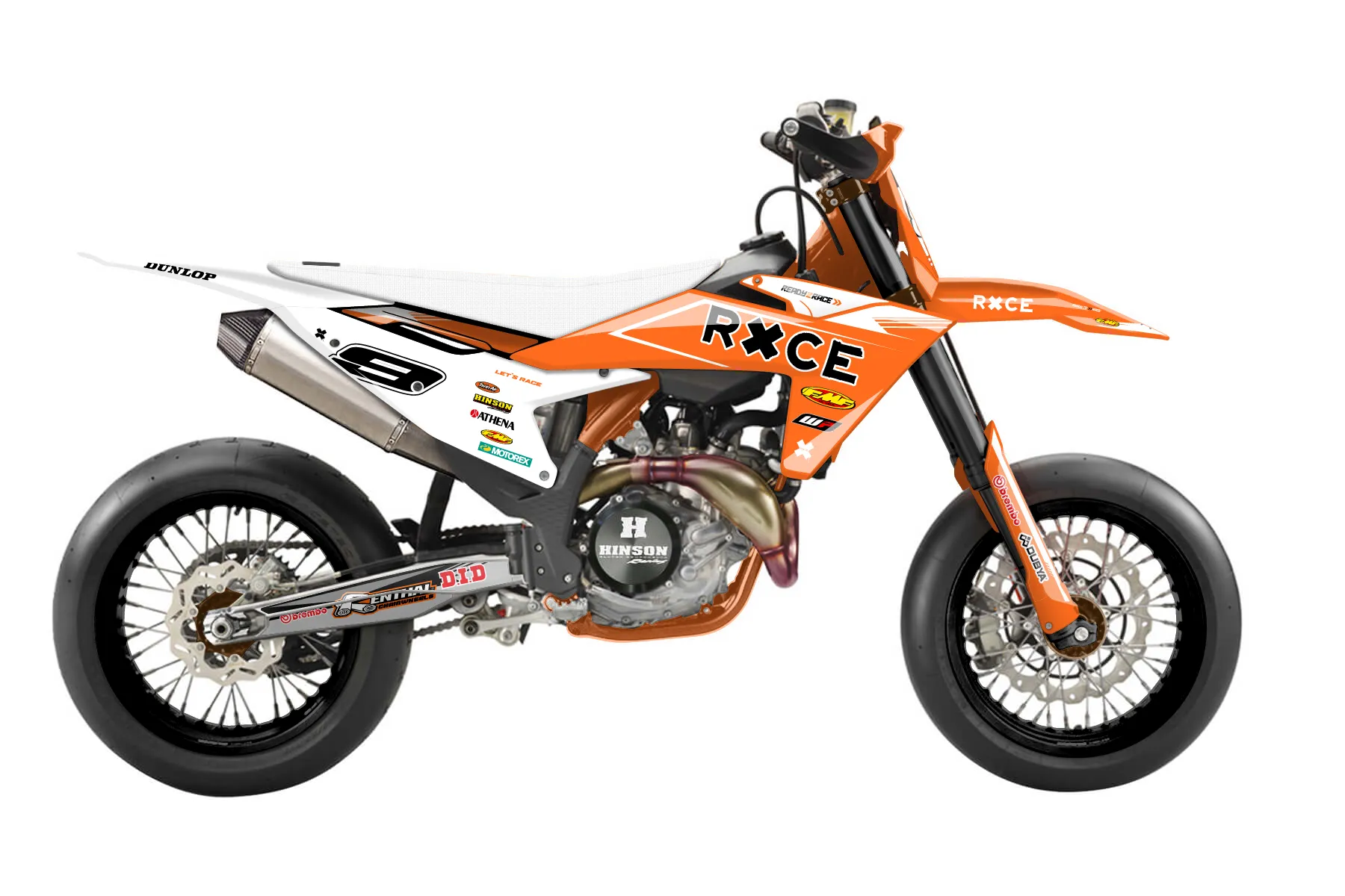 «Total» — готовый комплект графики серии Untucked для KTM Supermoto KTM SMR 450 2025. В комплекте: графика на бак и боковые облицовки, крылья (переднее и заднее), передний щиток, номерные таблички, защита вилки. Материал: ПВХ-винил 80 мкр с холодной ламинацией 300 мкр, общая толщина 380 мкр; покрытие глянцевое или матовое на выбор. Устойчив к UV-излучению, воде, бензину и мойке высокого давления. Клей акриловый на сольвентной основе — постоянный, для гибких пластиков. На простых поверхностях монтируется без нагрева; для сложных изгибов рекомендуем фен. Этот пресет можно заказать как есть или взять за основу в конструкторе: поменять цвета, добавить стартовый номер и свой бренд. Производство — 3–5 рабочих дней, доставка по России СДЭКом или Почтой, по СНГ — курьерскими службами.