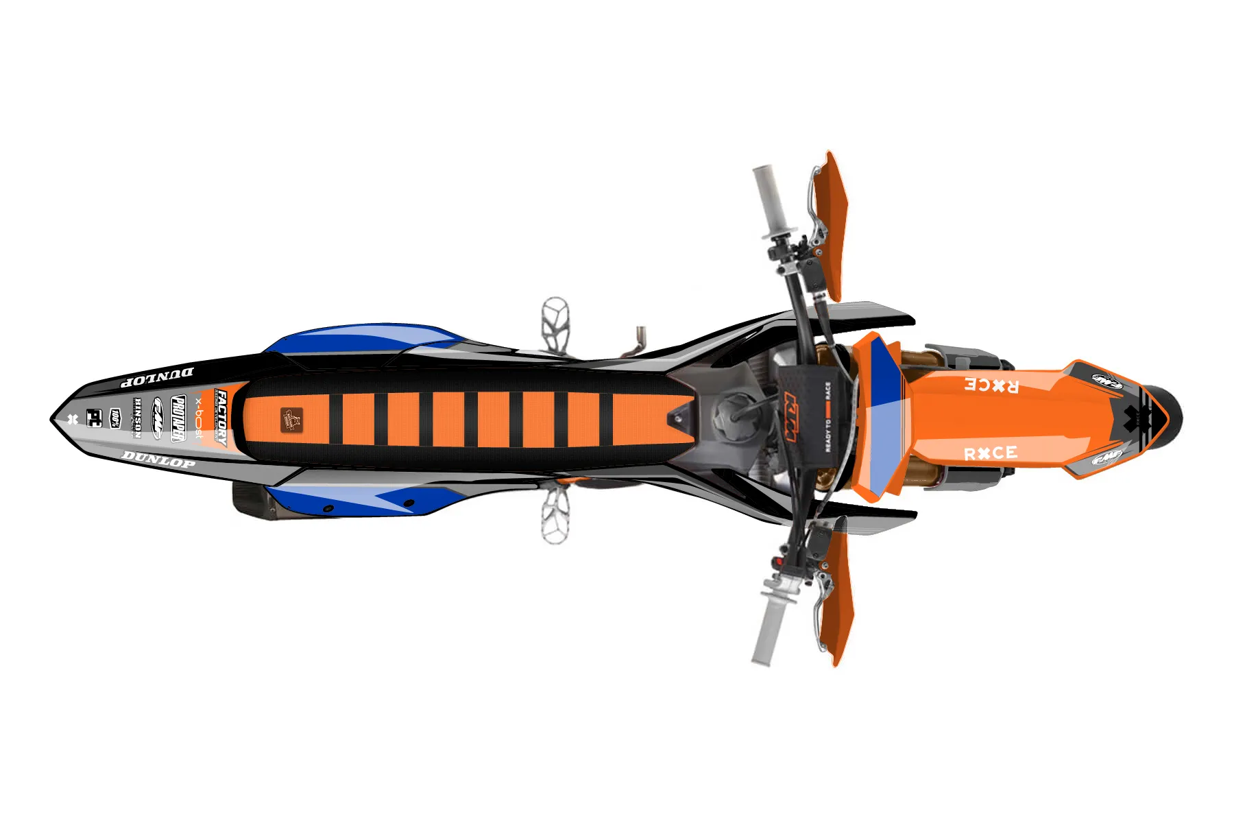 «Ultimate» — готовый комплект графики серии Untucked для KTM Supermoto KTM SMR 450 2025. В комплекте: графика на бак и боковые облицовки, крылья (переднее и заднее), передний щиток, номерные таблички, защита вилки. Материал: ПВХ-винил 80 мкр с холодной ламинацией 300 мкр, общая толщина 380 мкр; покрытие глянцевое или матовое на выбор. Устойчив к UV-излучению, воде, бензину и мойке высокого давления. Клей акриловый на сольвентной основе — постоянный, для гибких пластиков. На простых поверхностях монтируется без нагрева; для сложных изгибов рекомендуем фен. Этот пресет можно заказать как есть или взять за основу в конструкторе: поменять цвета, добавить стартовый номер и свой бренд. Производство — 3–5 рабочих дней, доставка по России СДЭКом или Почтой, по СНГ — курьерскими службами.