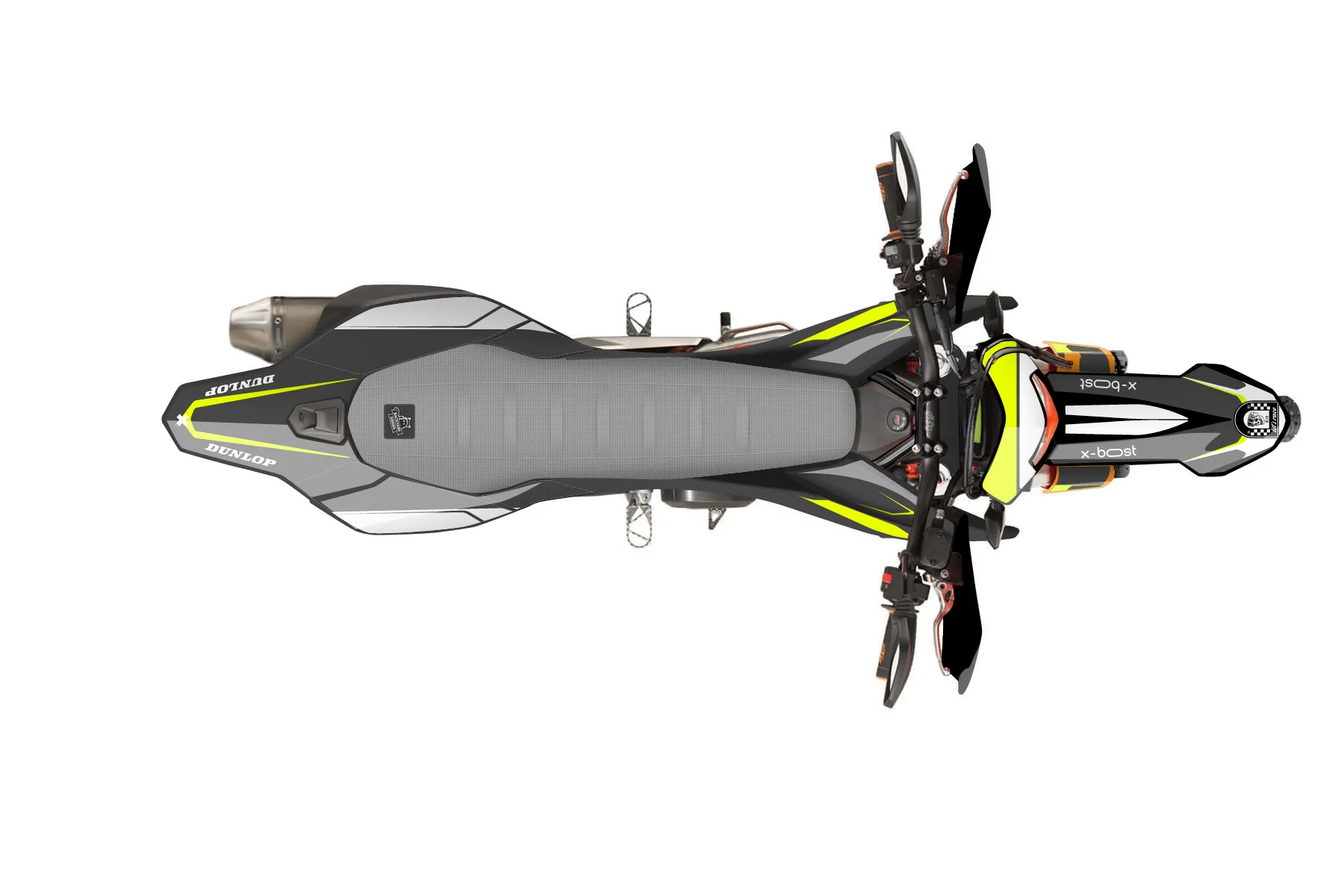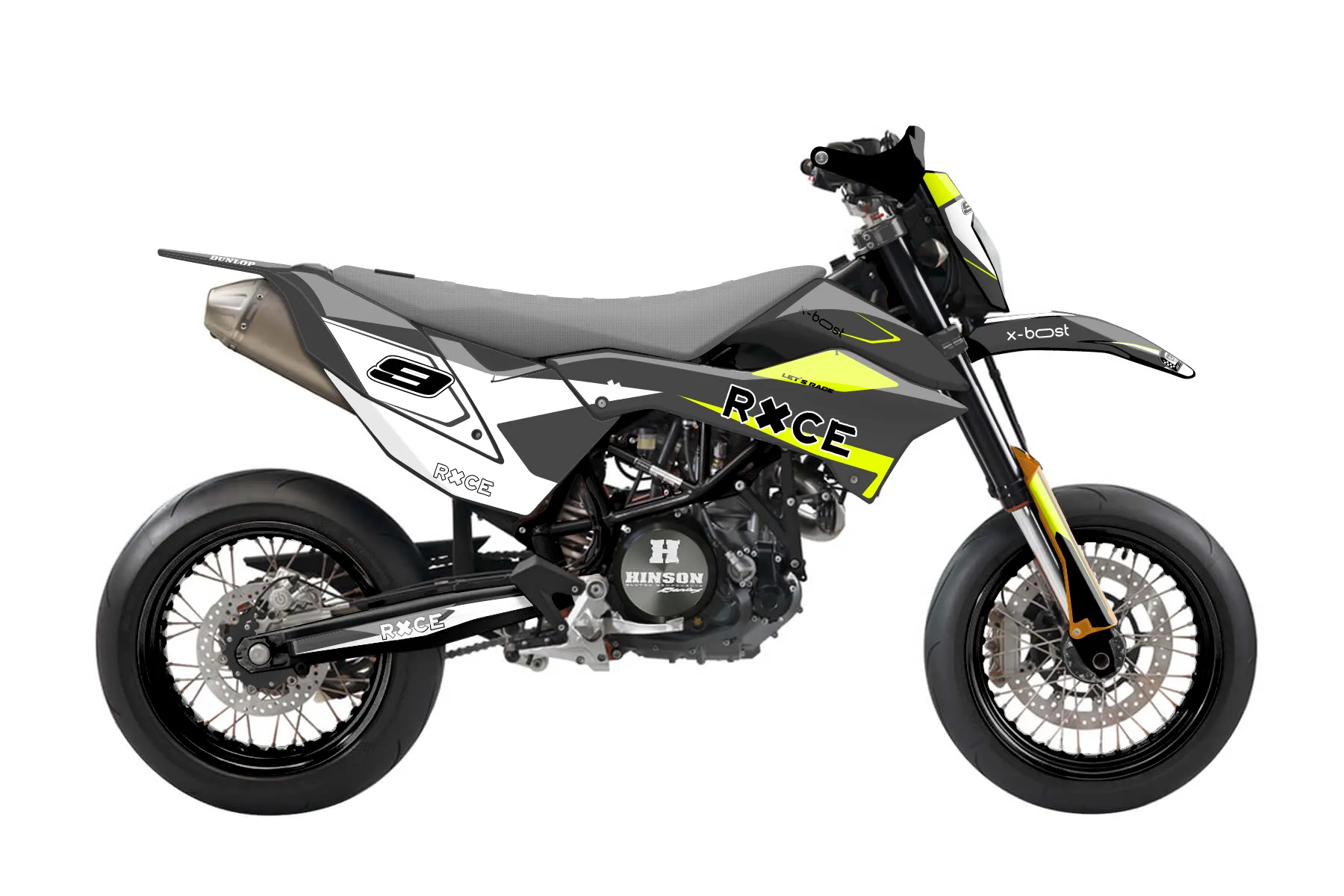 «Bright Neon» — готовый комплект графики серии Flow для KTM Street Graphic Kit KTM SMC-R 690 2012. В комплекте: графика на бак и боковые облицовки, крылья (переднее и заднее), передний щиток, номерные таблички, защита вилки. Материал: ПВХ-винил 80 мкр с холодной ламинацией 300 мкр, общая толщина 380 мкр; покрытие глянцевое или матовое на выбор. Устойчив к UV-излучению, воде, бензину и мойке высокого давления. Клей акриловый на сольвентной основе — постоянный, для гибких пластиков. На простых поверхностях монтируется без нагрева; для сложных изгибов рекомендуем фен. Этот пресет можно заказать как есть или взять за основу в конструкторе: поменять цвета, добавить стартовый номер и свой бренд. Производство — 3–5 рабочих дней, доставка по России СДЭКом или Почтой, по СНГ — курьерскими службами.