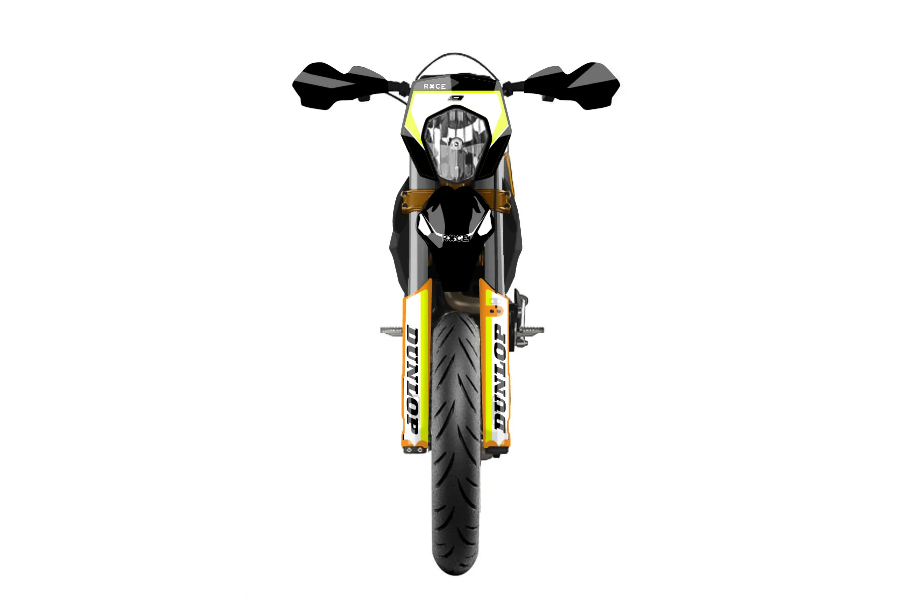 «Volt Neon» — готовый комплект графики серии Flow для KTM Street Graphic Kit KTM SMC-R 690 2012. В комплекте: графика на бак и боковые облицовки, крылья (переднее и заднее), передний щиток, номерные таблички, защита вилки. Материал: ПВХ-винил 80 мкр с холодной ламинацией 300 мкр, общая толщина 380 мкр; покрытие глянцевое или матовое на выбор. Устойчив к UV-излучению, воде, бензину и мойке высокого давления. Клей акриловый на сольвентной основе — постоянный, для гибких пластиков. На простых поверхностях монтируется без нагрева; для сложных изгибов рекомендуем фен. Этот пресет можно заказать как есть или взять за основу в конструкторе: поменять цвета, добавить стартовый номер и свой бренд. Производство — 3–5 рабочих дней, доставка по России СДЭКом или Почтой, по СНГ — курьерскими службами.