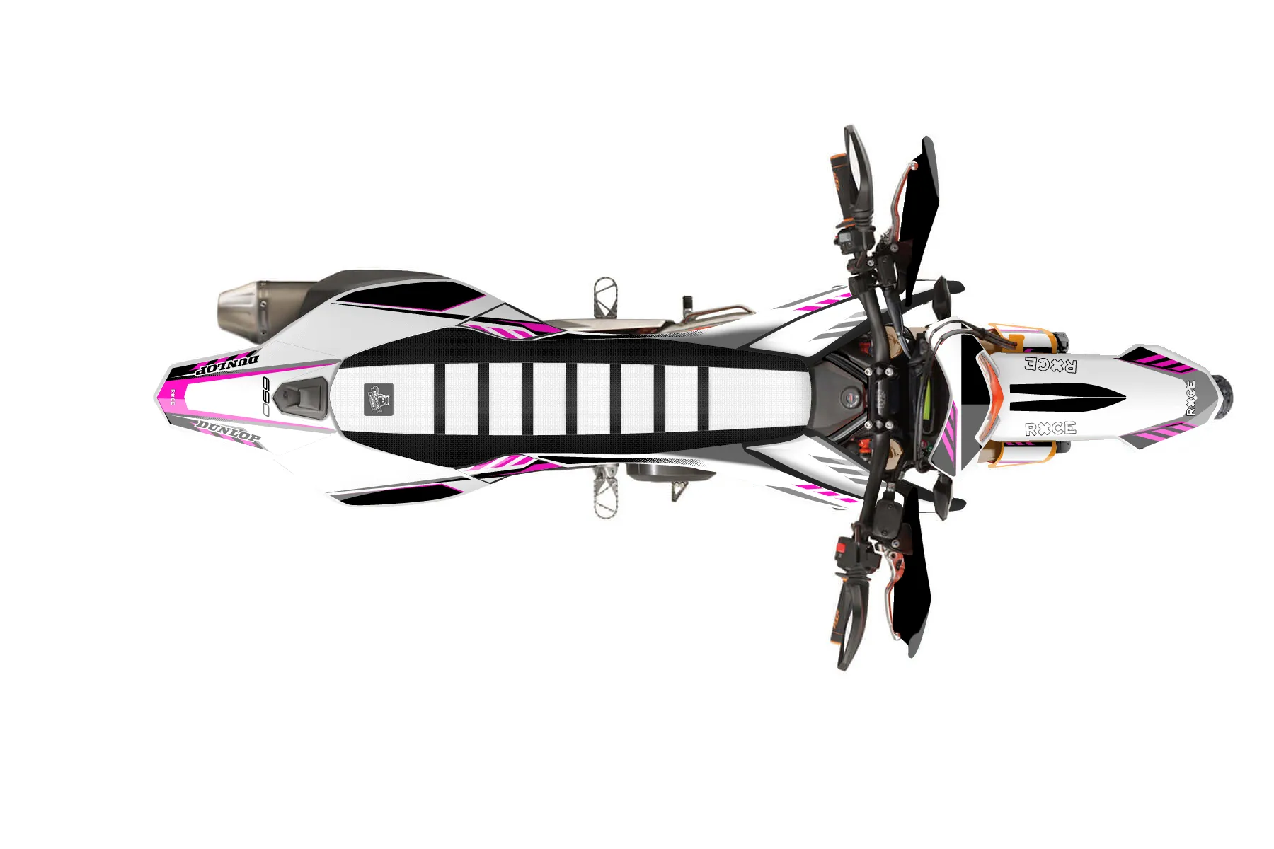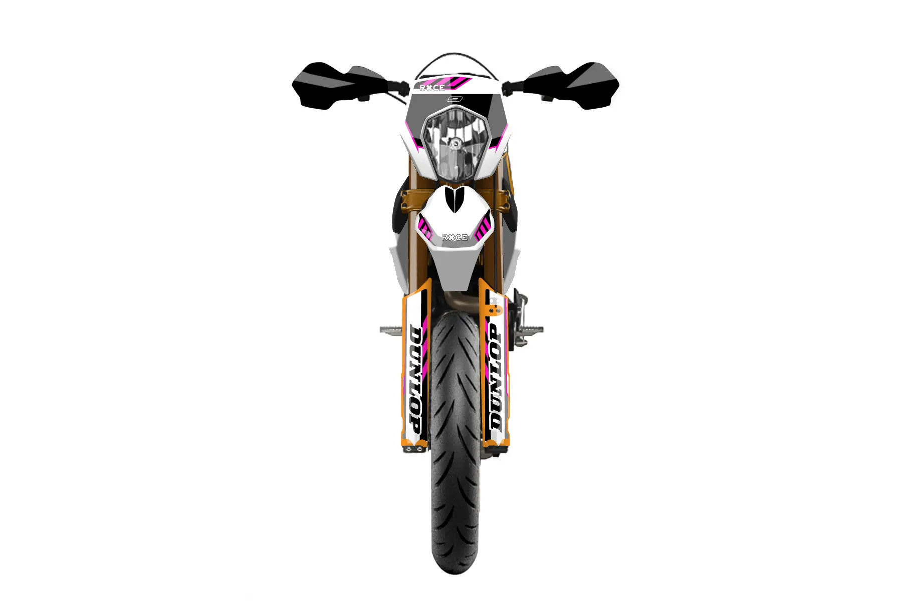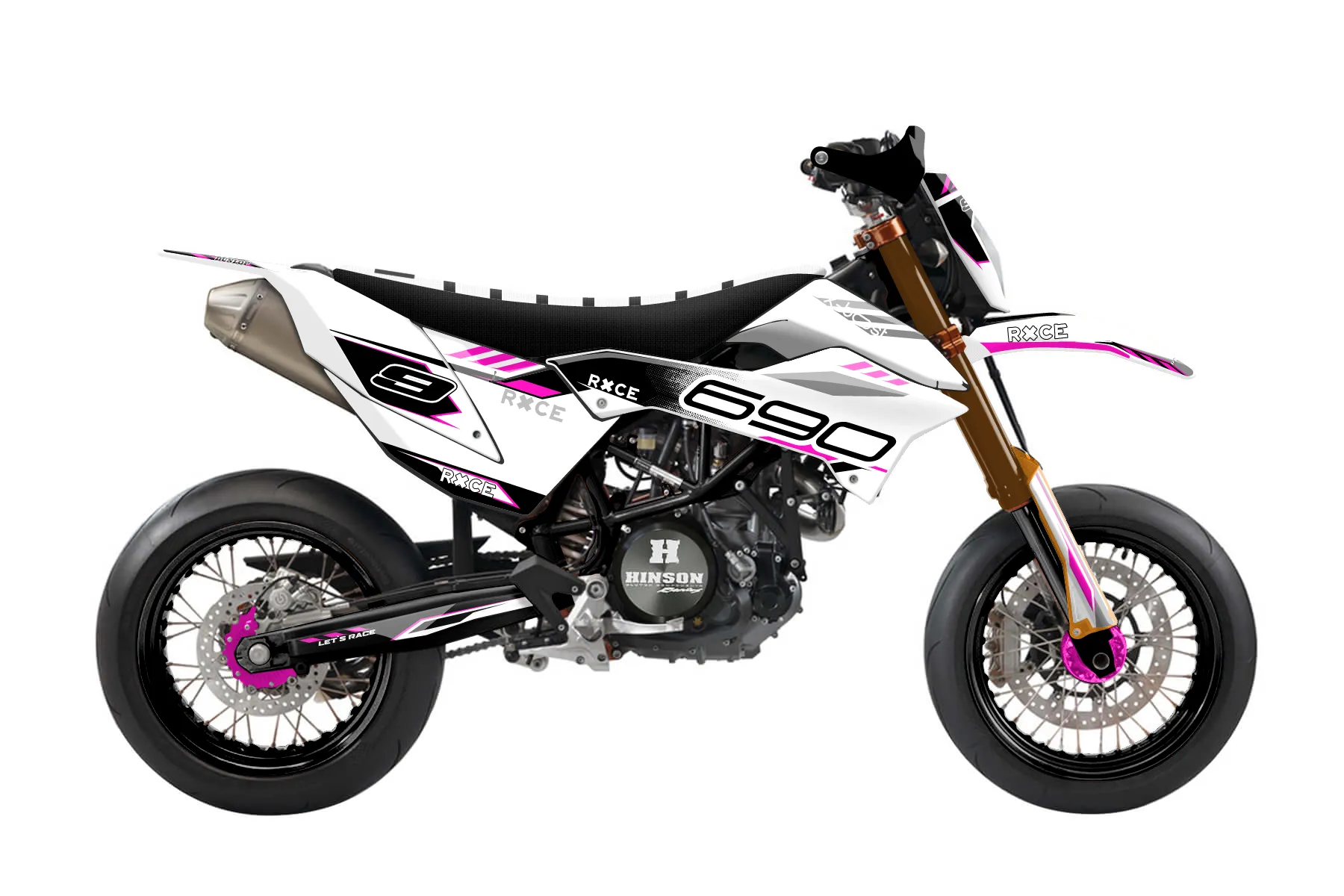 «Satisfied» — готовый комплект графики серии Maverick для KTM Street Graphic Kit KTM SMC-R 690 2012. В комплекте: графика на бак и боковые облицовки, крылья (переднее и заднее), передний щиток, номерные таблички, защита вилки. Материал: ПВХ-винил 80 мкр с холодной ламинацией 300 мкр, общая толщина 380 мкр; покрытие глянцевое или матовое на выбор. Устойчив к UV-излучению, воде, бензину и мойке высокого давления. Клей акриловый на сольвентной основе — постоянный, для гибких пластиков. На простых поверхностях монтируется без нагрева; для сложных изгибов рекомендуем фен. Этот пресет можно заказать как есть или взять за основу в конструкторе: поменять цвета, добавить стартовый номер и свой бренд. Производство — 3–5 рабочих дней, доставка по России СДЭКом или Почтой, по СНГ — курьерскими службами.