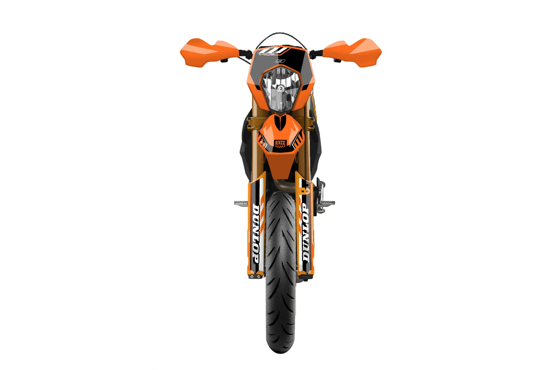 «Total» — готовый комплект графики серии Maverick для KTM Street Graphic Kit KTM SMC-R 690 2012. В комплекте: графика на бак и боковые облицовки, крылья (переднее и заднее), передний щиток, номерные таблички, защита вилки. Материал: ПВХ-винил 80 мкр с холодной ламинацией 300 мкр, общая толщина 380 мкр; покрытие глянцевое или матовое на выбор. Устойчив к UV-излучению, воде, бензину и мойке высокого давления. Клей акриловый на сольвентной основе — постоянный, для гибких пластиков. На простых поверхностях монтируется без нагрева; для сложных изгибов рекомендуем фен. Этот пресет можно заказать как есть или взять за основу в конструкторе: поменять цвета, добавить стартовый номер и свой бренд. Производство — 3–5 рабочих дней, доставка по России СДЭКом или Почтой, по СНГ — курьерскими службами.