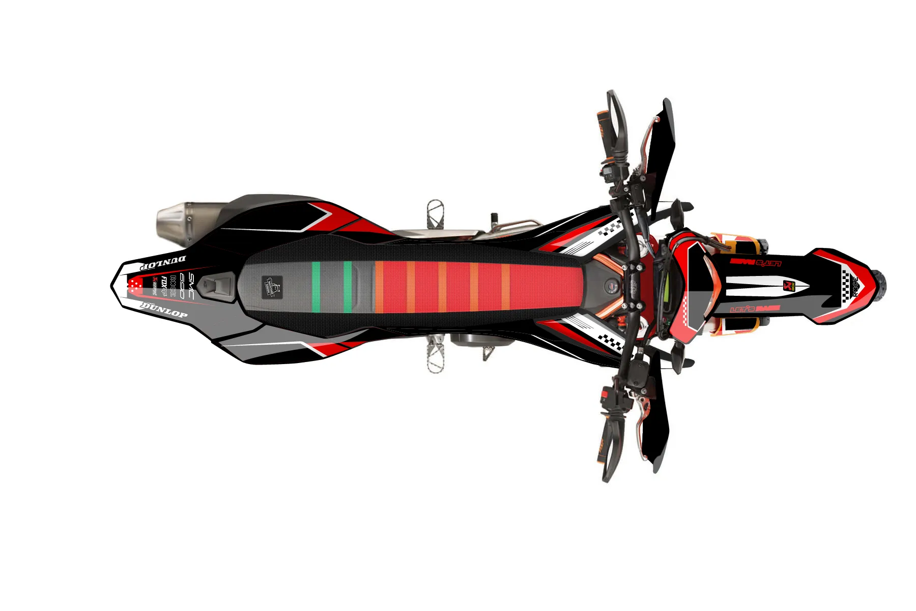 «Certain» — готовый комплект графики серии Staple для KTM Street Graphic Kit KTM SMC-R 690 2012. В комплекте: графика на бак и боковые облицовки, крылья (переднее и заднее), передний щиток, номерные таблички, защита вилки. Материал: ПВХ-винил 80 мкр с холодной ламинацией 300 мкр, общая толщина 380 мкр; покрытие глянцевое или матовое на выбор. Устойчив к UV-излучению, воде, бензину и мойке высокого давления. Клей акриловый на сольвентной основе — постоянный, для гибких пластиков. На простых поверхностях монтируется без нагрева; для сложных изгибов рекомендуем фен. Этот пресет можно заказать как есть или взять за основу в конструкторе: поменять цвета, добавить стартовый номер и свой бренд. Производство — 3–5 рабочих дней, доставка по России СДЭКом или Почтой, по СНГ — курьерскими службами.