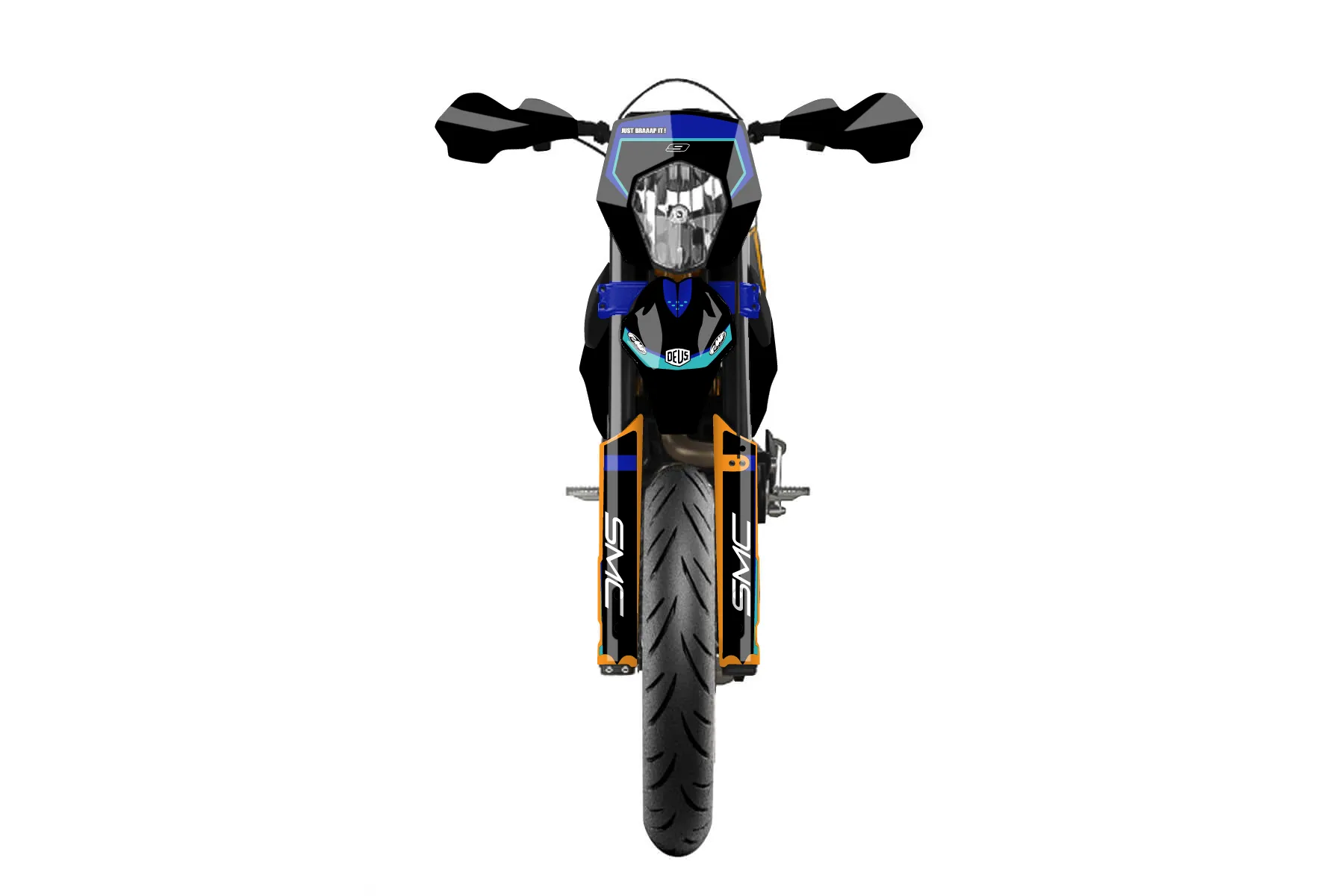 «Charge» — готовый комплект графики серии Staple для KTM Street Graphic Kit KTM SMC-R 690 2012. В комплекте: графика на бак и боковые облицовки, крылья (переднее и заднее), передний щиток, номерные таблички, защита вилки. Материал: ПВХ-винил 80 мкр с холодной ламинацией 300 мкр, общая толщина 380 мкр; покрытие глянцевое или матовое на выбор. Устойчив к UV-излучению, воде, бензину и мойке высокого давления. Клей акриловый на сольвентной основе — постоянный, для гибких пластиков. На простых поверхностях монтируется без нагрева; для сложных изгибов рекомендуем фен. Этот пресет можно заказать как есть или взять за основу в конструкторе: поменять цвета, добавить стартовый номер и свой бренд. Производство — 3–5 рабочих дней, доставка по России СДЭКом или Почтой, по СНГ — курьерскими службами.