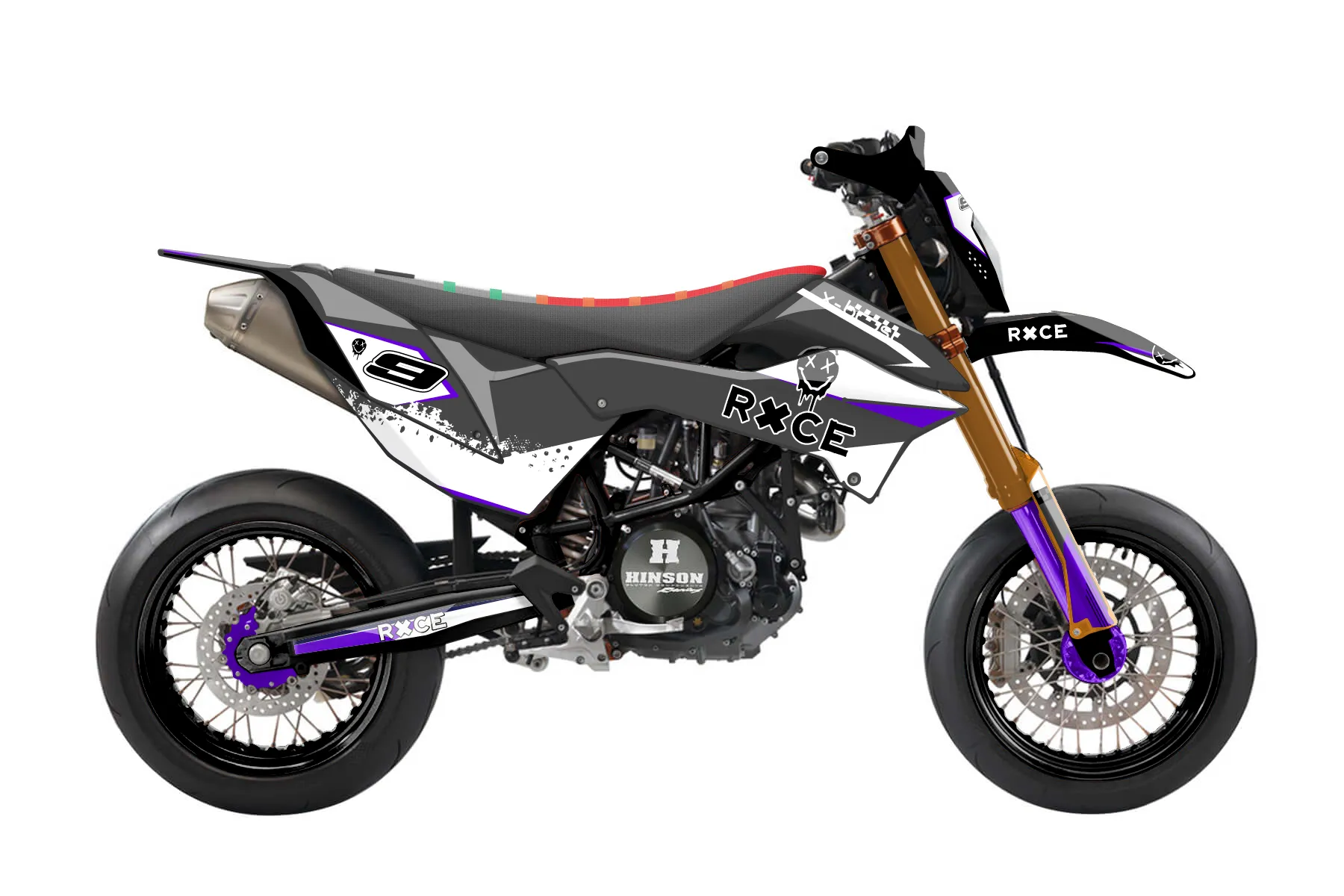 «Cold» — готовый комплект графики серии Staple для KTM Street Graphic Kit KTM SMC-R 690 2012. В комплекте: графика на бак и боковые облицовки, крылья (переднее и заднее), передний щиток, номерные таблички, защита вилки. Материал: ПВХ-винил 80 мкр с холодной ламинацией 300 мкр, общая толщина 380 мкр; покрытие глянцевое или матовое на выбор. Устойчив к UV-излучению, воде, бензину и мойке высокого давления. Клей акриловый на сольвентной основе — постоянный, для гибких пластиков. На простых поверхностях монтируется без нагрева; для сложных изгибов рекомендуем фен. Этот пресет можно заказать как есть или взять за основу в конструкторе: поменять цвета, добавить стартовый номер и свой бренд. Производство — 3–5 рабочих дней, доставка по России СДЭКом или Почтой, по СНГ — курьерскими службами.