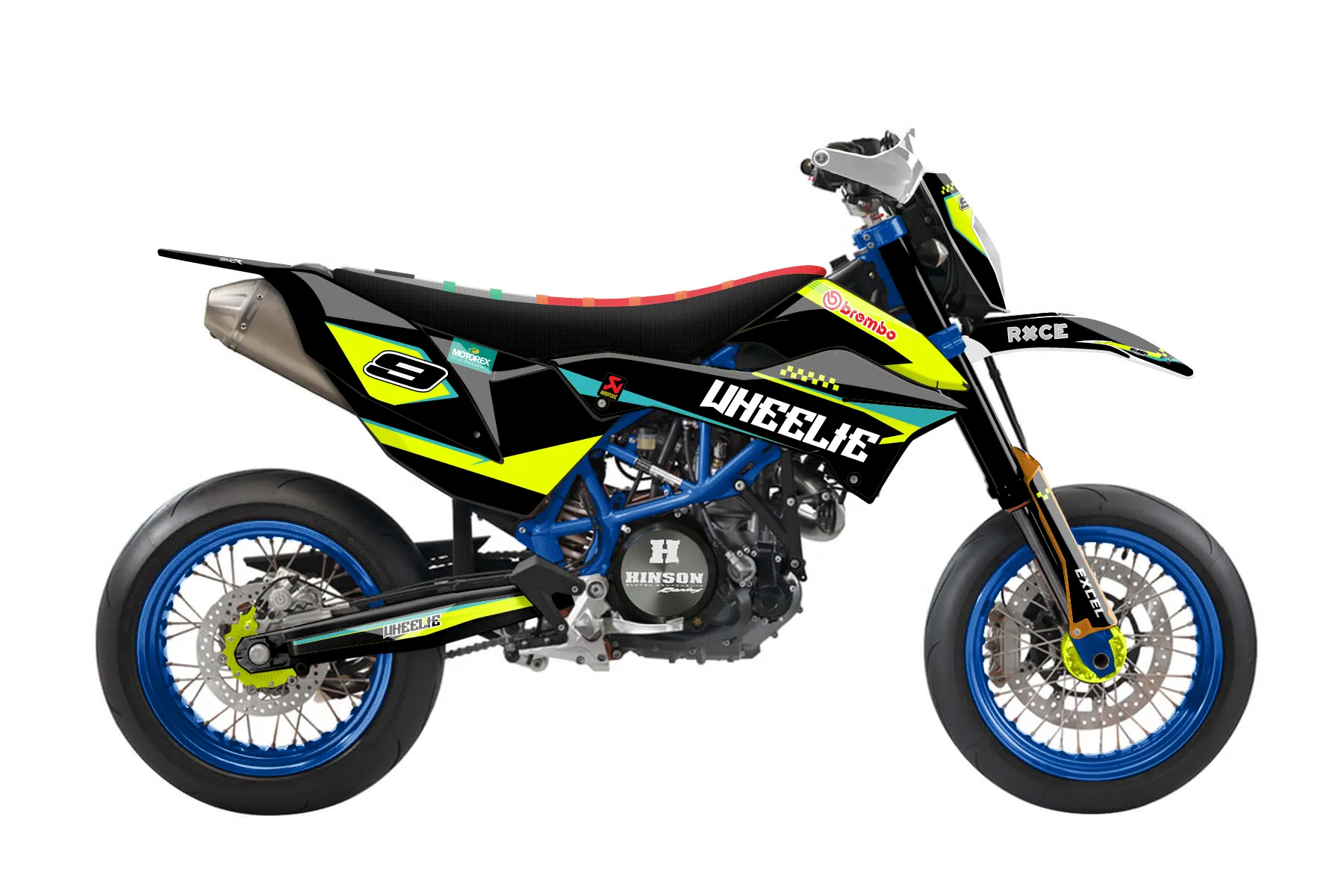 «CustomDesign» — готовый комплект графики серии Staple для KTM Street Graphic Kit KTM SMC-R 690 2012. В комплекте: графика на бак и боковые облицовки, крылья (переднее и заднее), передний щиток, номерные таблички, защита вилки. Материал: ПВХ-винил 80 мкр с холодной ламинацией 300 мкр, общая толщина 380 мкр; покрытие глянцевое или матовое на выбор. Устойчив к UV-излучению, воде, бензину и мойке высокого давления. Клей акриловый на сольвентной основе — постоянный, для гибких пластиков. На простых поверхностях монтируется без нагрева; для сложных изгибов рекомендуем фен. Этот пресет можно заказать как есть или взять за основу в конструкторе: поменять цвета, добавить стартовый номер и свой бренд. Производство — 3–5 рабочих дней, доставка по России СДЭКом или Почтой, по СНГ — курьерскими службами.