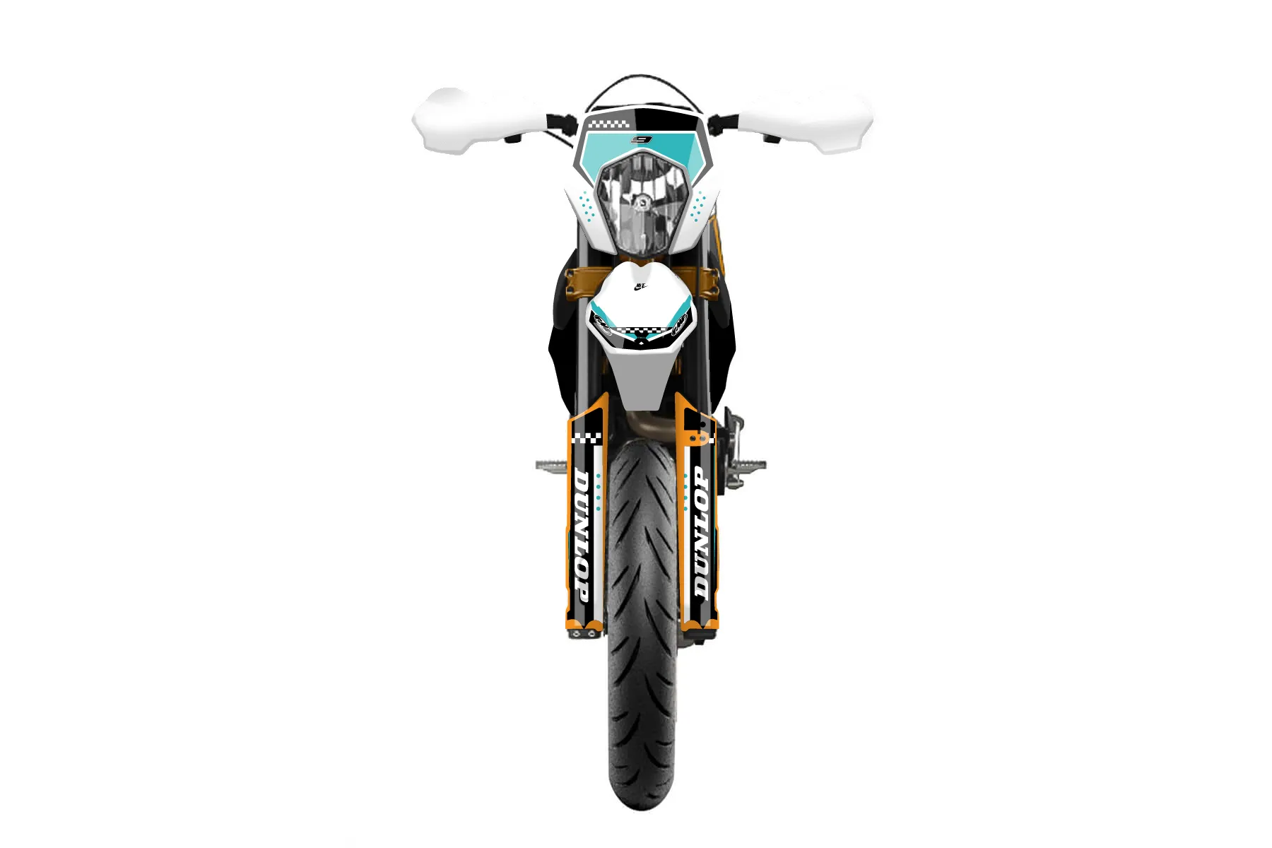 «Flying» — готовый комплект графики серии Staple для KTM Street Graphic Kit KTM SMC-R 690 2012. В комплекте: графика на бак и боковые облицовки, крылья (переднее и заднее), передний щиток, номерные таблички, защита вилки. Материал: ПВХ-винил 80 мкр с холодной ламинацией 300 мкр, общая толщина 380 мкр; покрытие глянцевое или матовое на выбор. Устойчив к UV-излучению, воде, бензину и мойке высокого давления. Клей акриловый на сольвентной основе — постоянный, для гибких пластиков. На простых поверхностях монтируется без нагрева; для сложных изгибов рекомендуем фен. Этот пресет можно заказать как есть или взять за основу в конструкторе: поменять цвета, добавить стартовый номер и свой бренд. Производство — 3–5 рабочих дней, доставка по России СДЭКом или Почтой, по СНГ — курьерскими службами.
