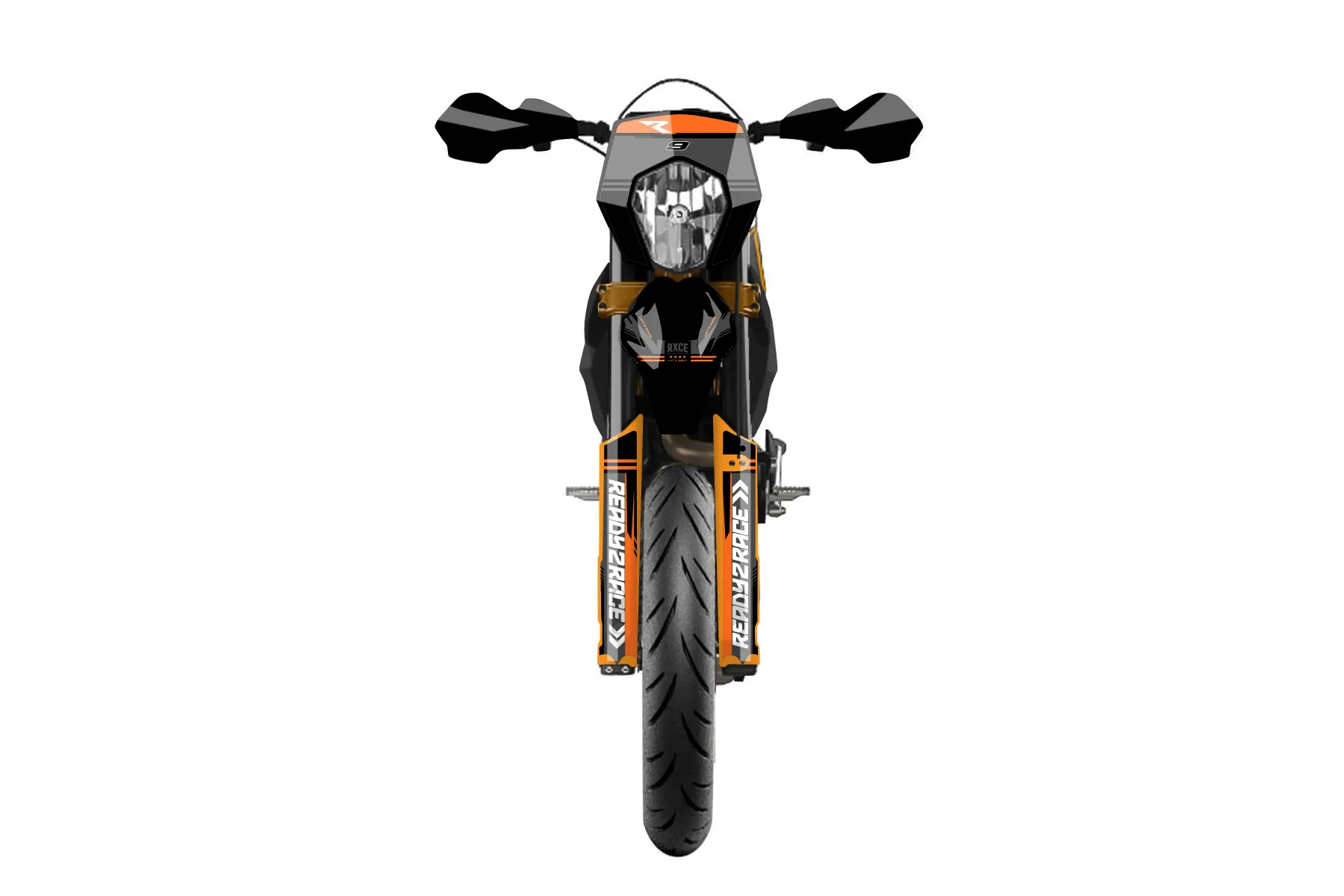 «Dynamic» — готовый комплект графики серии Untucked для KTM Street Graphic Kit KTM SMC-R 690 2012. В комплекте: графика на бак и боковые облицовки, крылья (переднее и заднее), передний щиток, номерные таблички, защита вилки. Материал: ПВХ-винил 80 мкр с холодной ламинацией 300 мкр, общая толщина 380 мкр; покрытие глянцевое или матовое на выбор. Устойчив к UV-излучению, воде, бензину и мойке высокого давления. Клей акриловый на сольвентной основе — постоянный, для гибких пластиков. На простых поверхностях монтируется без нагрева; для сложных изгибов рекомендуем фен. Этот пресет можно заказать как есть или взять за основу в конструкторе: поменять цвета, добавить стартовый номер и свой бренд. Производство — 3–5 рабочих дней, доставка по России СДЭКом или Почтой, по СНГ — курьерскими службами.