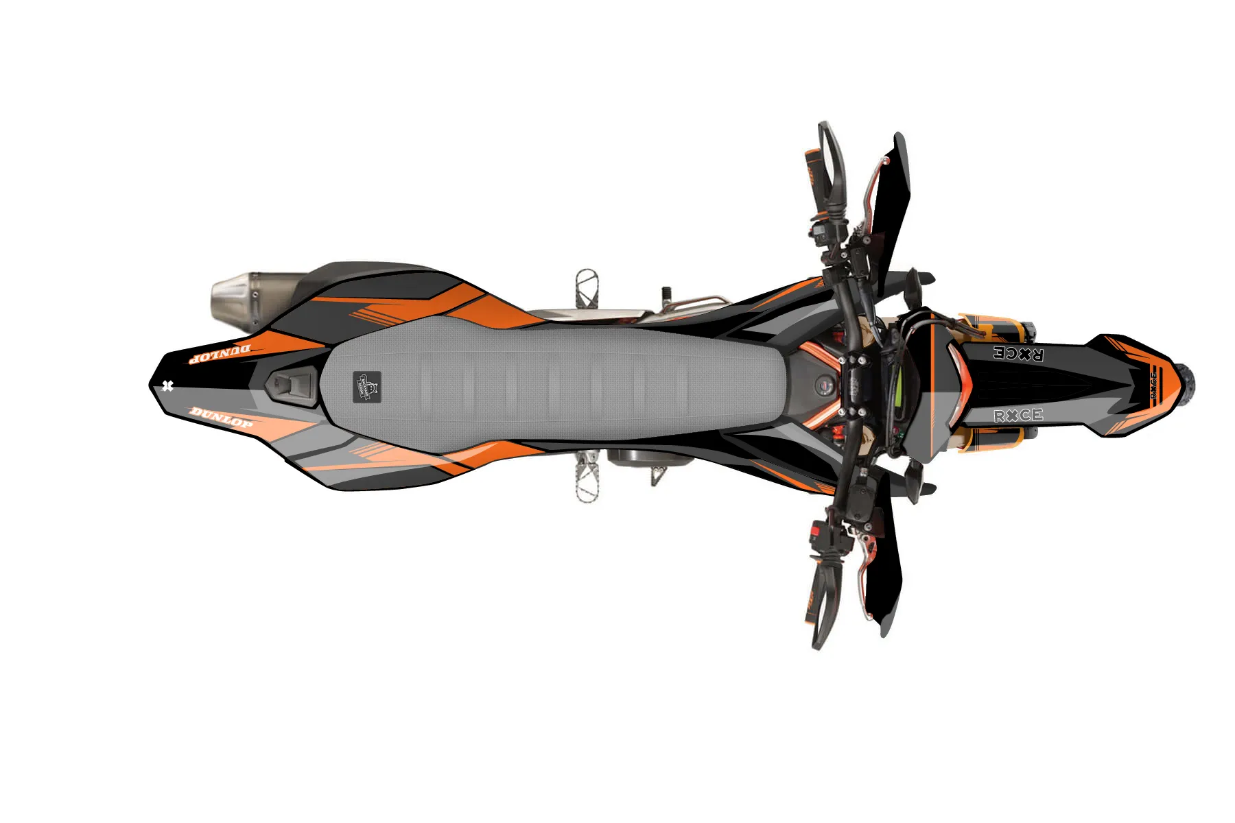 «Speedy» — готовый комплект графики серии Untucked для KTM Street Graphic Kit KTM SMC-R 690 2012. В комплекте: графика на бак и боковые облицовки, крылья (переднее и заднее), передний щиток, номерные таблички, защита вилки. Материал: ПВХ-винил 80 мкр с холодной ламинацией 300 мкр, общая толщина 380 мкр; покрытие глянцевое или матовое на выбор. Устойчив к UV-излучению, воде, бензину и мойке высокого давления. Клей акриловый на сольвентной основе — постоянный, для гибких пластиков. На простых поверхностях монтируется без нагрева; для сложных изгибов рекомендуем фен. Этот пресет можно заказать как есть или взять за основу в конструкторе: поменять цвета, добавить стартовый номер и свой бренд. Производство — 3–5 рабочих дней, доставка по России СДЭКом или Почтой, по СНГ — курьерскими службами.