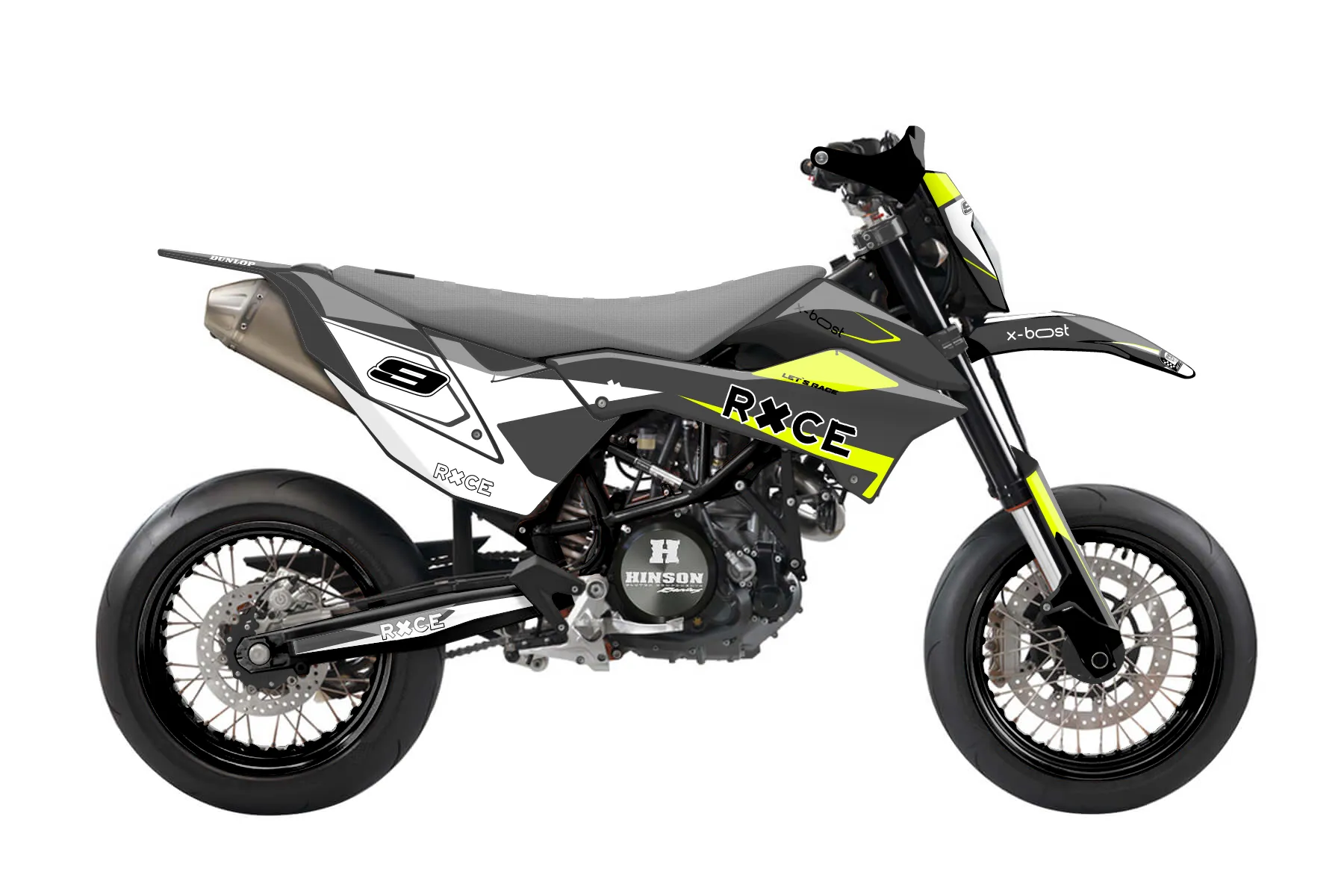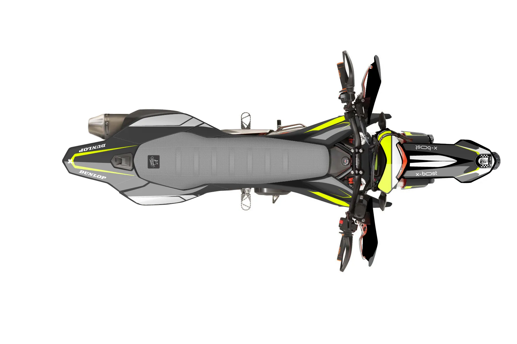 «Bright Neon» — готовый комплект графики серии Flow для KTM Street Graphic Kit KTM SMC-R 690 2014. В комплекте: графика на бак и боковые облицовки, крылья (переднее и заднее), передний щиток, номерные таблички, защита вилки. Материал: ПВХ-винил 80 мкр с холодной ламинацией 300 мкр, общая толщина 380 мкр; покрытие глянцевое или матовое на выбор. Устойчив к UV-излучению, воде, бензину и мойке высокого давления. Клей акриловый на сольвентной основе — постоянный, для гибких пластиков. На простых поверхностях монтируется без нагрева; для сложных изгибов рекомендуем фен. Этот пресет можно заказать как есть или взять за основу в конструкторе: поменять цвета, добавить стартовый номер и свой бренд. Производство — 3–5 рабочих дней, доставка по России СДЭКом или Почтой, по СНГ — курьерскими службами.