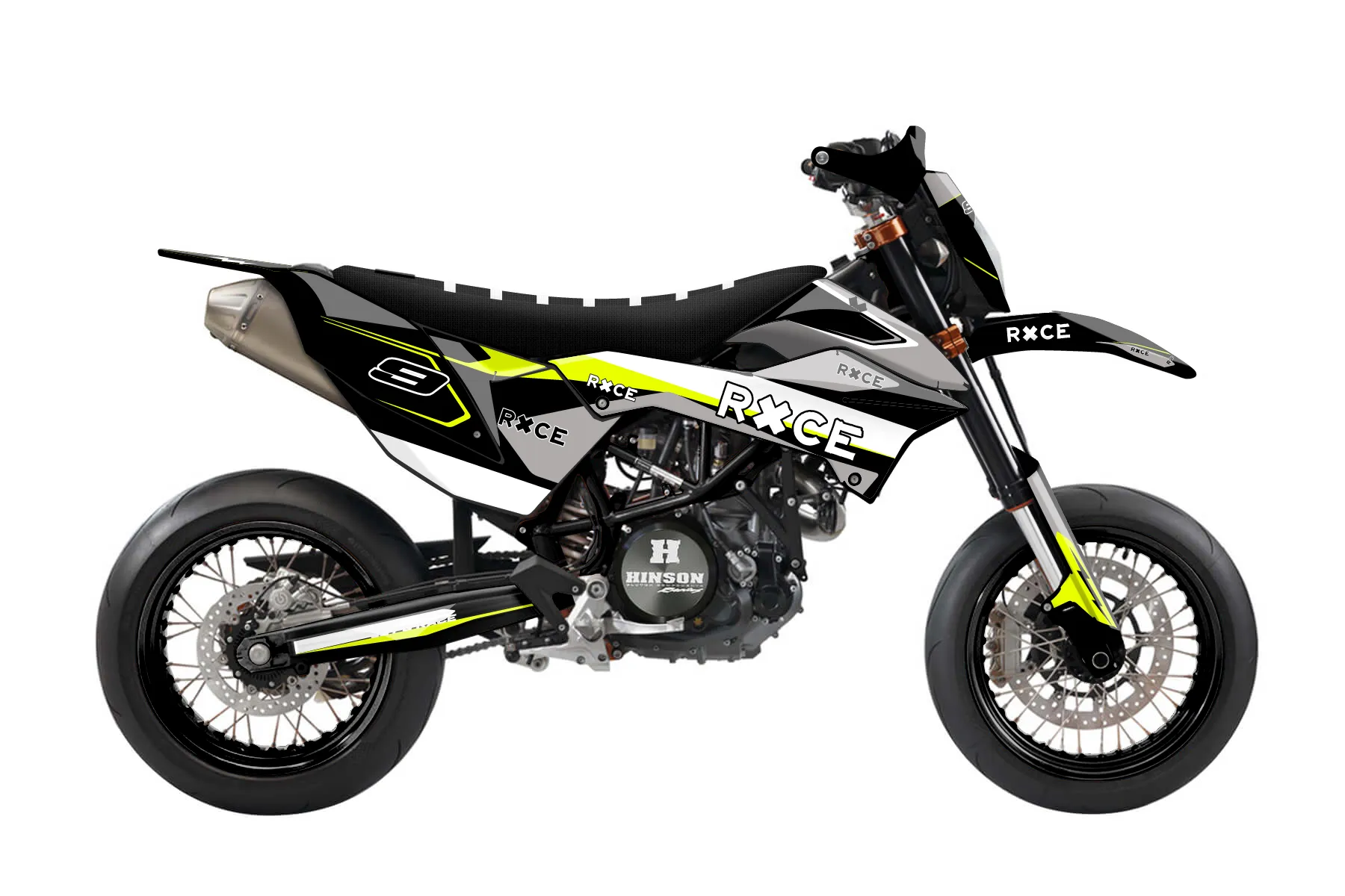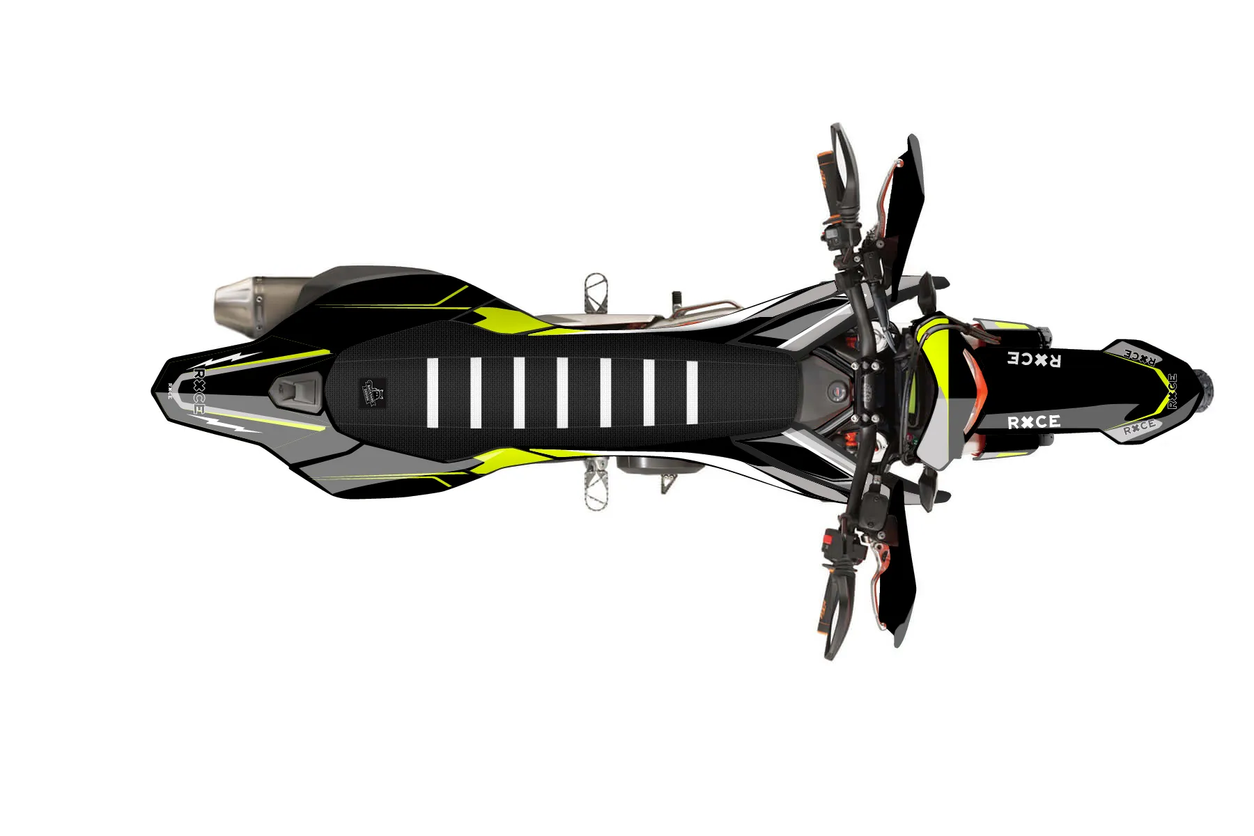 «Warp Neon» — готовый комплект графики серии Flow для KTM Street Graphic Kit KTM SMC-R 690 2014. В комплекте: графика на бак и боковые облицовки, крылья (переднее и заднее), передний щиток, номерные таблички, защита вилки. Материал: ПВХ-винил 80 мкр с холодной ламинацией 300 мкр, общая толщина 380 мкр; покрытие глянцевое или матовое на выбор. Устойчив к UV-излучению, воде, бензину и мойке высокого давления. Клей акриловый на сольвентной основе — постоянный, для гибких пластиков. На простых поверхностях монтируется без нагрева; для сложных изгибов рекомендуем фен. Этот пресет можно заказать как есть или взять за основу в конструкторе: поменять цвета, добавить стартовый номер и свой бренд. Производство — 3–5 рабочих дней, доставка по России СДЭКом или Почтой, по СНГ — курьерскими службами.