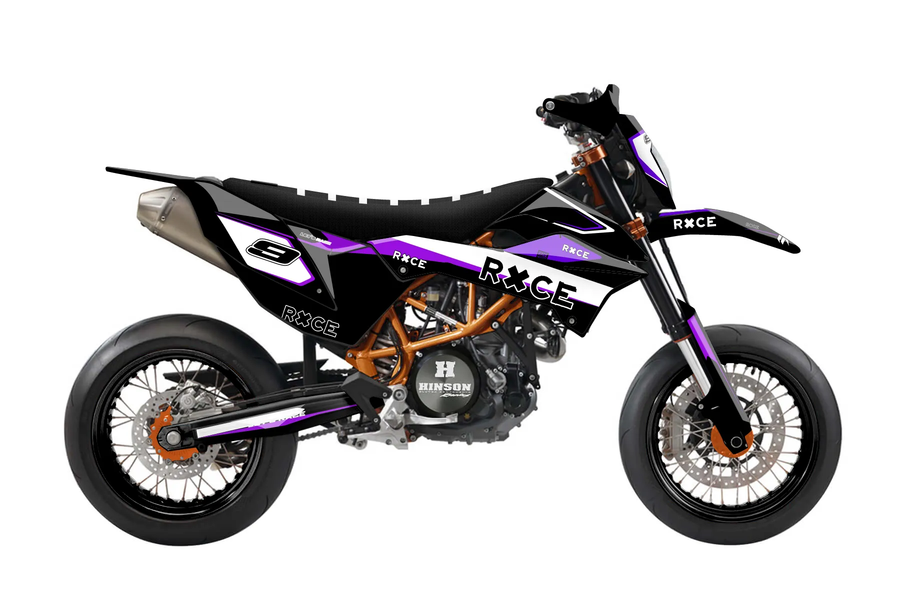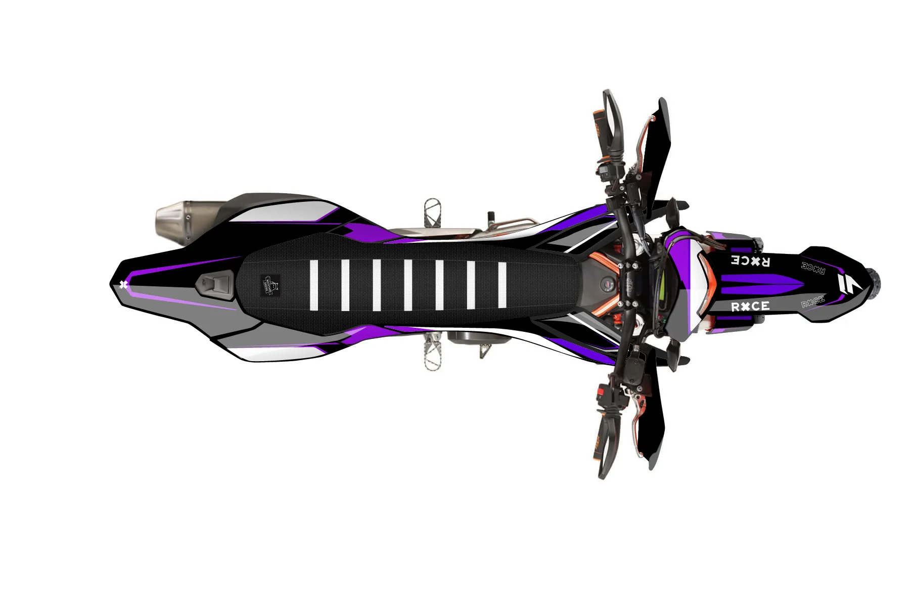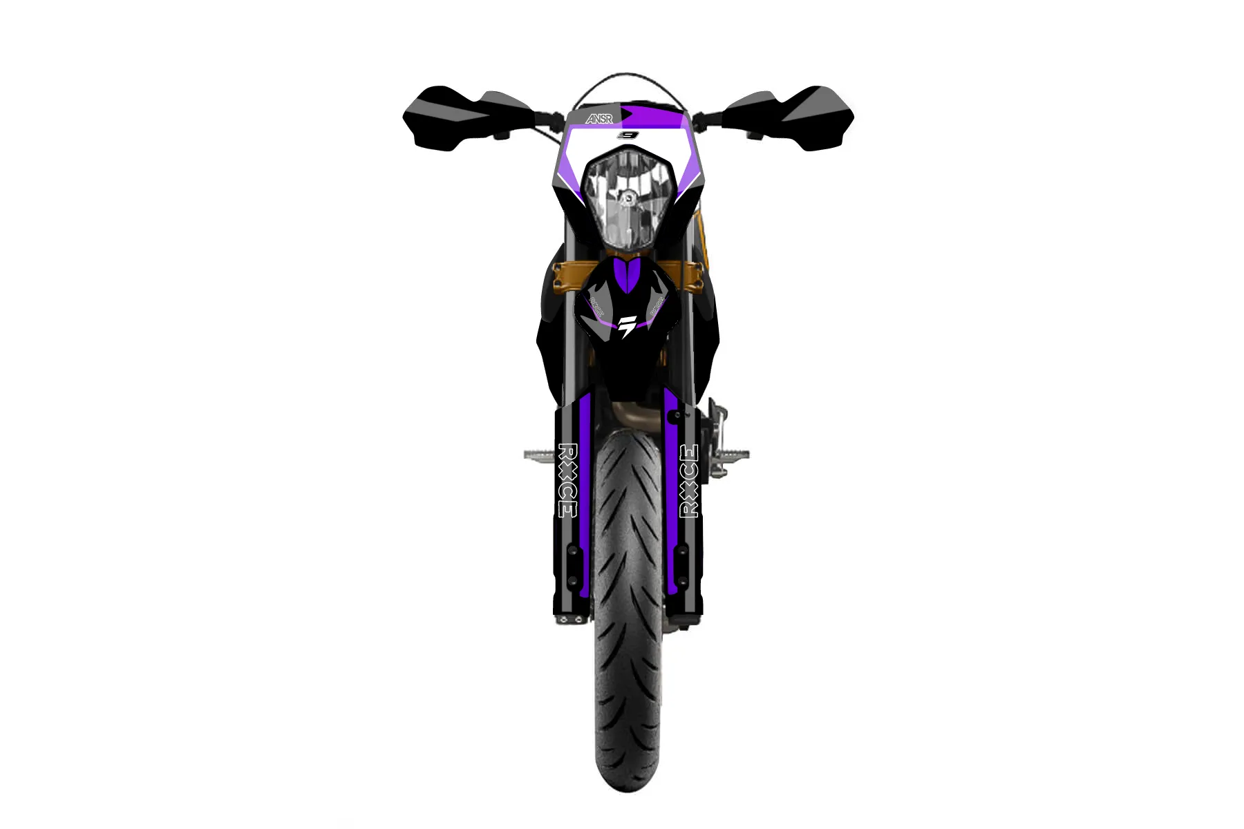 «Wrapper» — готовый комплект графики серии Flow для KTM Street Graphic Kit KTM SMC-R 690 2014. В комплекте: графика на бак и боковые облицовки, крылья (переднее и заднее), передний щиток, номерные таблички, защита вилки. Материал: ПВХ-винил 80 мкр с холодной ламинацией 300 мкр, общая толщина 380 мкр; покрытие глянцевое или матовое на выбор. Устойчив к UV-излучению, воде, бензину и мойке высокого давления. Клей акриловый на сольвентной основе — постоянный, для гибких пластиков. На простых поверхностях монтируется без нагрева; для сложных изгибов рекомендуем фен. Этот пресет можно заказать как есть или взять за основу в конструкторе: поменять цвета, добавить стартовый номер и свой бренд. Производство — 3–5 рабочих дней, доставка по России СДЭКом или Почтой, по СНГ — курьерскими службами.