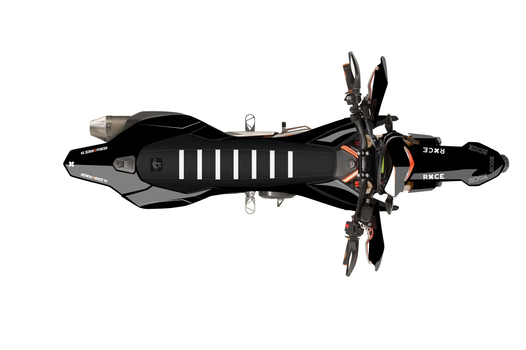 «Express» — готовый комплект графики серии Maverick для KTM Street Graphic Kit KTM SMC-R 690 2014. В комплекте: графика на бак и боковые облицовки, крылья (переднее и заднее), передний щиток, номерные таблички, защита вилки. Материал: ПВХ-винил 80 мкр с холодной ламинацией 300 мкр, общая толщина 380 мкр; покрытие глянцевое или матовое на выбор. Устойчив к UV-излучению, воде, бензину и мойке высокого давления. Клей акриловый на сольвентной основе — постоянный, для гибких пластиков. На простых поверхностях монтируется без нагрева; для сложных изгибов рекомендуем фен. Этот пресет можно заказать как есть или взять за основу в конструкторе: поменять цвета, добавить стартовый номер и свой бренд. Производство — 3–5 рабочих дней, доставка по России СДЭКом или Почтой, по СНГ — курьерскими службами.