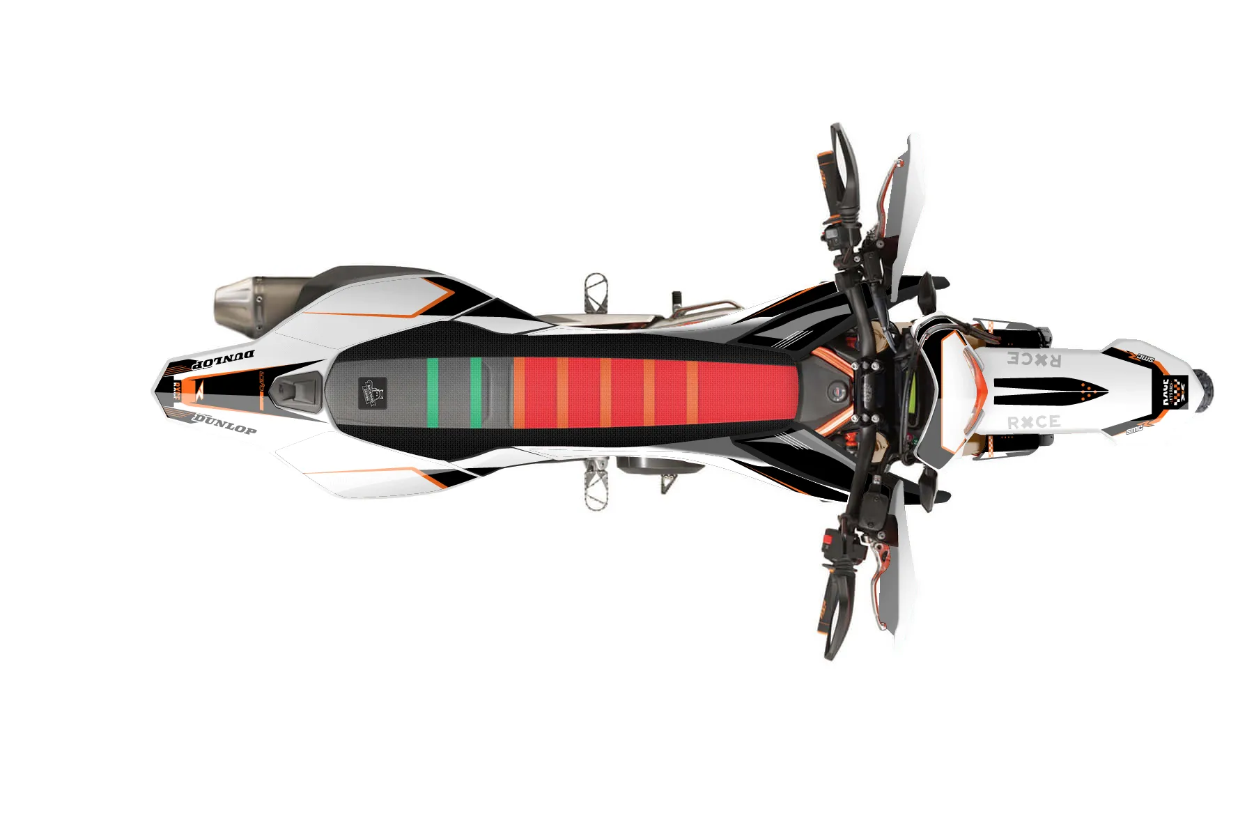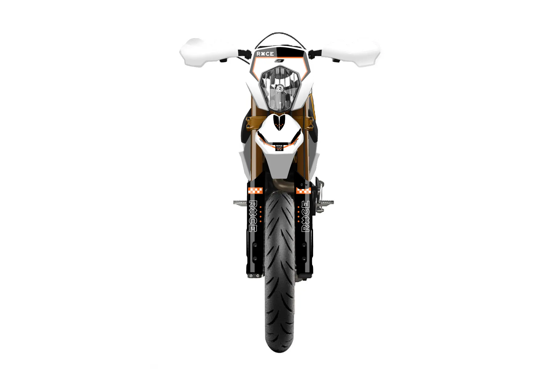 «Concrete» — готовый комплект графики серии Staple для KTM Street Graphic Kit KTM SMC-R 690 2014. В комплекте: графика на бак и боковые облицовки, крылья (переднее и заднее), передний щиток, номерные таблички, защита вилки. Материал: ПВХ-винил 80 мкр с холодной ламинацией 300 мкр, общая толщина 380 мкр; покрытие глянцевое или матовое на выбор. Устойчив к UV-излучению, воде, бензину и мойке высокого давления. Клей акриловый на сольвентной основе — постоянный, для гибких пластиков. На простых поверхностях монтируется без нагрева; для сложных изгибов рекомендуем фен. Этот пресет можно заказать как есть или взять за основу в конструкторе: поменять цвета, добавить стартовый номер и свой бренд. Производство — 3–5 рабочих дней, доставка по России СДЭКом или Почтой, по СНГ — курьерскими службами.
