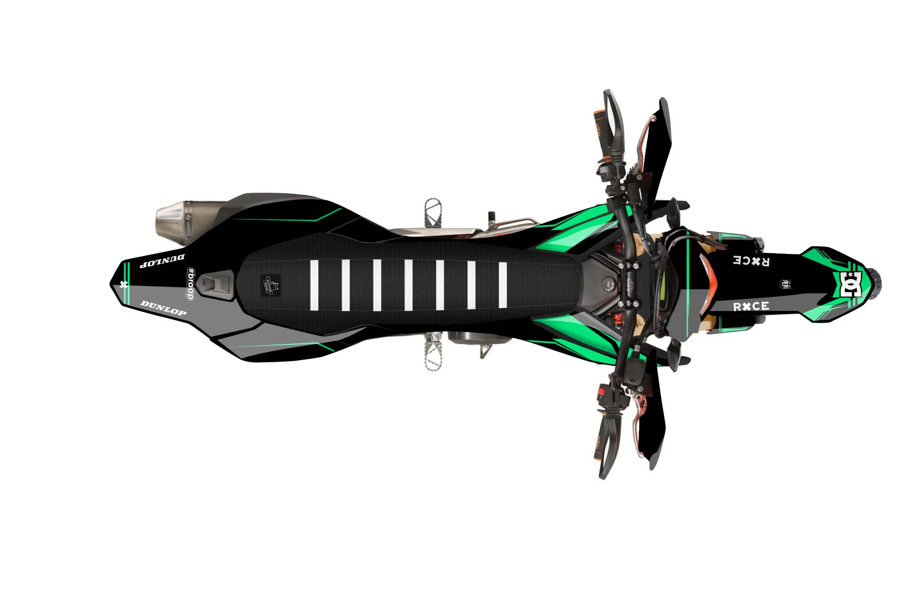 «Scoop» — готовый комплект графики серии Untucked для KTM Street Graphic Kit KTM SMC-R 690 2014. В комплекте: графика на бак и боковые облицовки, крылья (переднее и заднее), передний щиток, номерные таблички, защита вилки. Материал: ПВХ-винил 80 мкр с холодной ламинацией 300 мкр, общая толщина 380 мкр; покрытие глянцевое или матовое на выбор. Устойчив к UV-излучению, воде, бензину и мойке высокого давления. Клей акриловый на сольвентной основе — постоянный, для гибких пластиков. На простых поверхностях монтируется без нагрева; для сложных изгибов рекомендуем фен. Этот пресет можно заказать как есть или взять за основу в конструкторе: поменять цвета, добавить стартовый номер и свой бренд. Производство — 3–5 рабочих дней, доставка по России СДЭКом или Почтой, по СНГ — курьерскими службами.