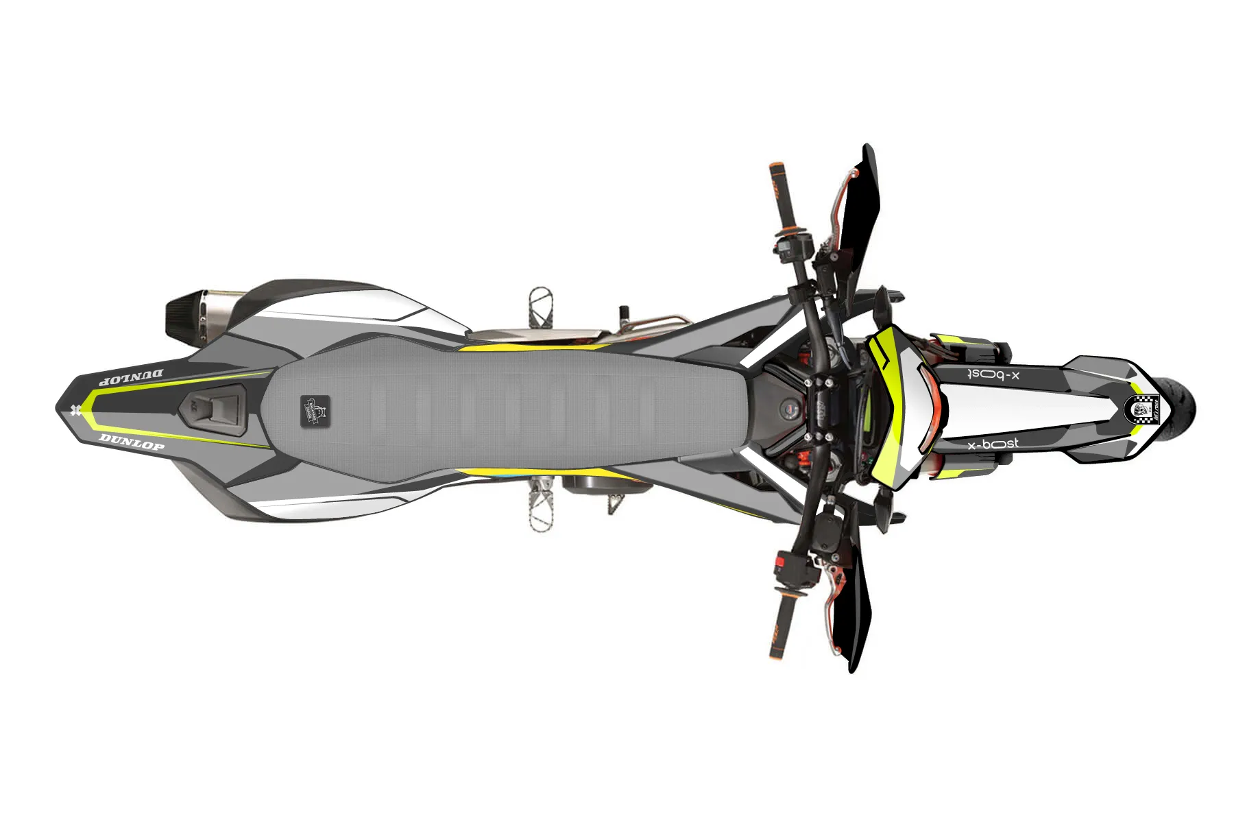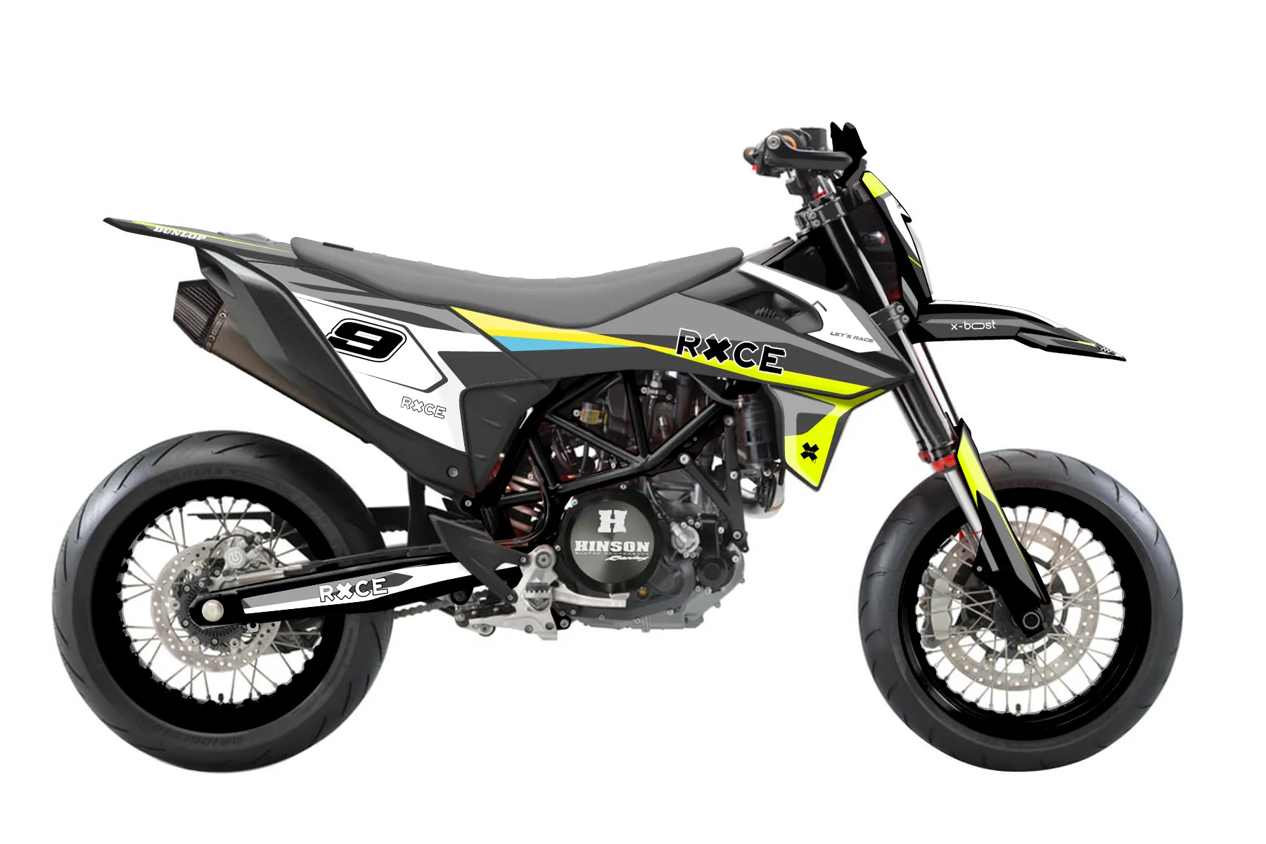 «Bright Neon» — готовый комплект графики серии Flow для KTM Street Graphic Kit KTM SMC-R 690 2019. В комплекте: графика на бак и боковые облицовки, крылья (переднее и заднее), передний щиток, номерные таблички, защита вилки. Материал: ПВХ-винил 80 мкр с холодной ламинацией 300 мкр, общая толщина 380 мкр; покрытие глянцевое или матовое на выбор. Устойчив к UV-излучению, воде, бензину и мойке высокого давления. Клей акриловый на сольвентной основе — постоянный, для гибких пластиков. На простых поверхностях монтируется без нагрева; для сложных изгибов рекомендуем фен. Этот пресет можно заказать как есть или взять за основу в конструкторе: поменять цвета, добавить стартовый номер и свой бренд. Производство — 3–5 рабочих дней, доставка по России СДЭКом или Почтой, по СНГ — курьерскими службами.