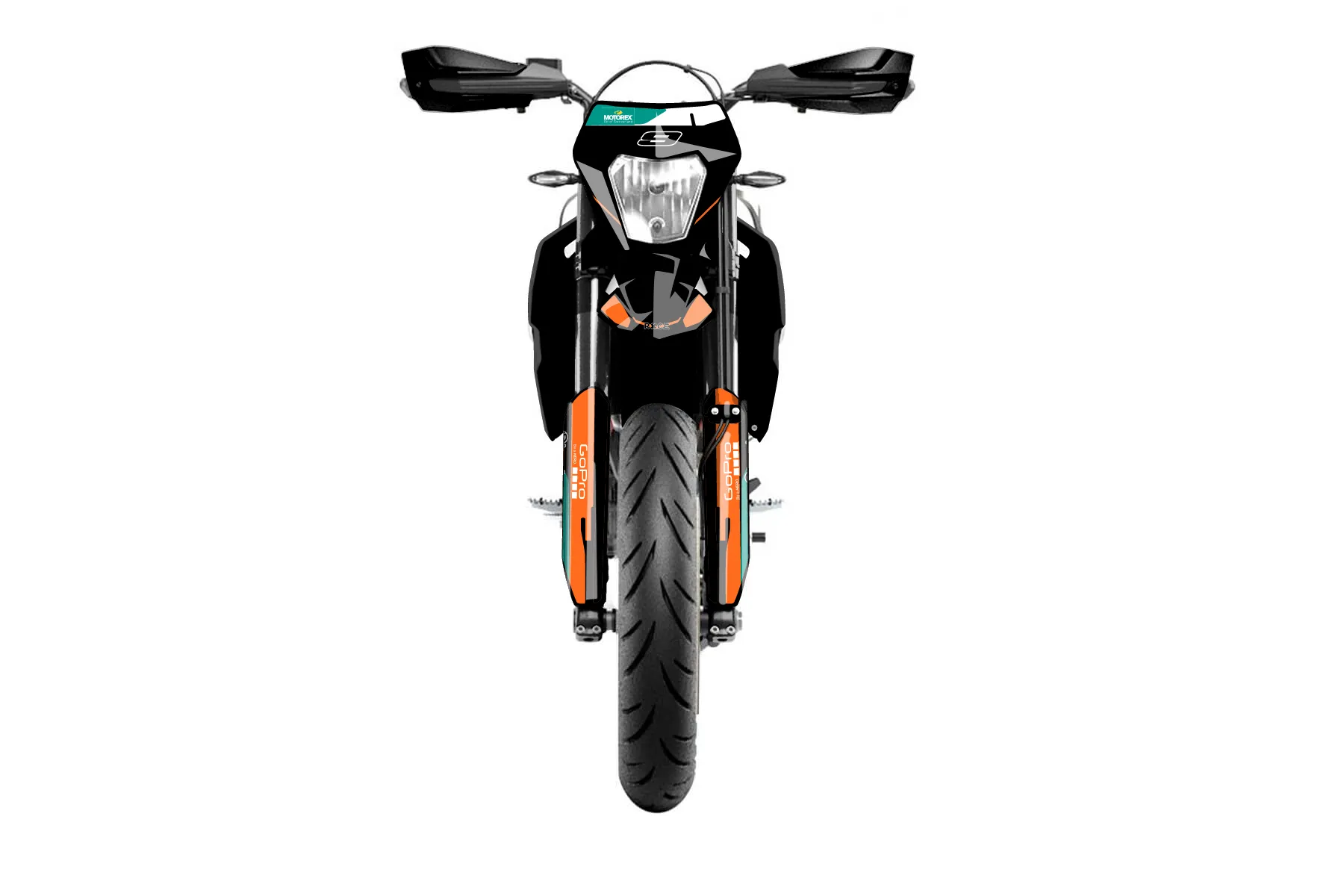 «design, proven 1» — готовый комплект графики серии Flow для KTM Street Graphic Kit KTM SMC-R 690 2019. В комплекте: графика на бак и боковые облицовки, крылья (переднее и заднее), передний щиток, номерные таблички, защита вилки. Материал: ПВХ-винил 80 мкр с холодной ламинацией 300 мкр, общая толщина 380 мкр; покрытие глянцевое или матовое на выбор. Устойчив к UV-излучению, воде, бензину и мойке высокого давления. Клей акриловый на сольвентной основе — постоянный, для гибких пластиков. На простых поверхностях монтируется без нагрева; для сложных изгибов рекомендуем фен. Этот пресет можно заказать как есть или взять за основу в конструкторе: поменять цвета, добавить стартовый номер и свой бренд. Производство — 3–5 рабочих дней, доставка по России СДЭКом или Почтой, по СНГ — курьерскими службами.