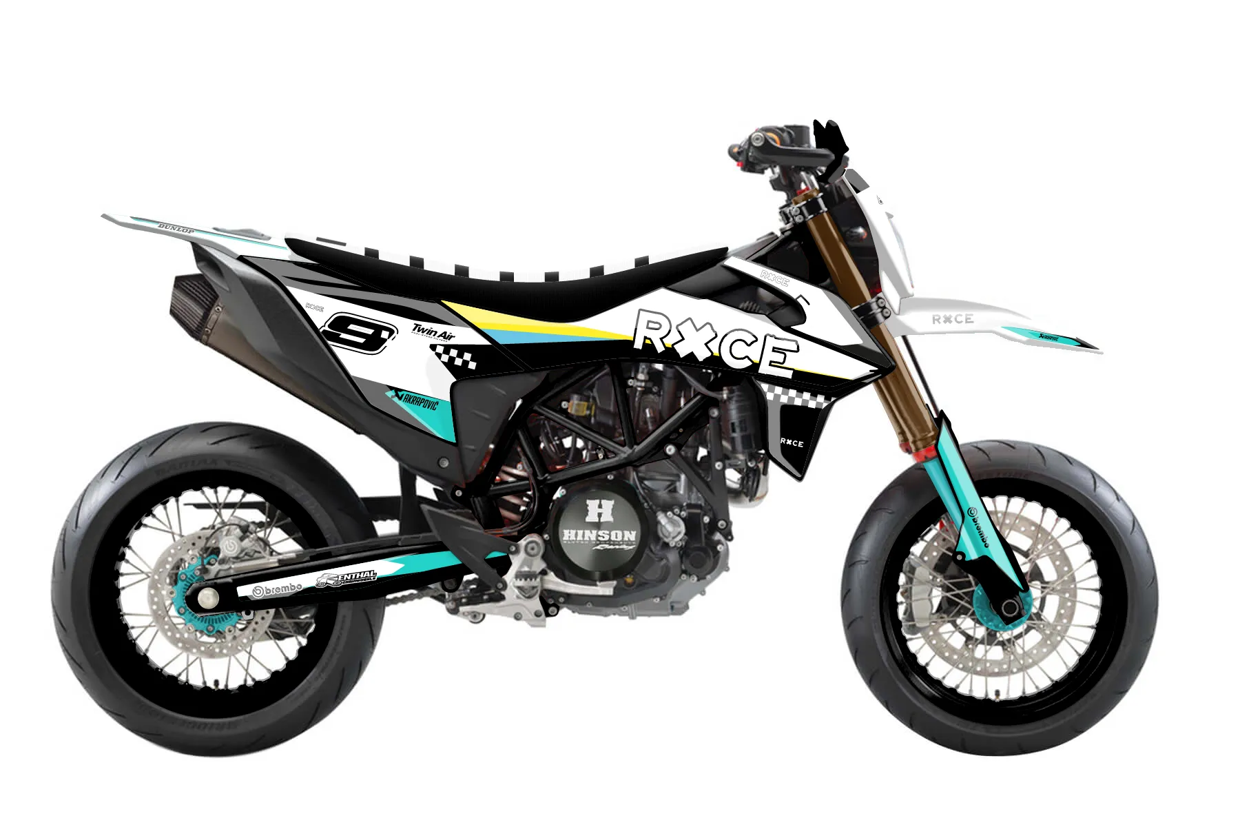 «Industry» — готовый комплект графики серии Flow для KTM Street Graphic Kit KTM SMC-R 690 2019. В комплекте: графика на бак и боковые облицовки, крылья (переднее и заднее), передний щиток, номерные таблички, защита вилки. Материал: ПВХ-винил 80 мкр с холодной ламинацией 300 мкр, общая толщина 380 мкр; покрытие глянцевое или матовое на выбор. Устойчив к UV-излучению, воде, бензину и мойке высокого давления. Клей акриловый на сольвентной основе — постоянный, для гибких пластиков. На простых поверхностях монтируется без нагрева; для сложных изгибов рекомендуем фен. Этот пресет можно заказать как есть или взять за основу в конструкторе: поменять цвета, добавить стартовый номер и свой бренд. Производство — 3–5 рабочих дней, доставка по России СДЭКом или Почтой, по СНГ — курьерскими службами.